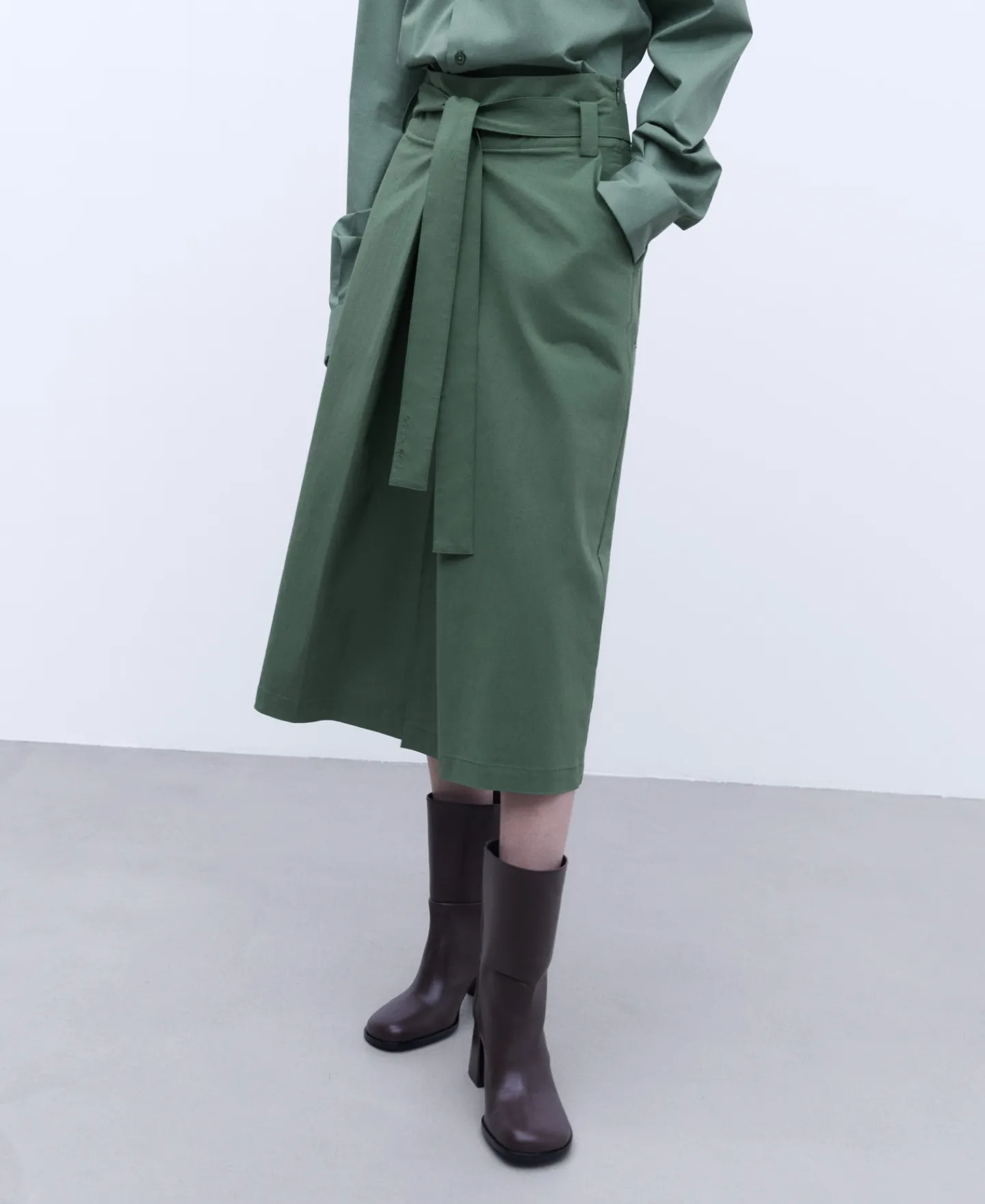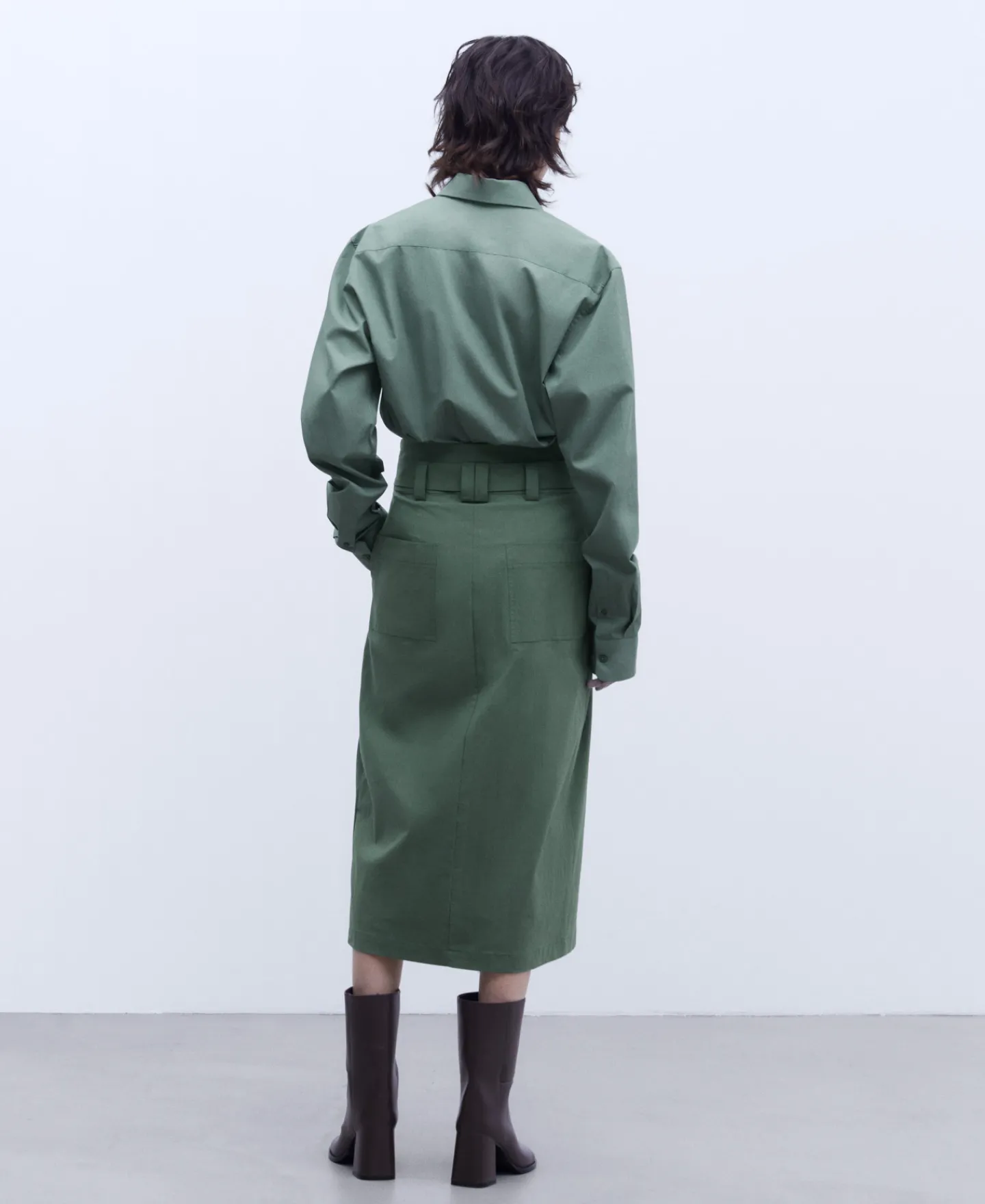 Saia Midi Em Algodao E Nylon. Cos Com Presilhas. Cinto. Dupla Prega Frontal. Bolso Lateral. Bolso Posterior. Bainha Reta…