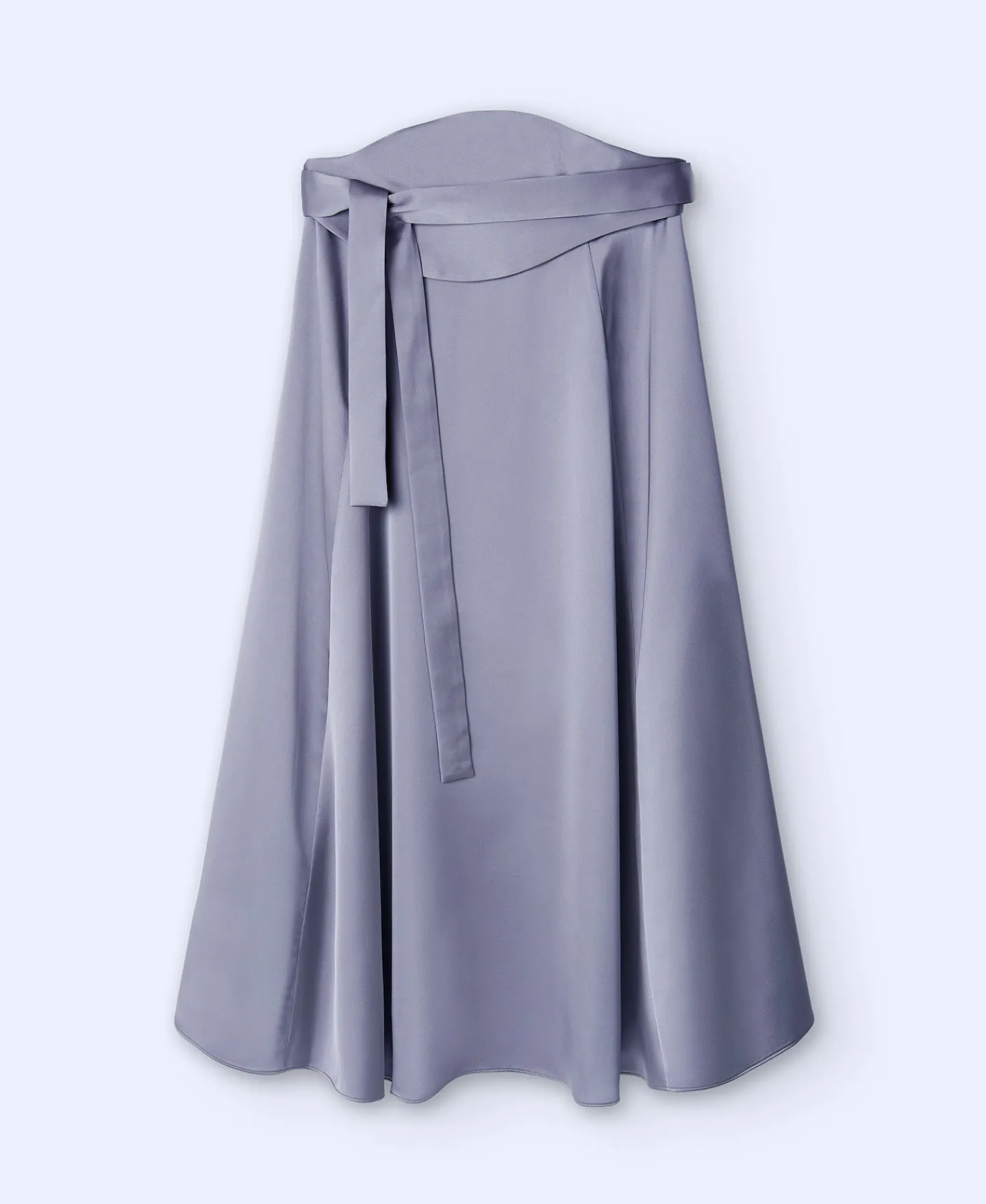 Saia Midi Semicircular. Cinto Faixa. Acetinada. Forrada. Bainha Arredondada.