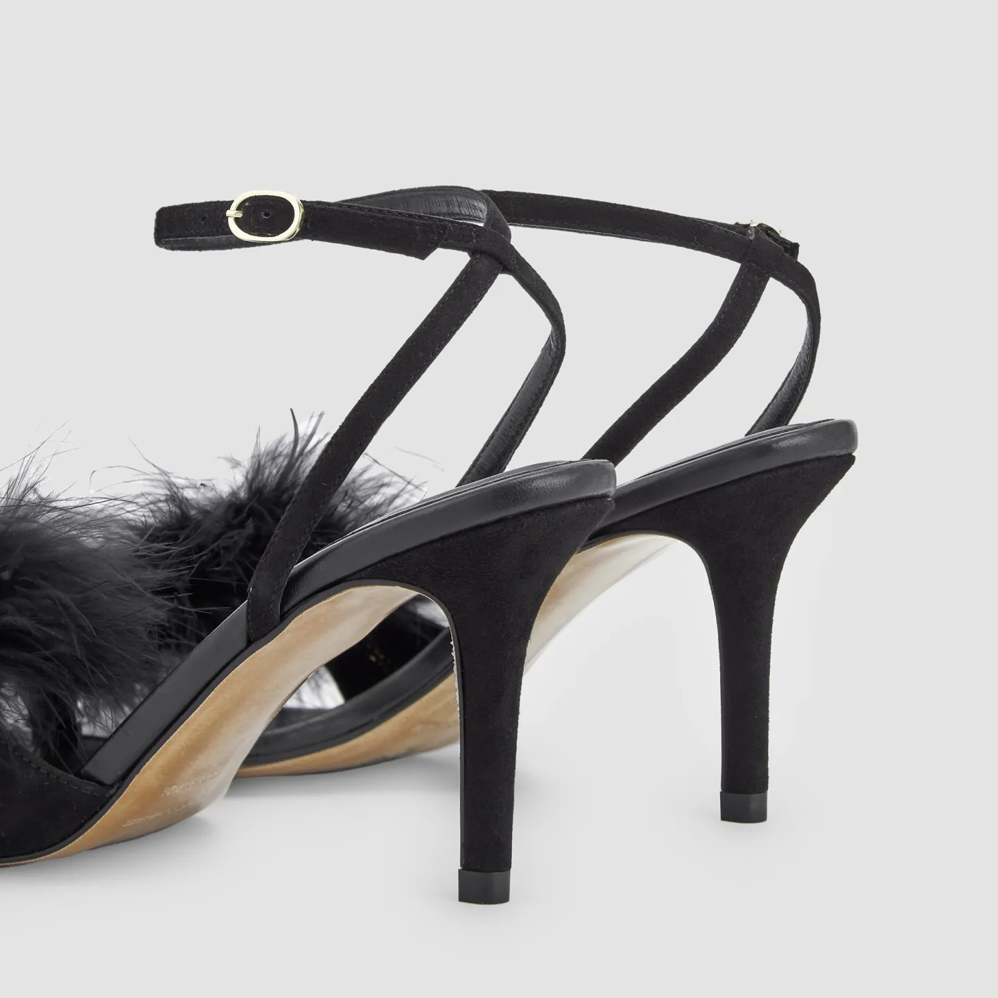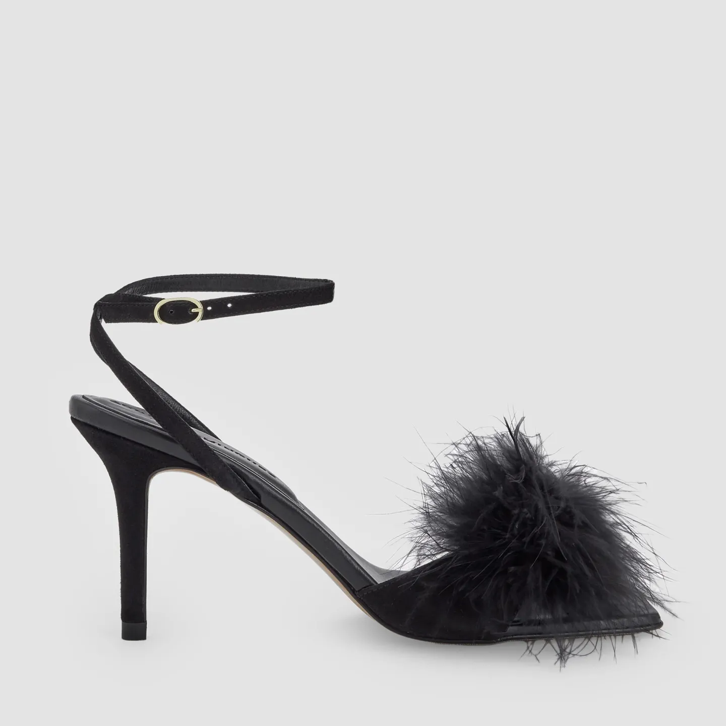 Sandalias De Ponta Quadrada Com Tacao. Pompons De Penas Na Tira. Made In SpainAltura Do Tacao: 8,5 CmPele CaprinoPonta Q…