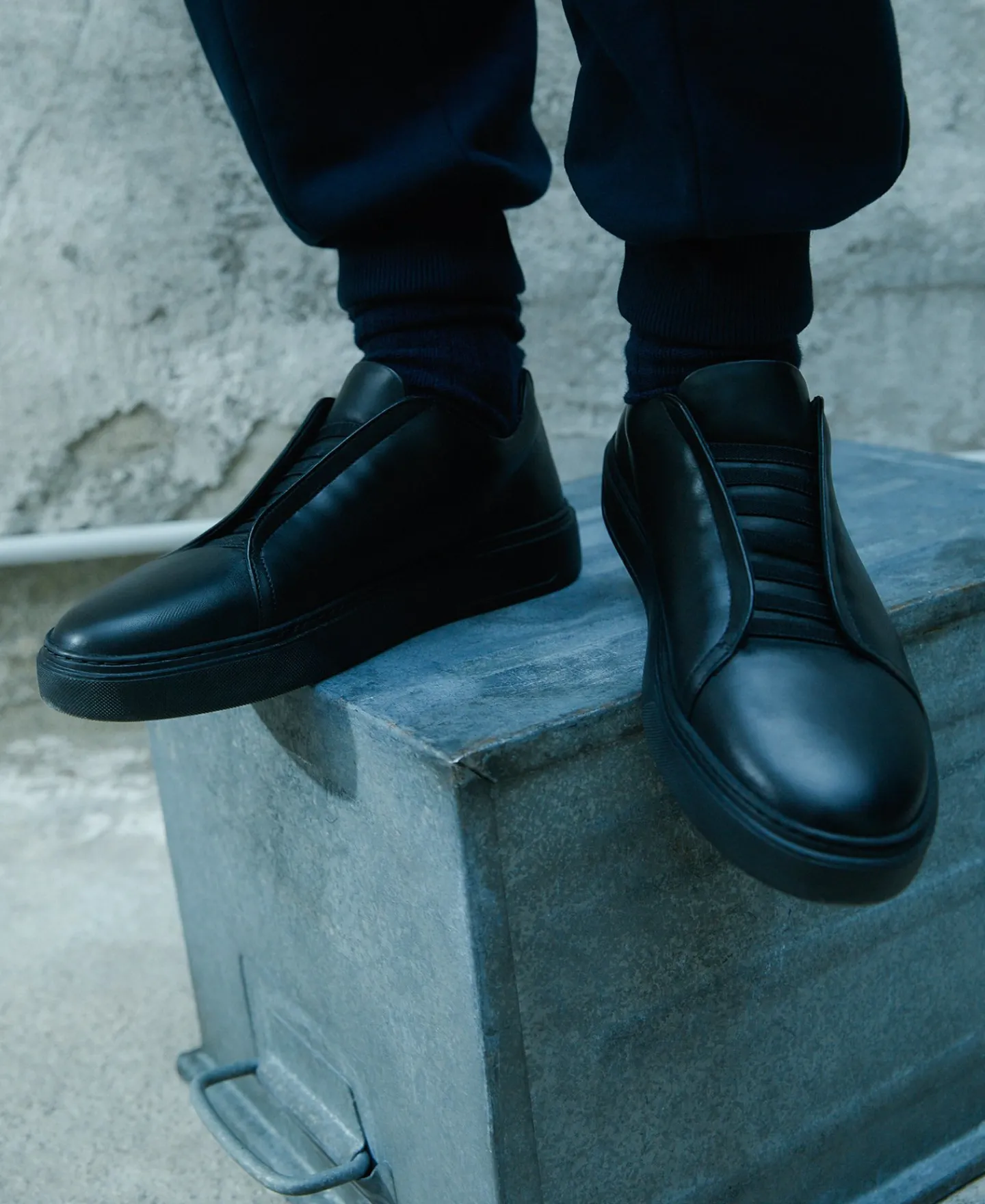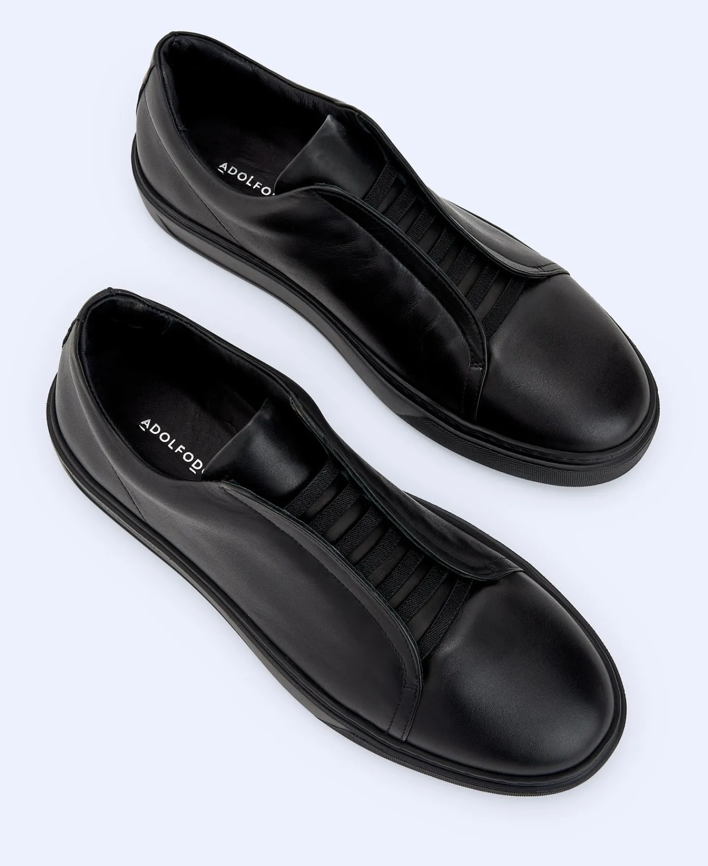 Tenis Com Ponta Engomada Em Pele. Impressao Digital Do Logotipo Em Contraste. Atacadores Elasticos.Pele De CabraPonta En…