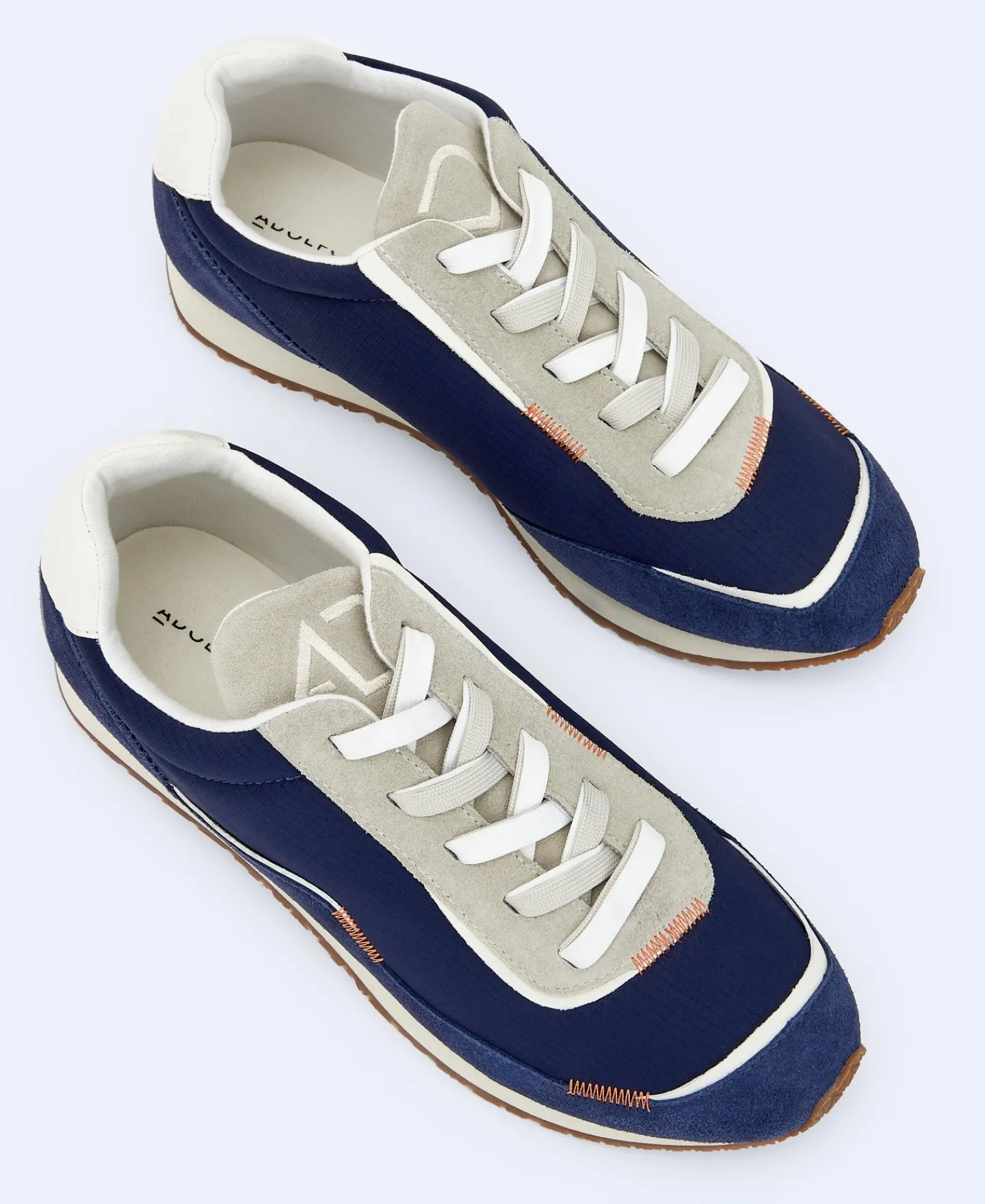 Tenis Em Pele E Nylon Com Atacadores. Logotipo. Sola De Borracha. Forro Em Algodao. Costura Ziguezague Em Contraste.