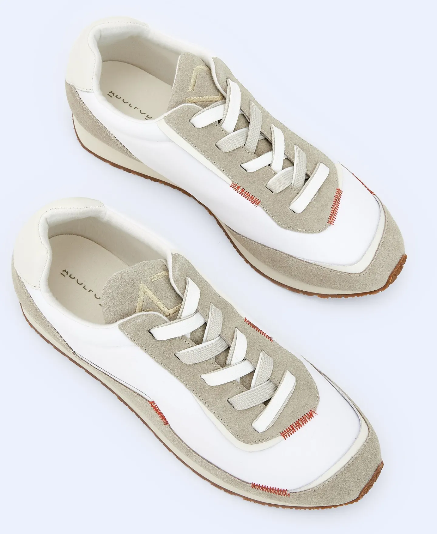 Tenis Em Pele E Nylon Com Atacadores. Logotipo. Sola De Borracha. Forro Em Algodao. Costura Ziguezague Em Contraste.