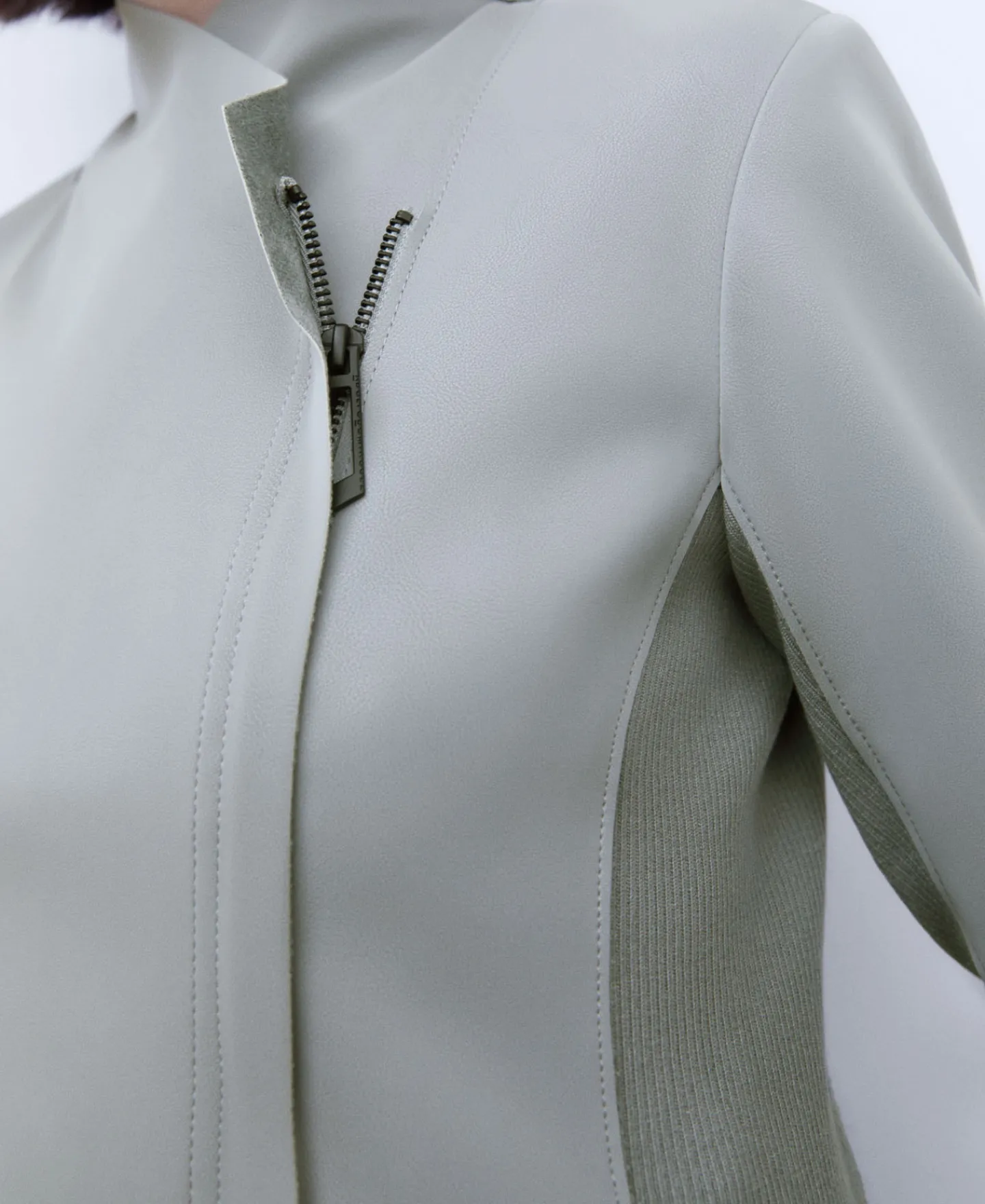 Blusao Biker. Gola Cruzada. Fecho De Correr A Frente. Manga Comprida. Cabo De Porfio. Punho Com Fecho De Correr.