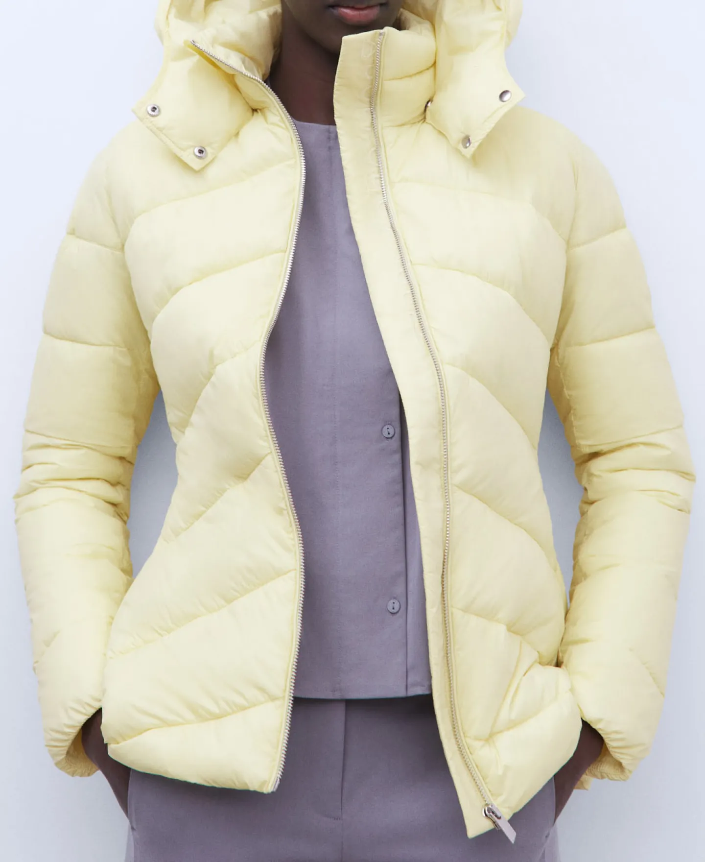 Casaco Acolchoado Cintado Em Nylon. Capuz Extraivel. Fecho De Correr. Enchimento Sintetico.