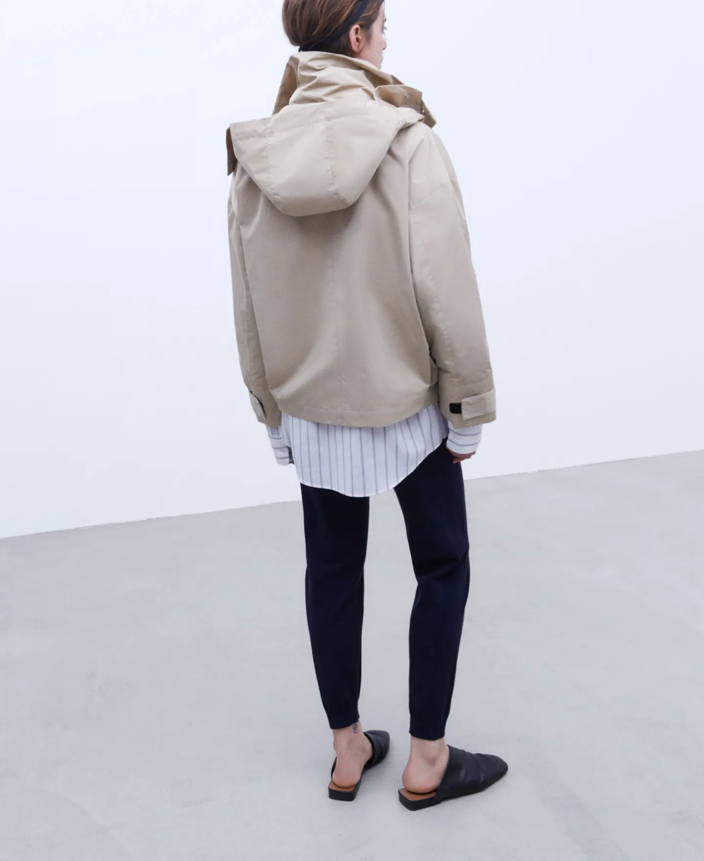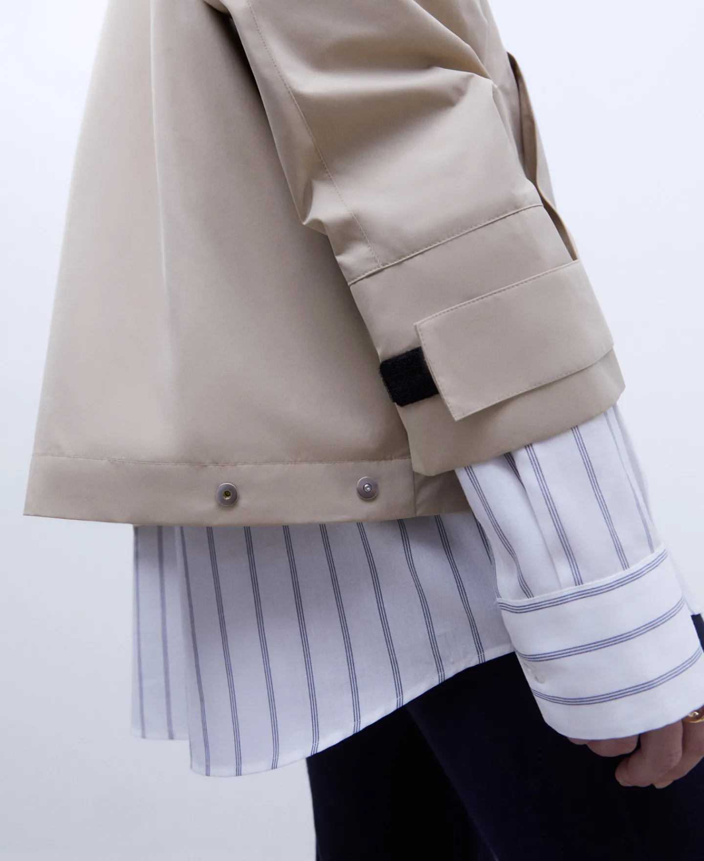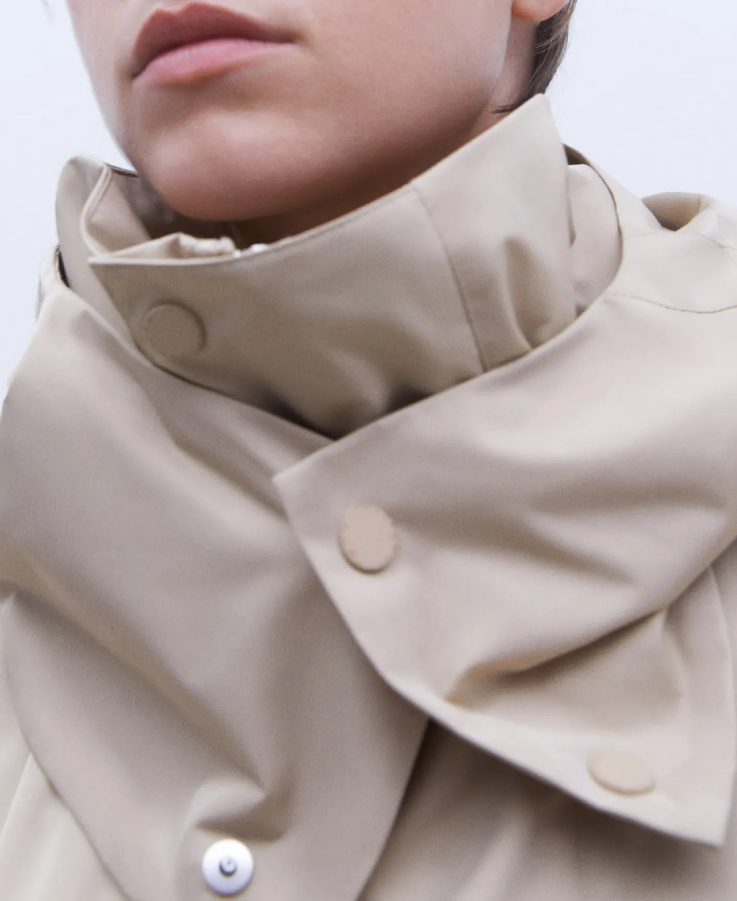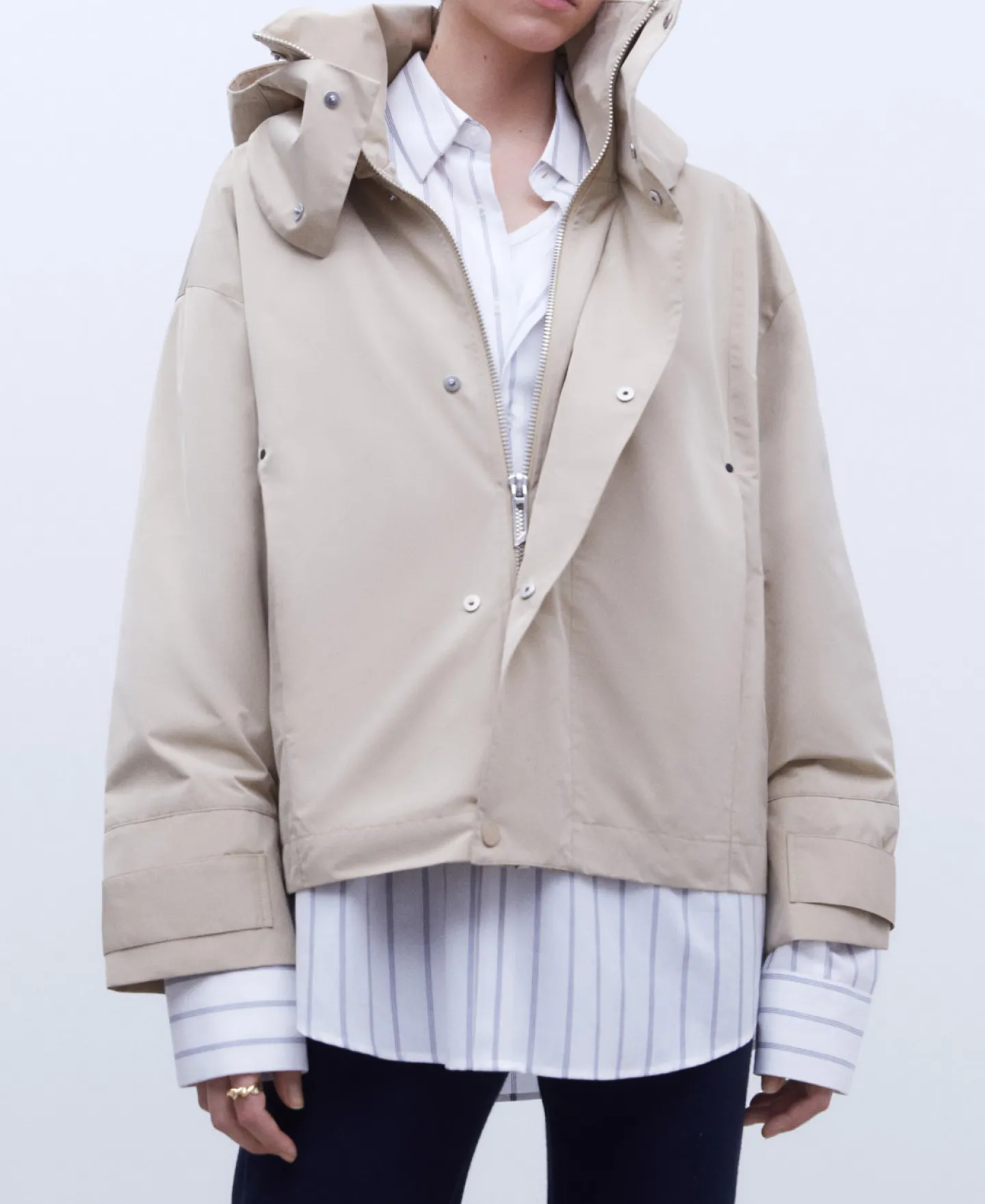 Casaco Trench Curto Com Capuz. Manga Sobreposta. Fecho De Correr E Botoes De Encaixe. Capuz Com Cordao. Punhos Com Velcr…