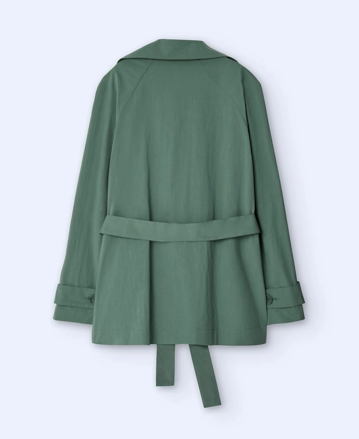 Gabardina Curta Em Algodao E Nylon. Gola De Lapela. Abotoadura Dupla. Bolso Lateral. Punho Com Presilha. Cinto.