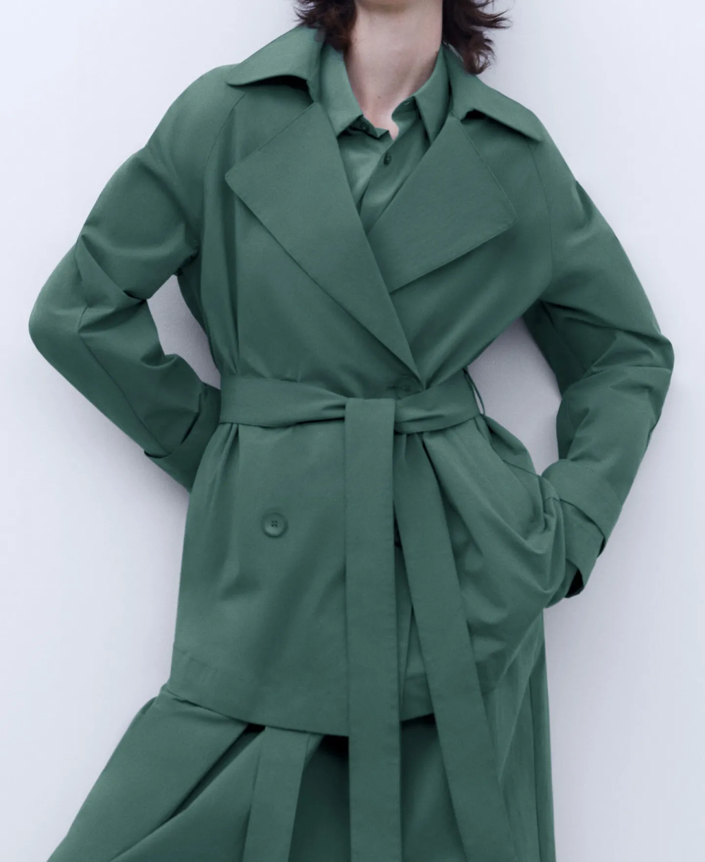Gabardina Curta Em Algodao E Nylon. Gola De Lapela. Abotoadura Dupla. Bolso Lateral. Punho Com Presilha. Cinto. AlgodaoN…