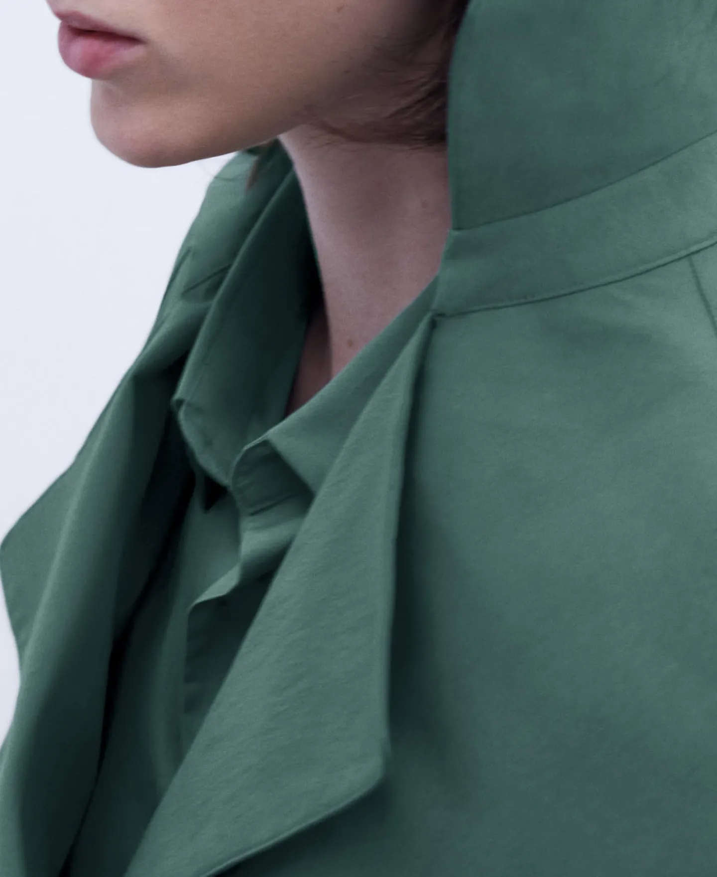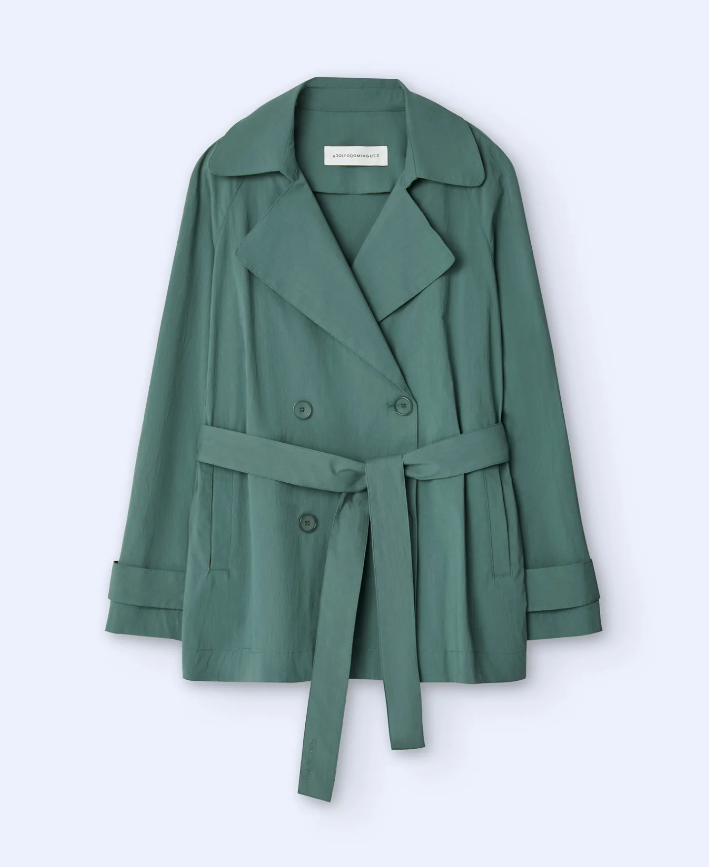 Gabardina Curta Em Algodao E Nylon. Gola De Lapela. Abotoadura Dupla. Bolso Lateral. Punho Com Presilha. Cinto.