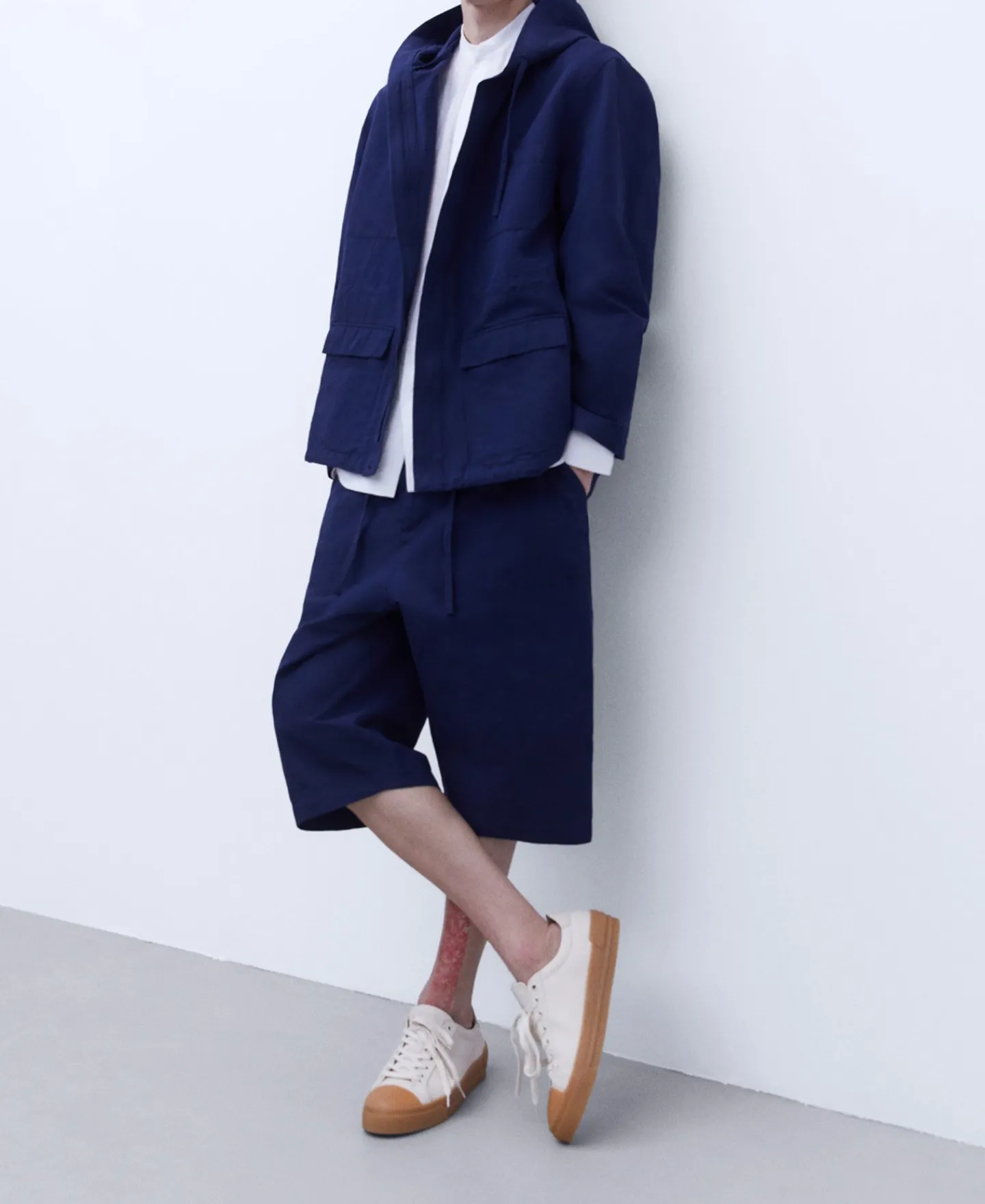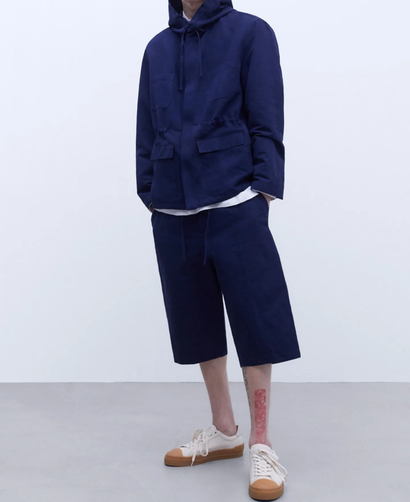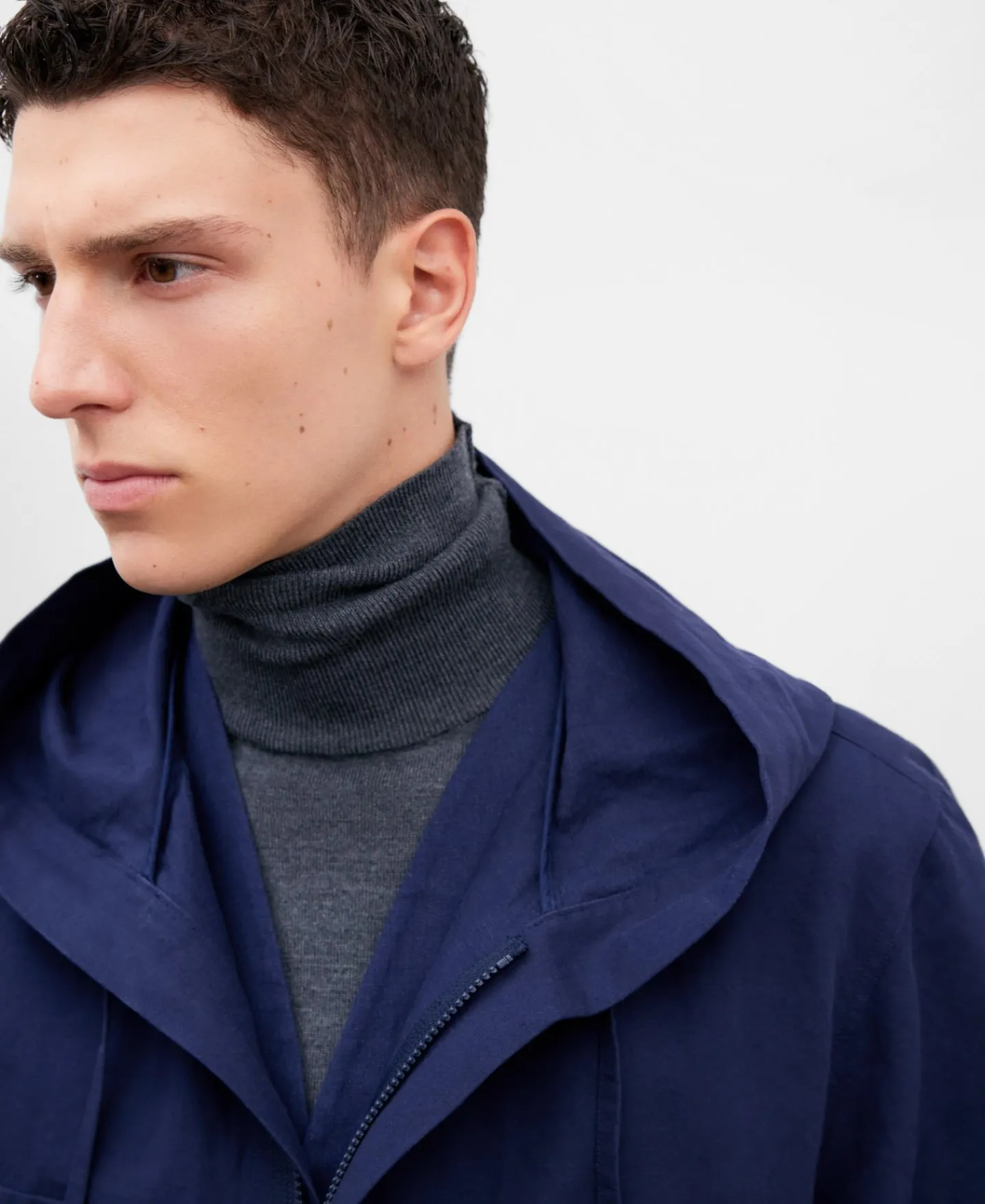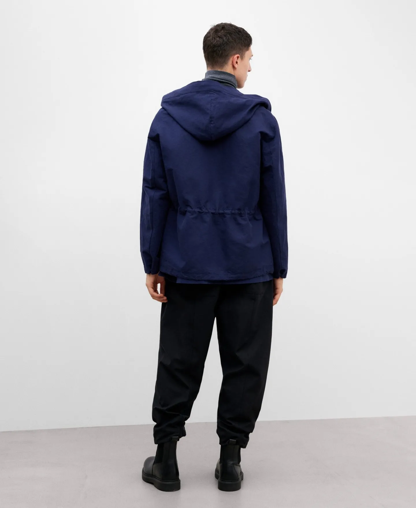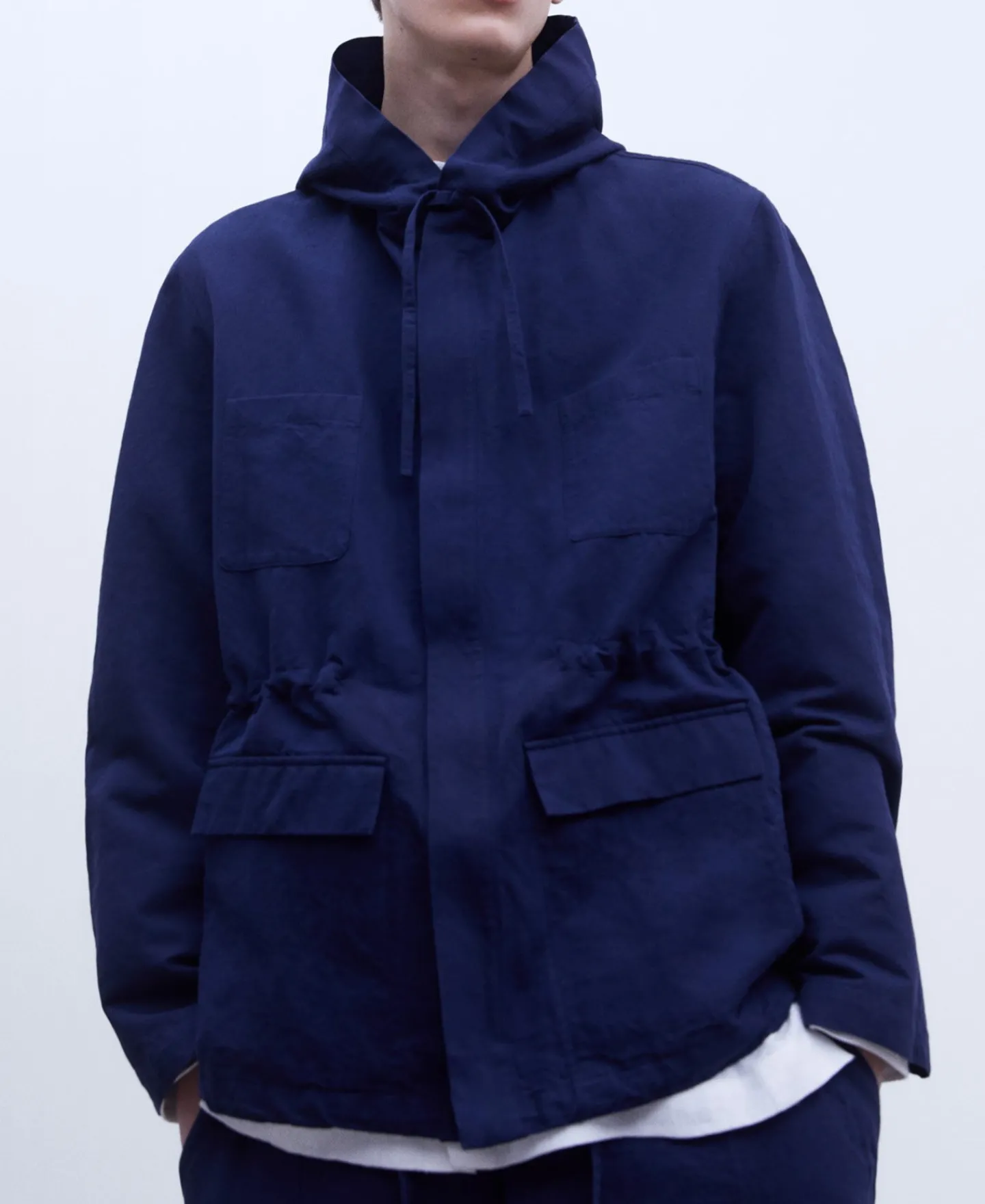 Capuz. Carcela Frontal Com Fecho De Correr Oculto. Bolsos Com Carcela Laterais E Bolsos Remendo No Peito. Franzido Interno No Cos. Cordoes.