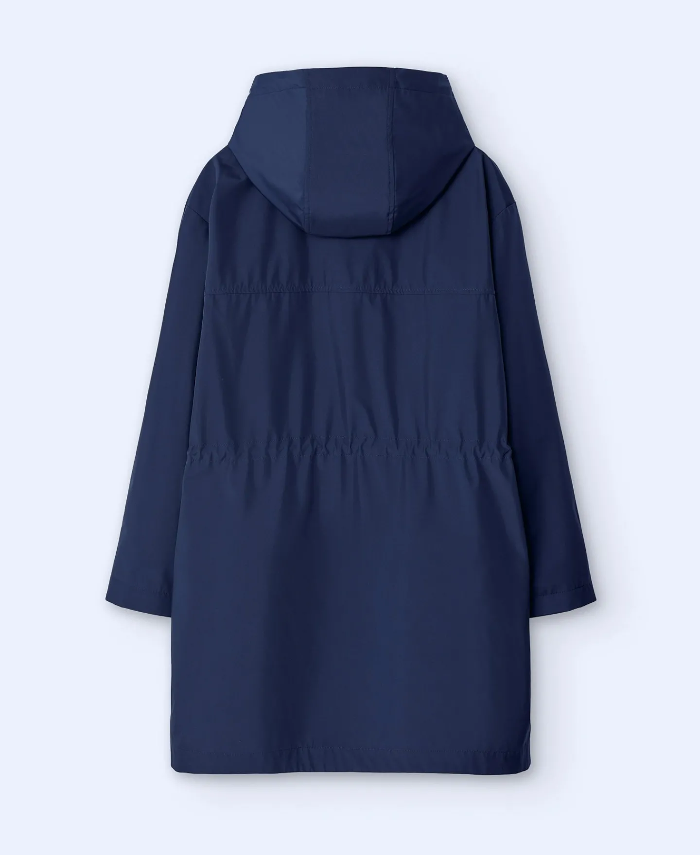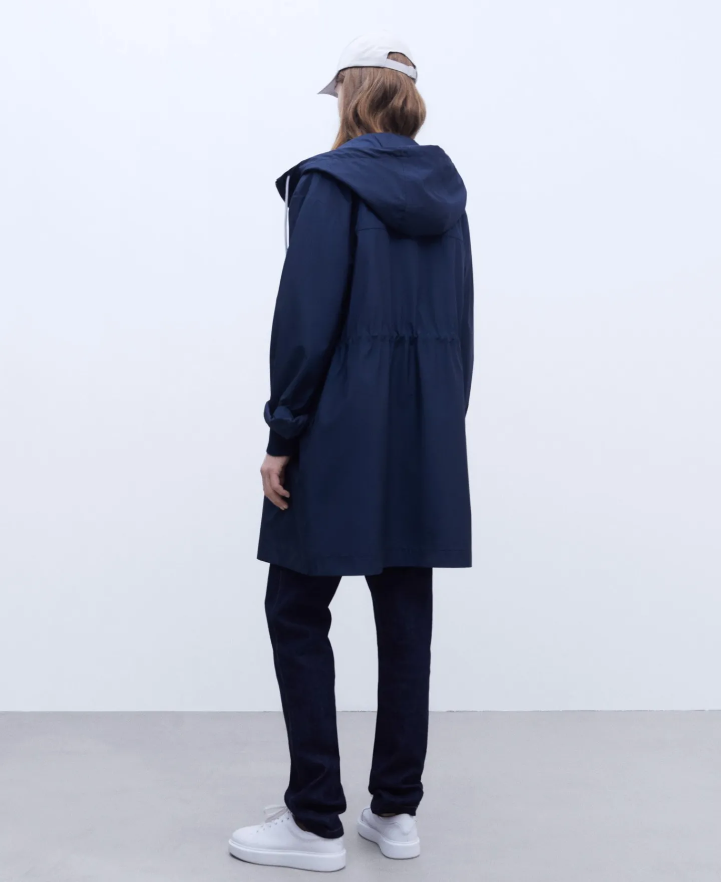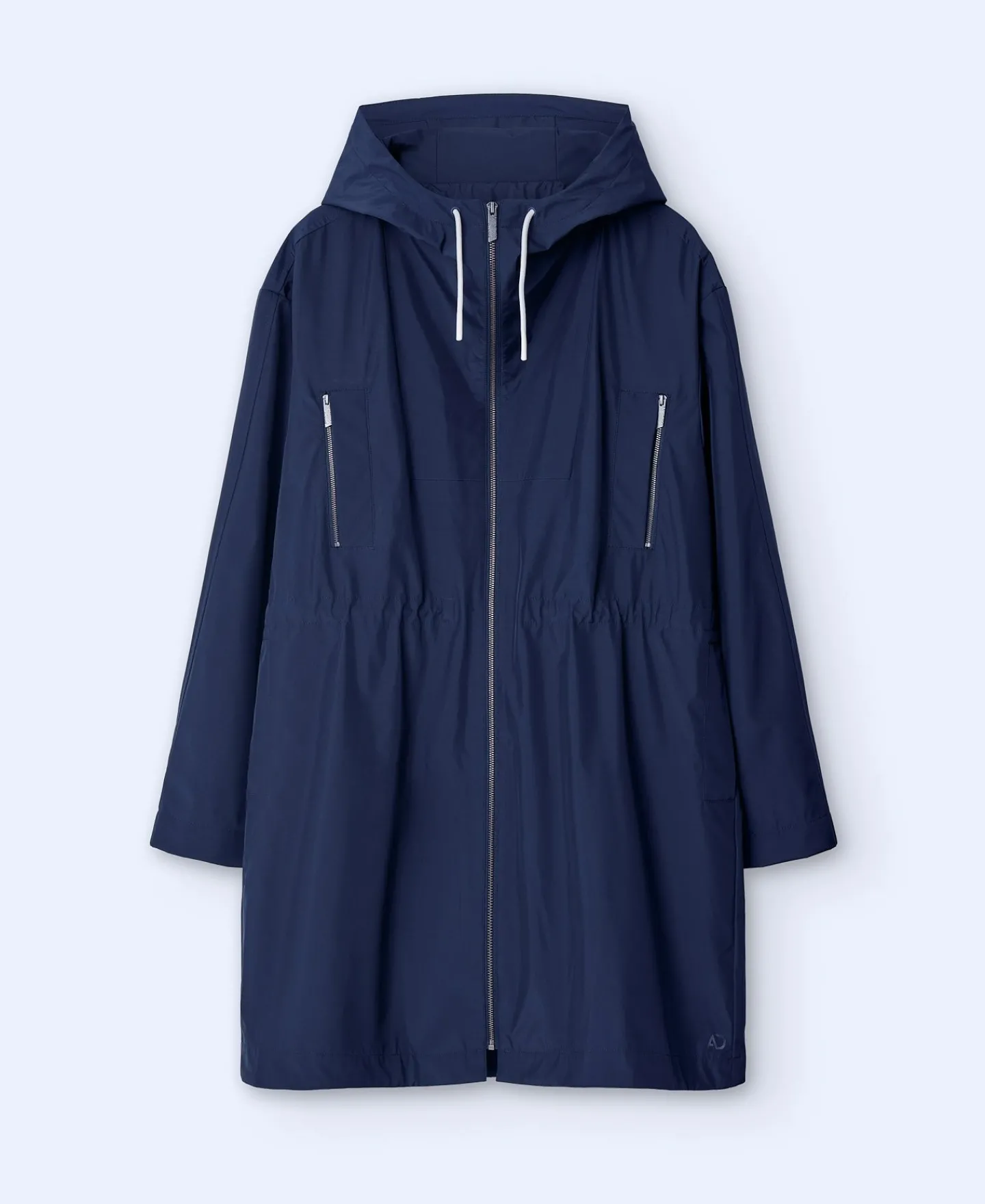 Parca Nautica Com Capuz. Fecho De Correr. Bolsos Laterais Obliquos. Ajuste Elastico Na Cintura. Bainha Reta.