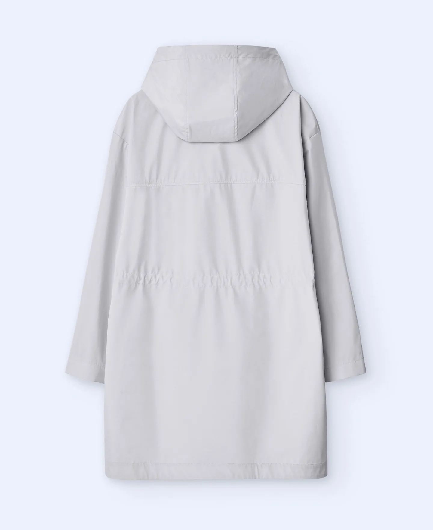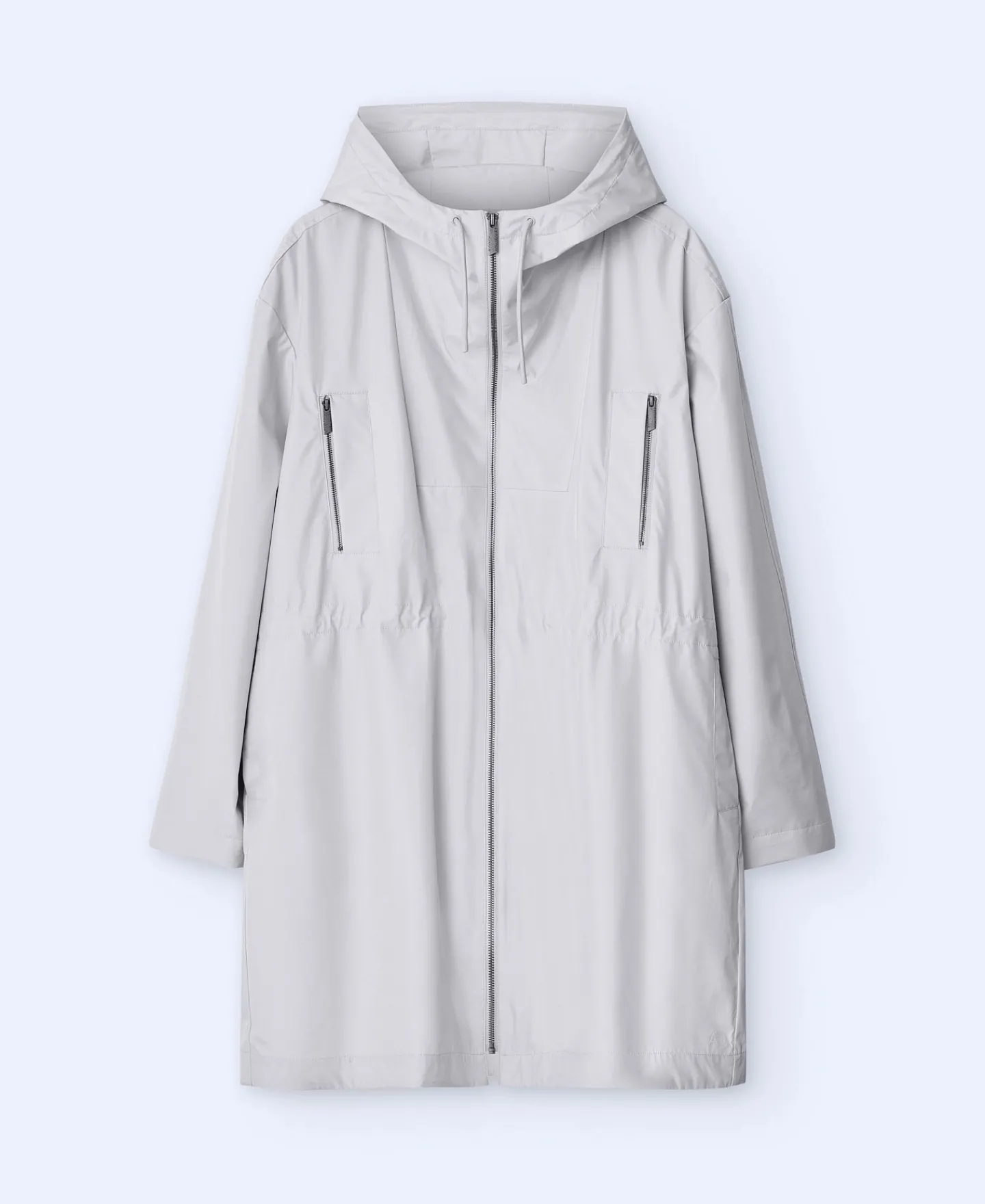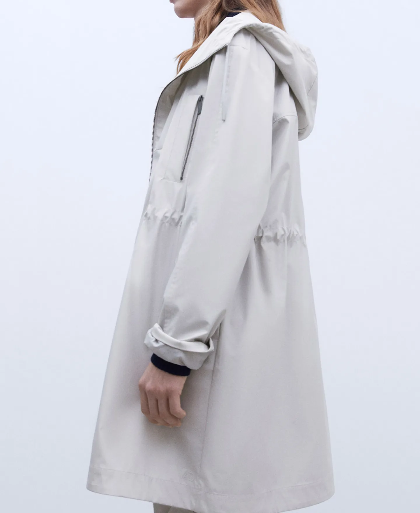 Parca Nautica Com Capuz. Fecho De Correr. Bolsos Laterais Obliquos. Ajuste Elastico Na Cintura. Bainha Reta.