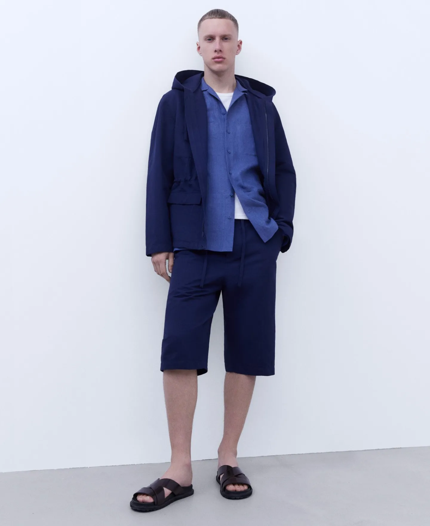 Abotoadura Central. Manga Comprida. Punho Abotoado Com Pinca. Porfio Deslocado. Quatro Bolsos Interiores. Escapulario Nas Costas.