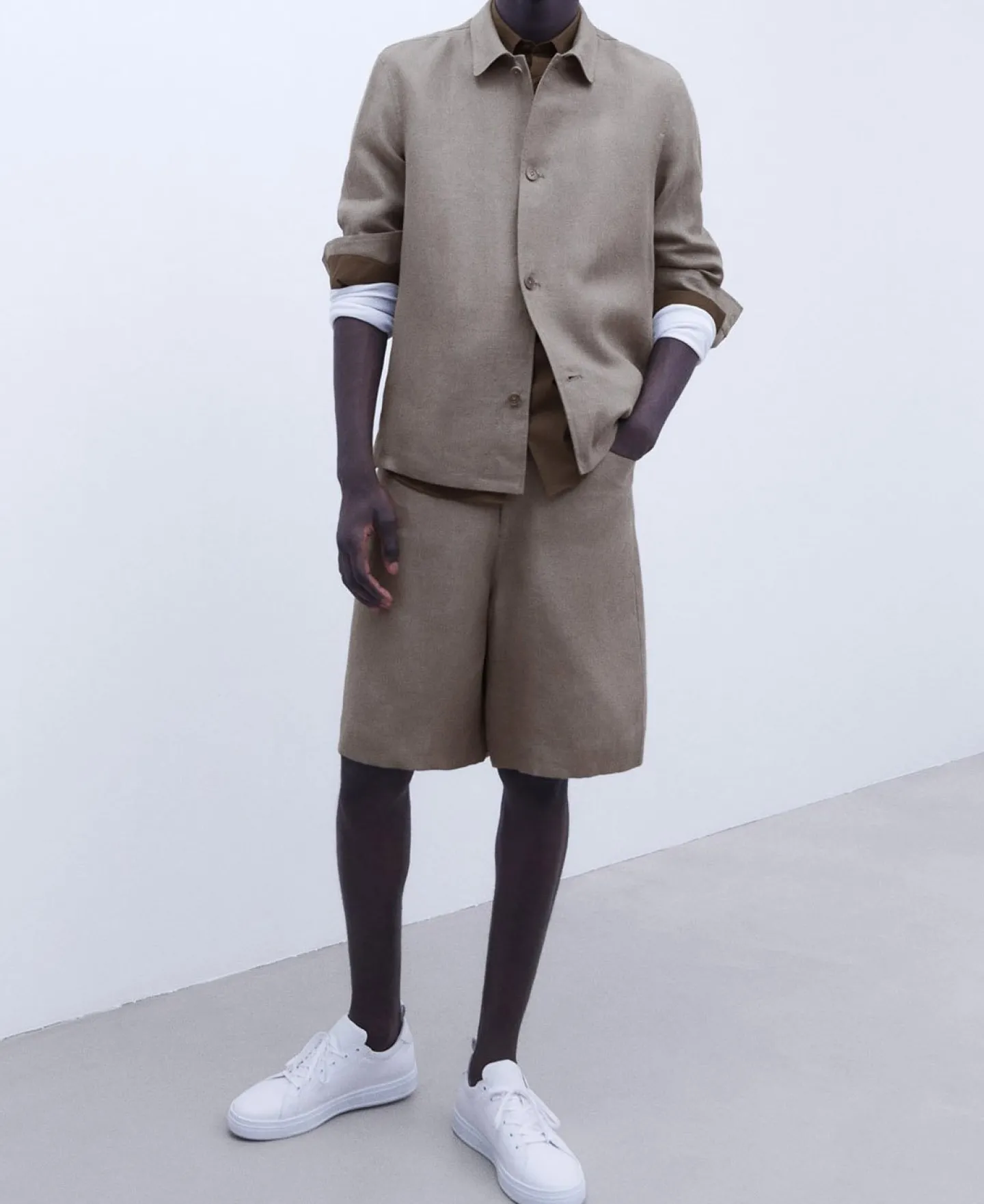 Gola De Lapela. Quatro Botoes. Punhos Assimetricos. Bainha Reta.100% Linho EuropeuGola LapelaManga CompridaPunhos Assime…