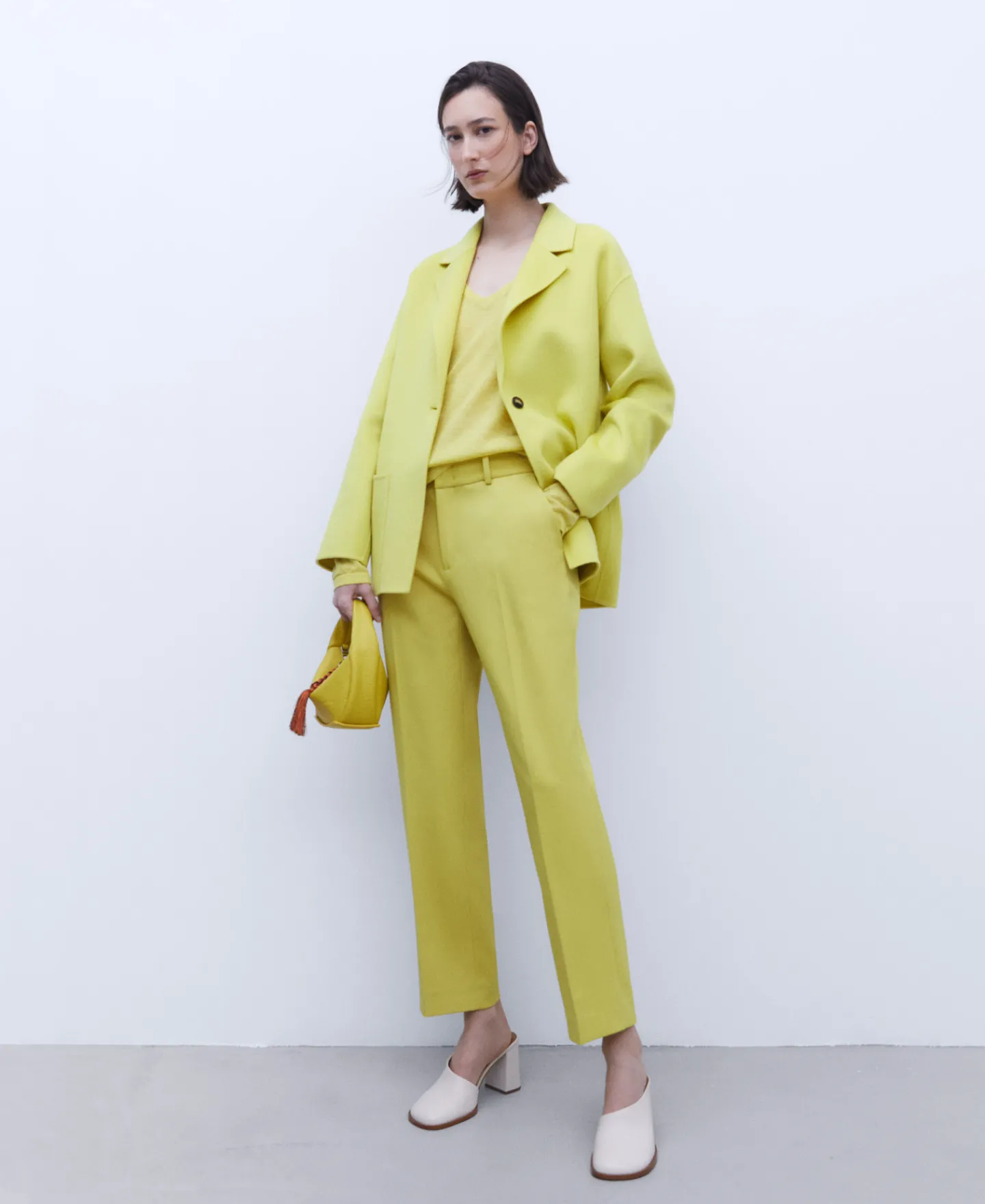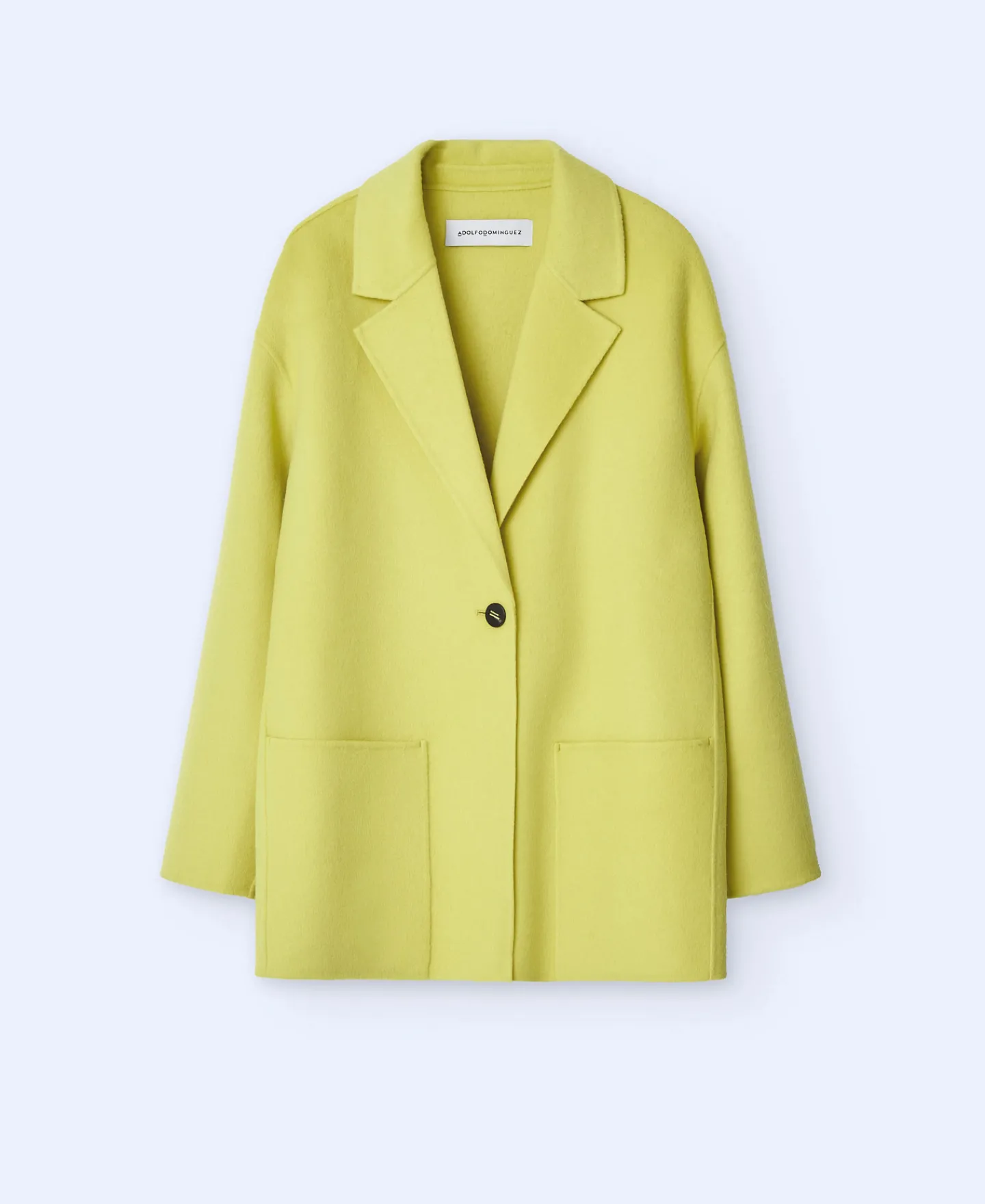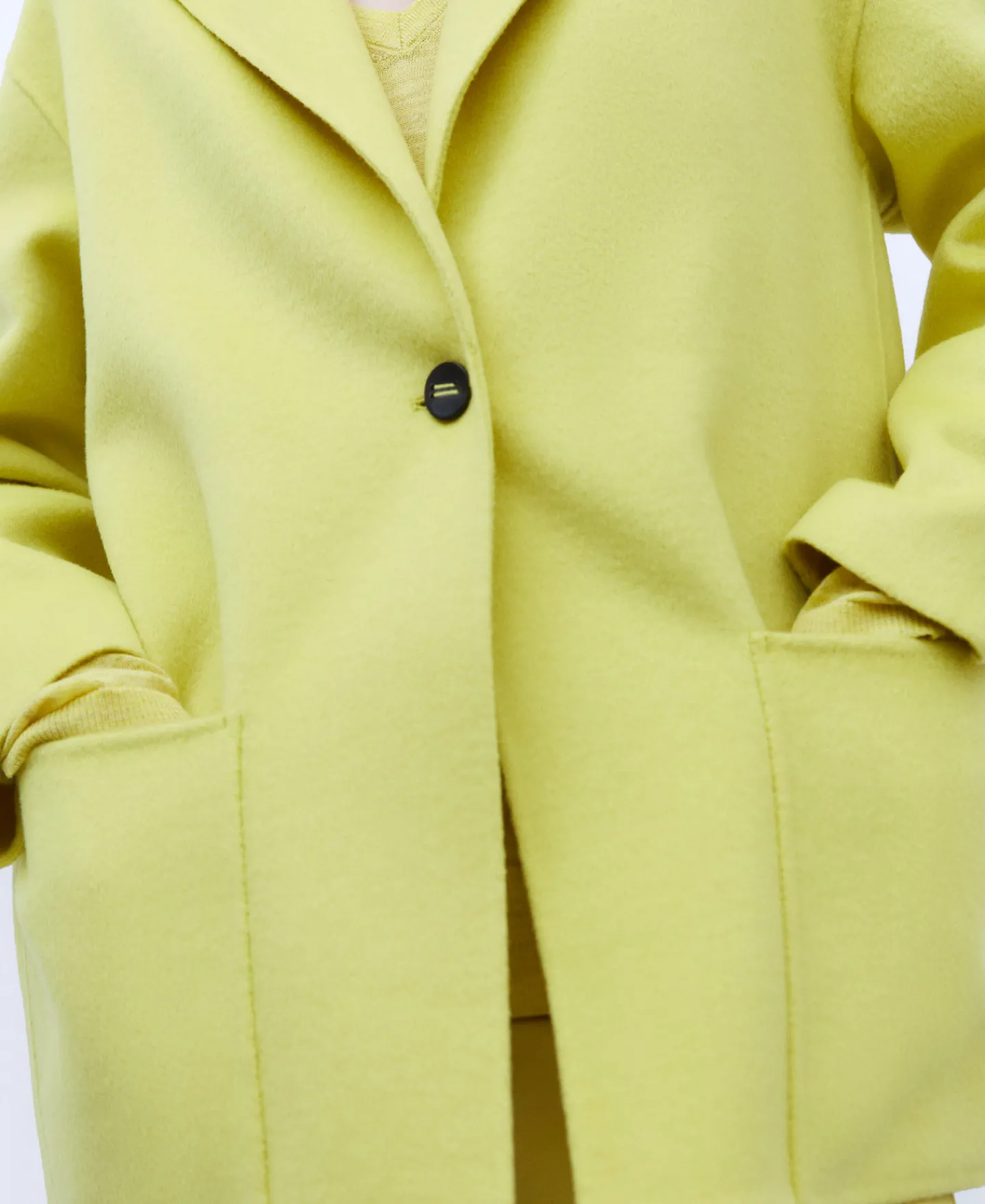 Sobretudo De Dupla Face Unicolor. La Merino E Poliester Reciclado. Gola De Lapela. Manga Caida. Bolso Plastrao. Um Botao. Bainha Reta.