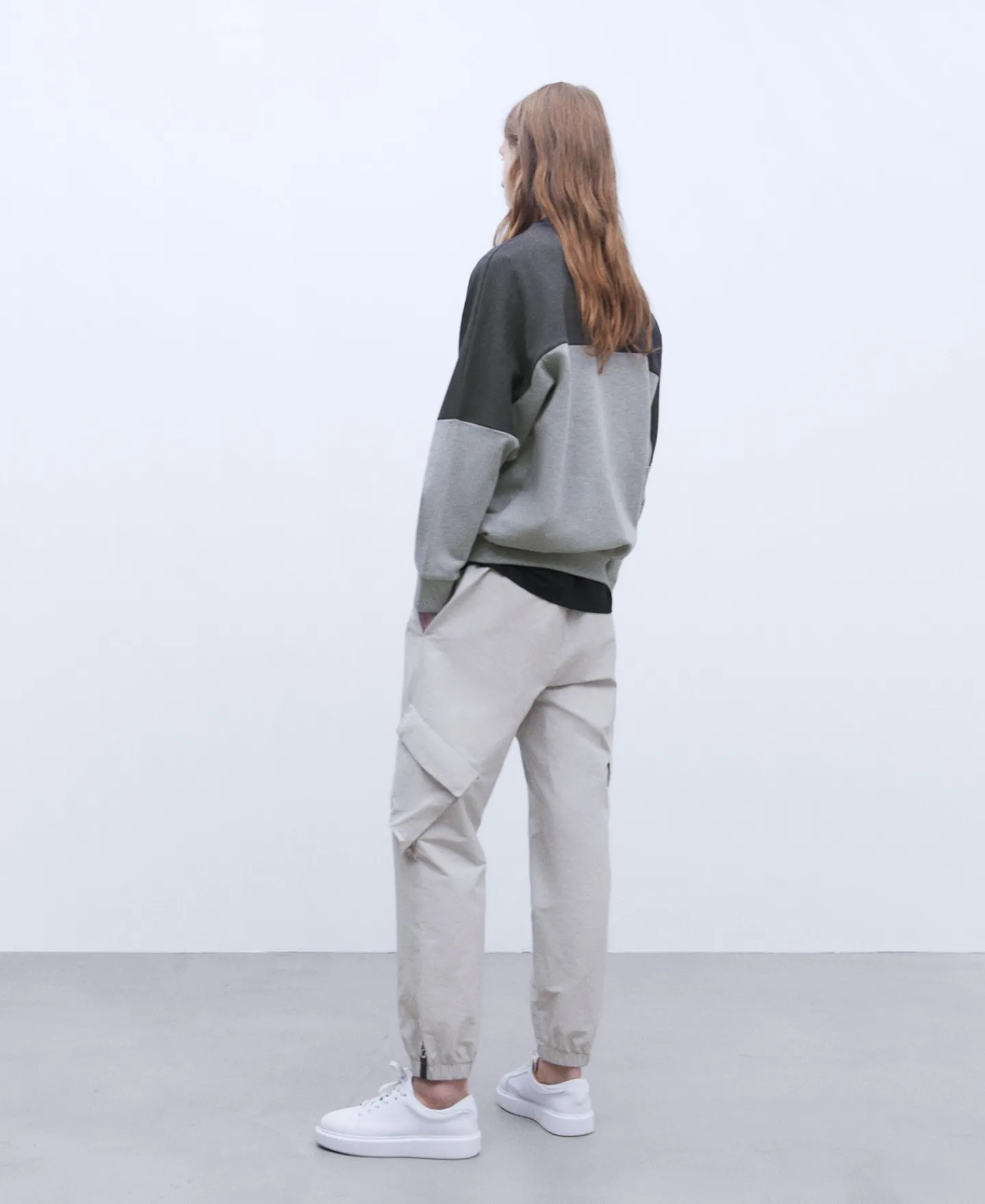 Camisola Desportiva Oversize Em Algodao Bicolor. Gola Redonda. Manga Caida. Remates Canelados. Logotipo No Peito. Fabric…