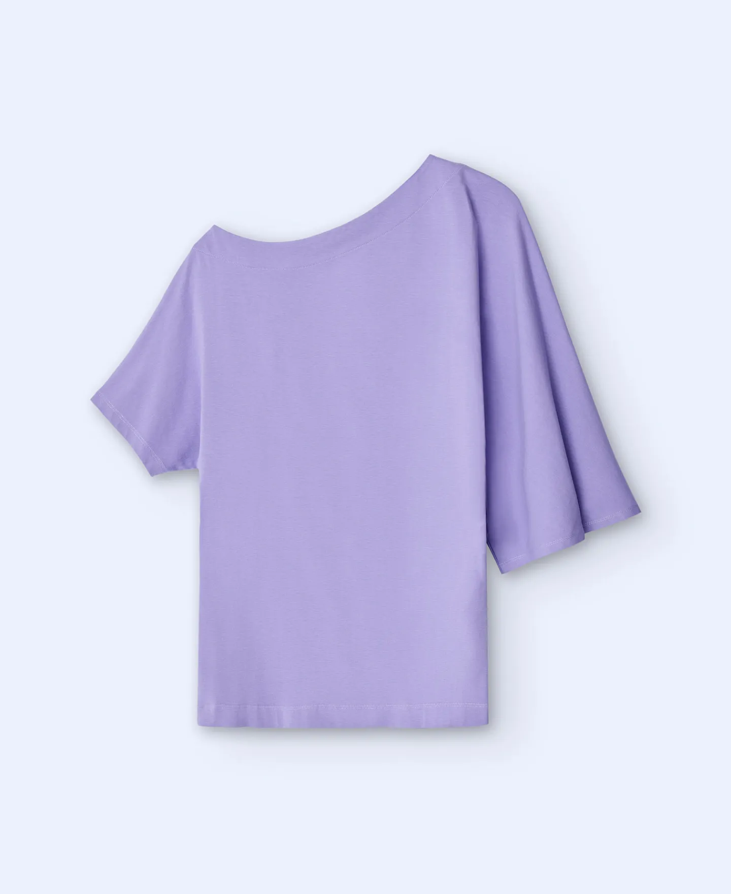Camisola Assimetrica. Decote Barco. Manga Japonesa. Manga Drapeada.