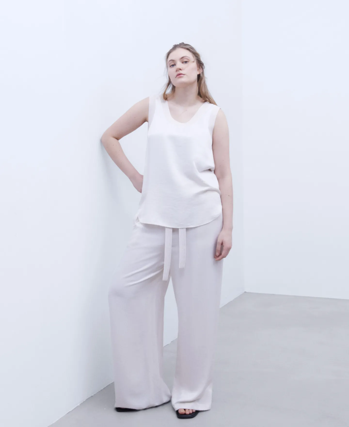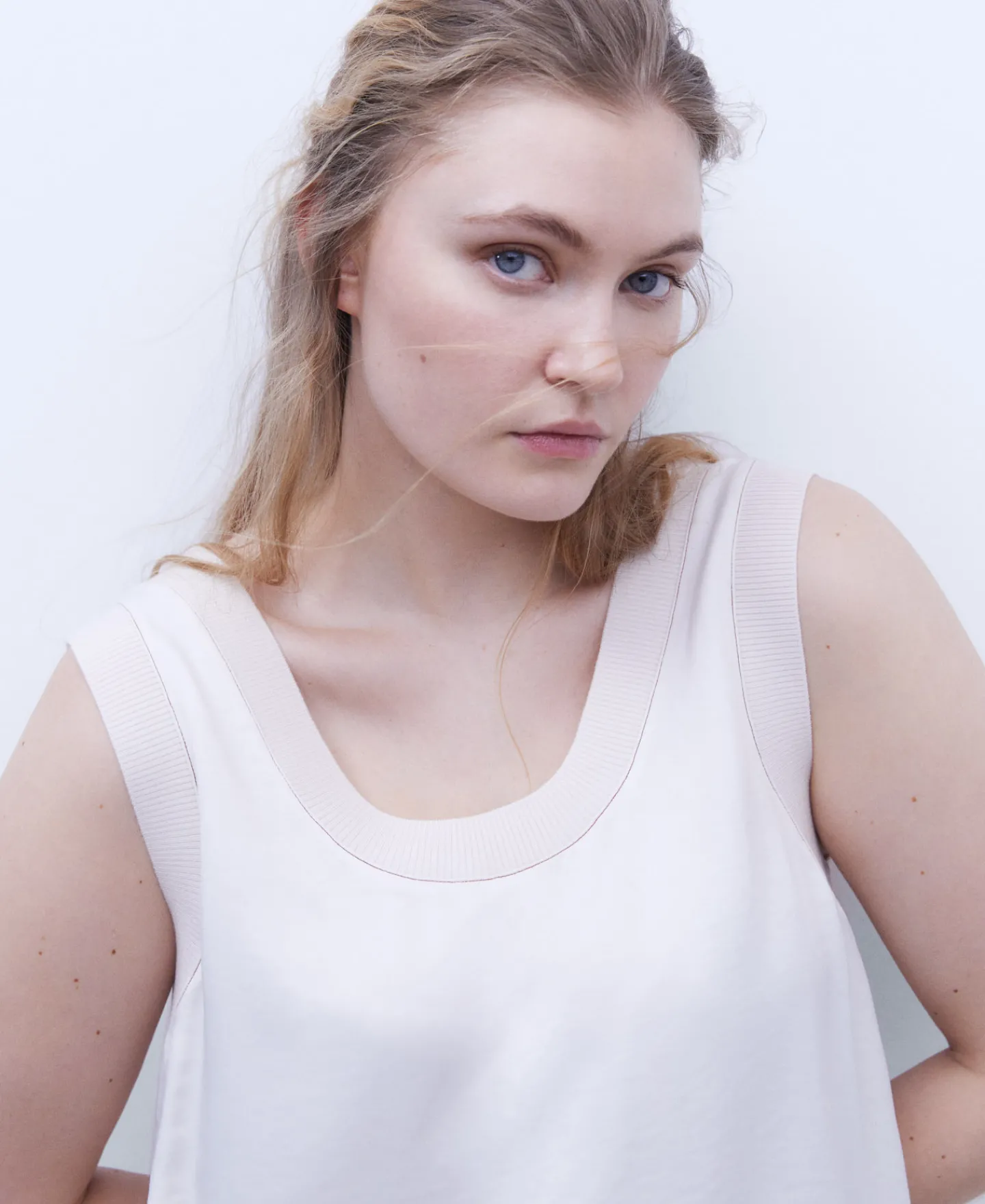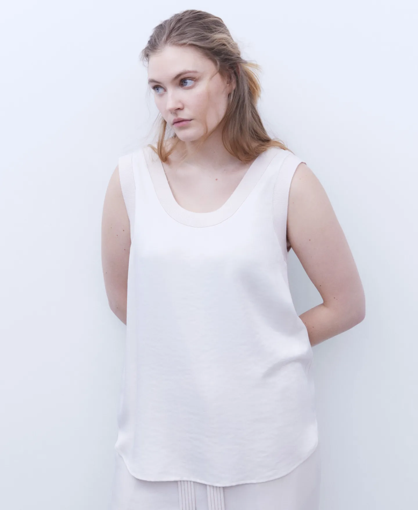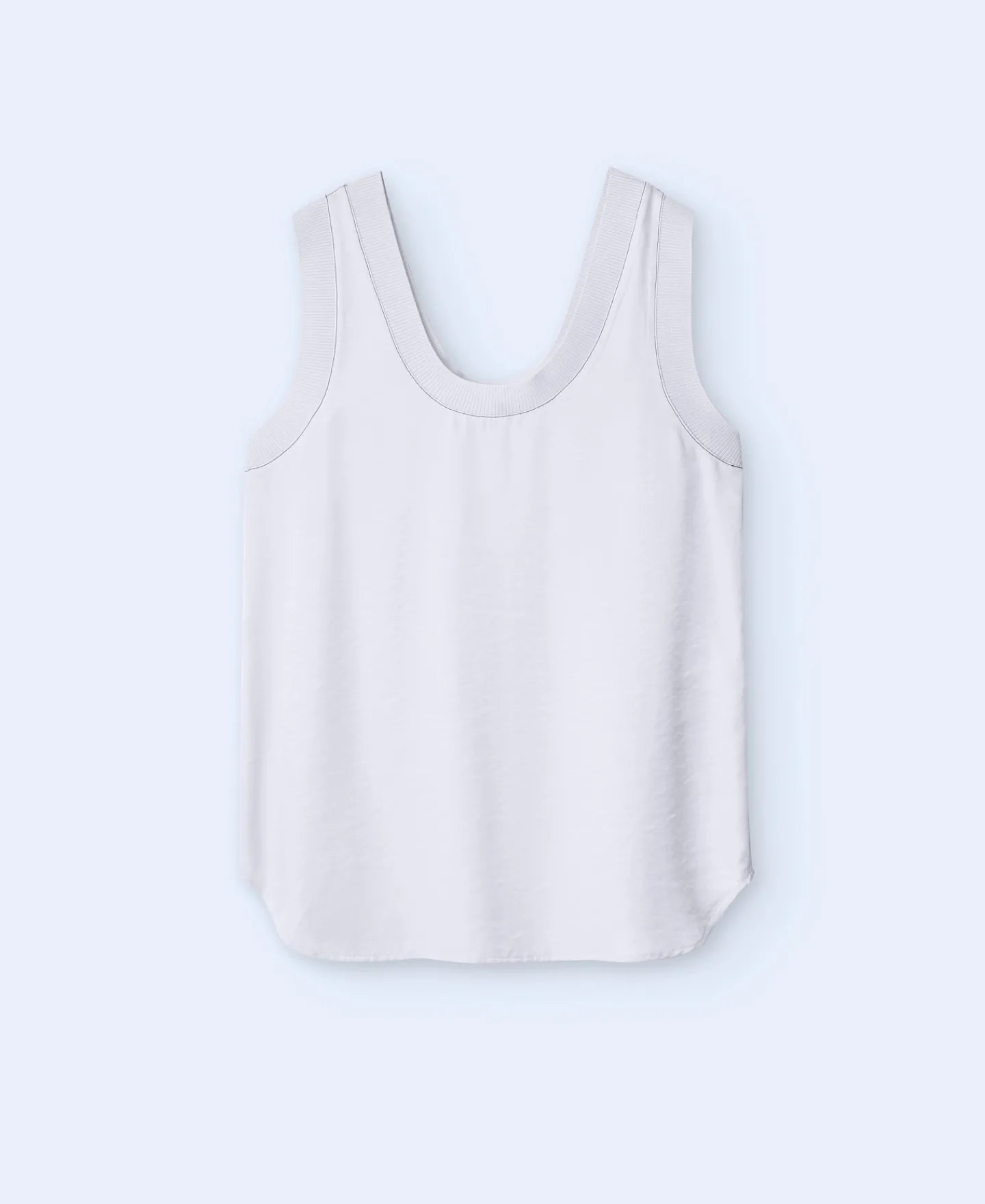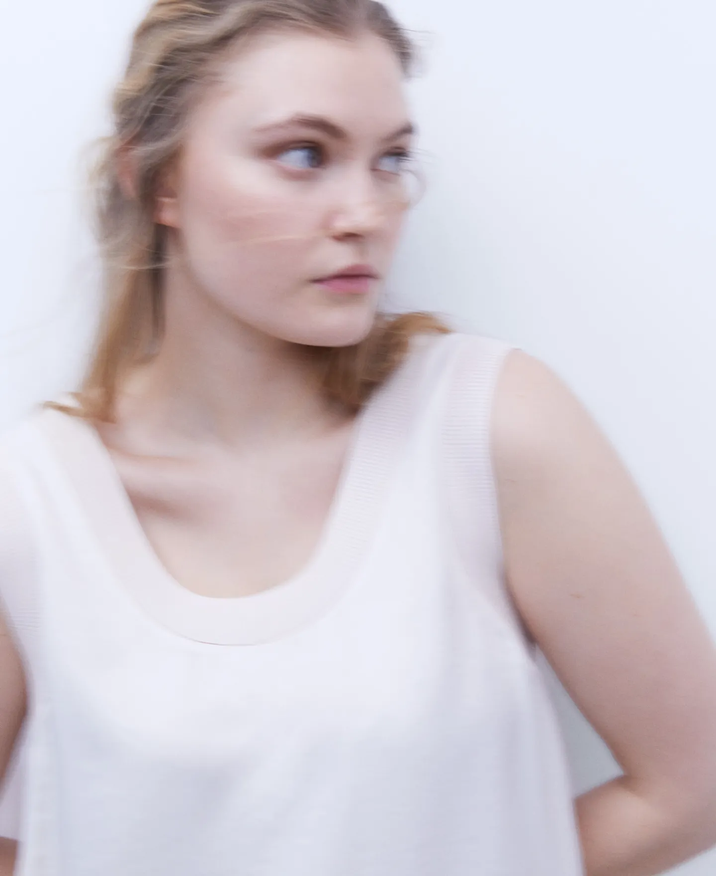 Camisola Com Decote Redondo. Manga Cava. Acabamentos Canelados. Bainha Arredondada.