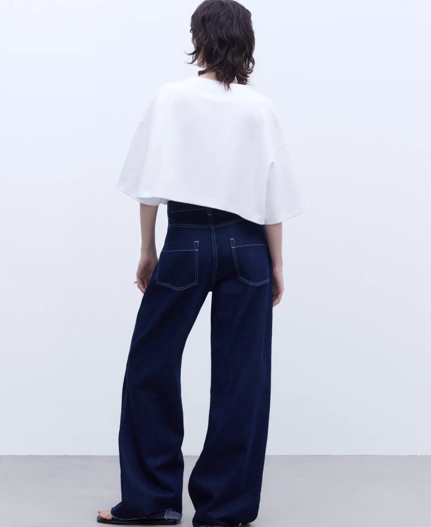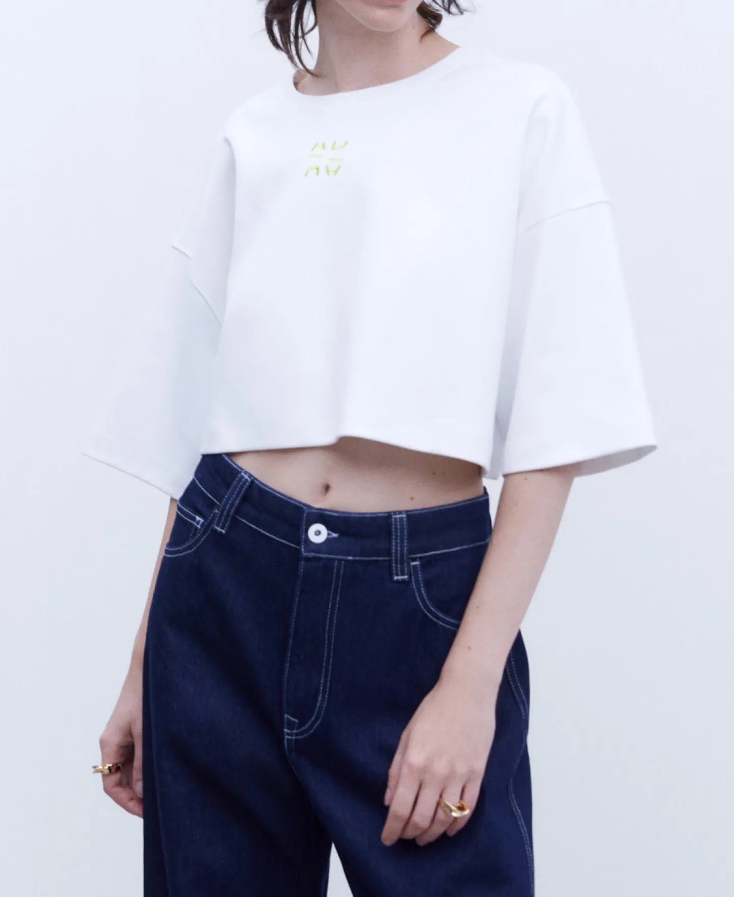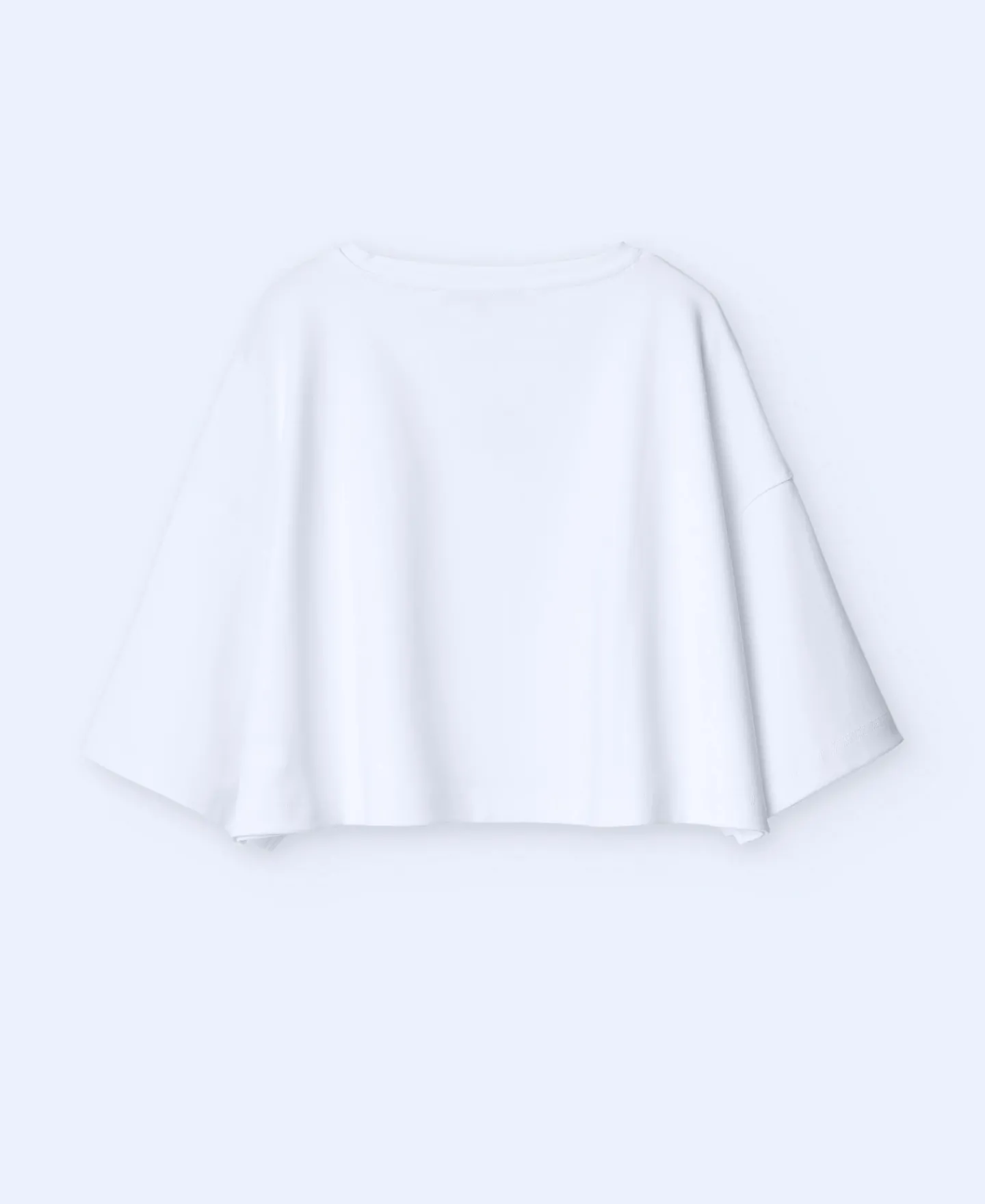 Camisola Crop. 100% Algodao. Manga Curta E Caida. Oversize. Logotipo Bordado.