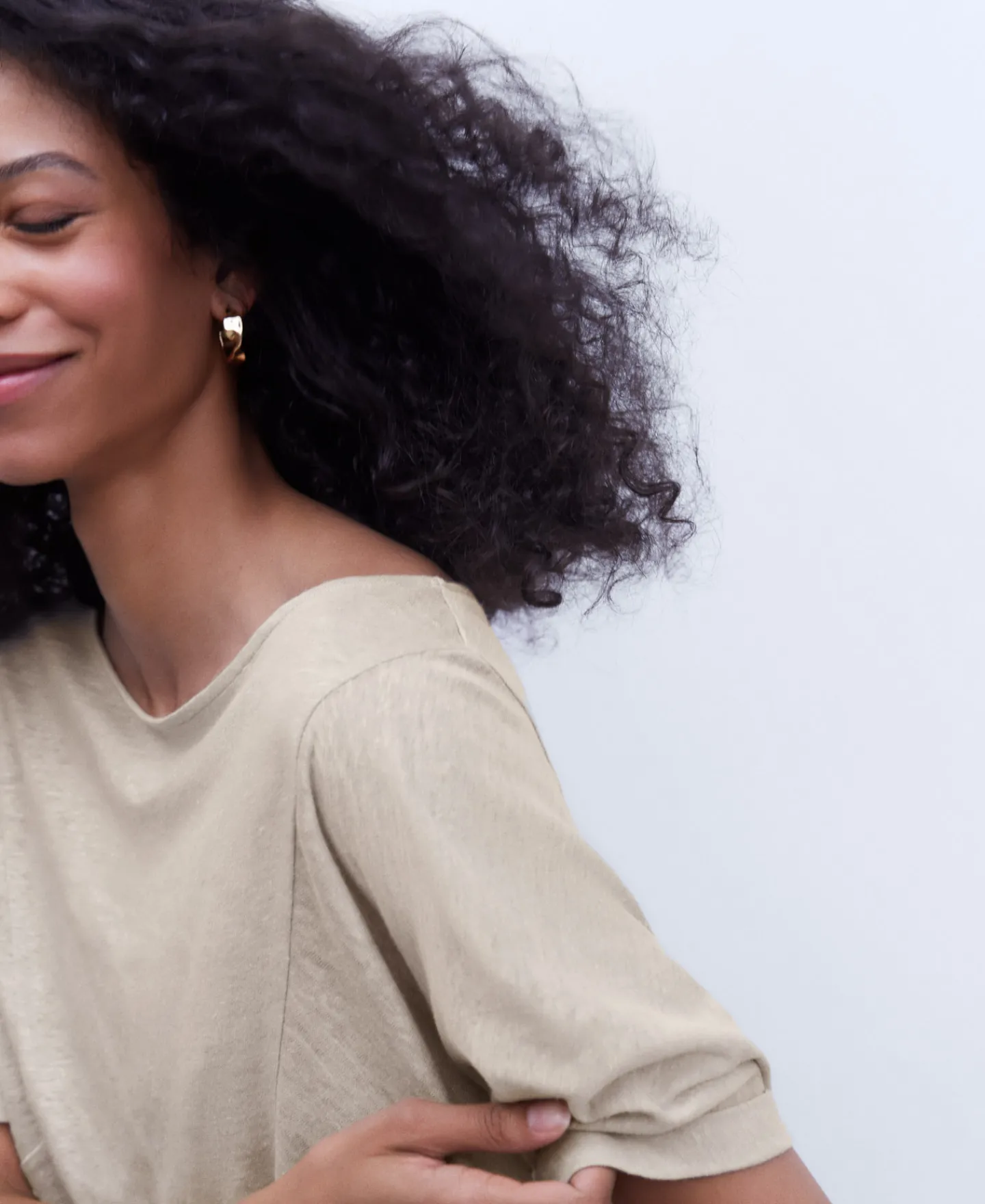 Manga Japonesa. Detalhe De Costura No Ombro. Bainha Reta.100% LinhoGola BarcoManga JaponesaDetalhe De Costura