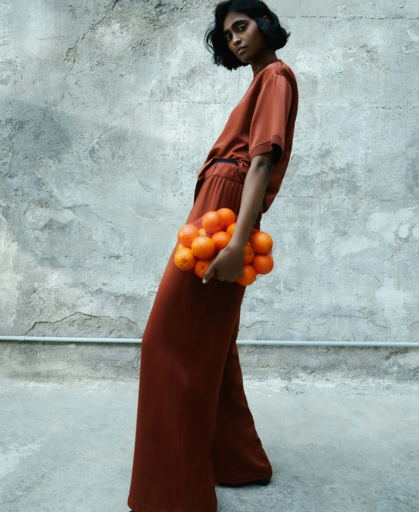 Camisola De Manga Curta Caida Acabamentos Canelados. Bainha Reta.Manga Curta CaidaCanaladoBainha Reta