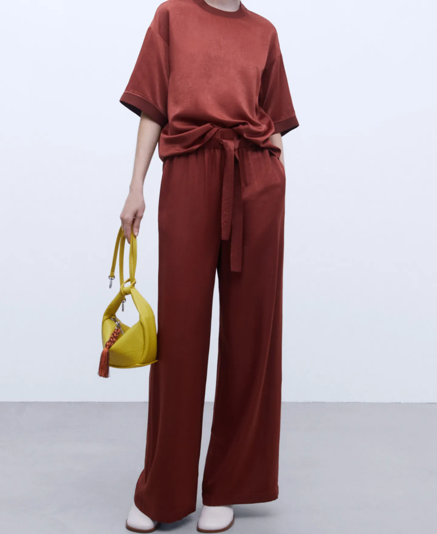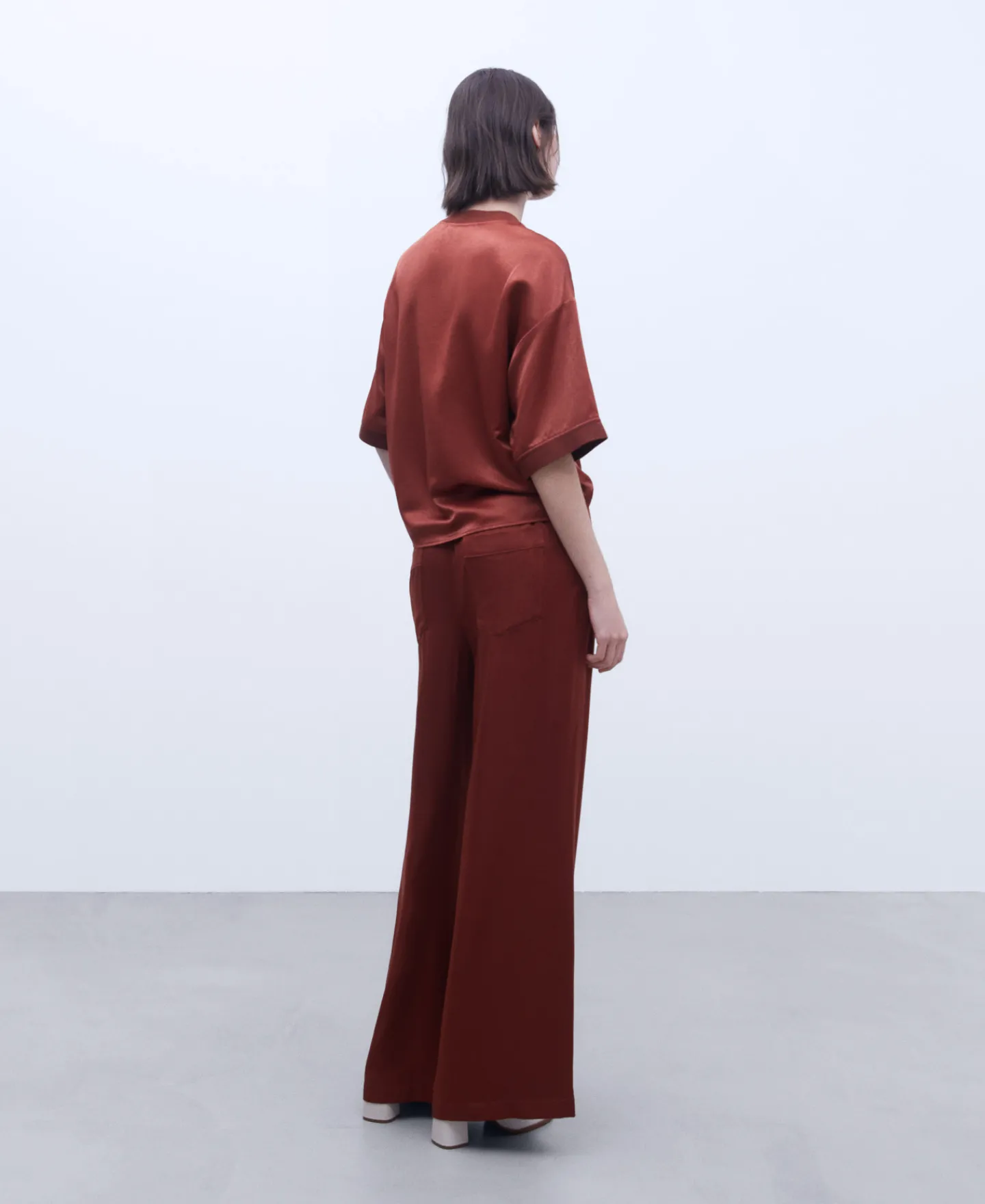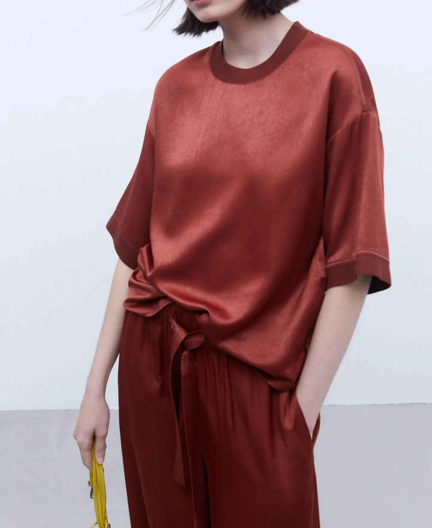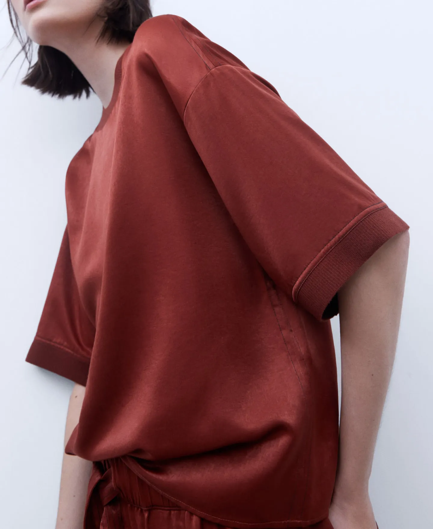 Camisola De Manga Curta Caida Acabamentos Canelados. Bainha Reta.Manga Curta CaidaCanaladoBainha Reta
