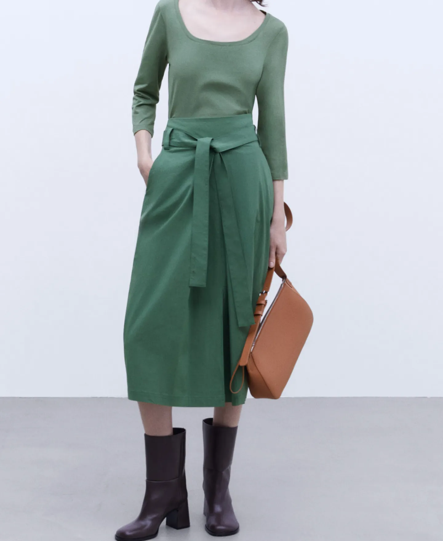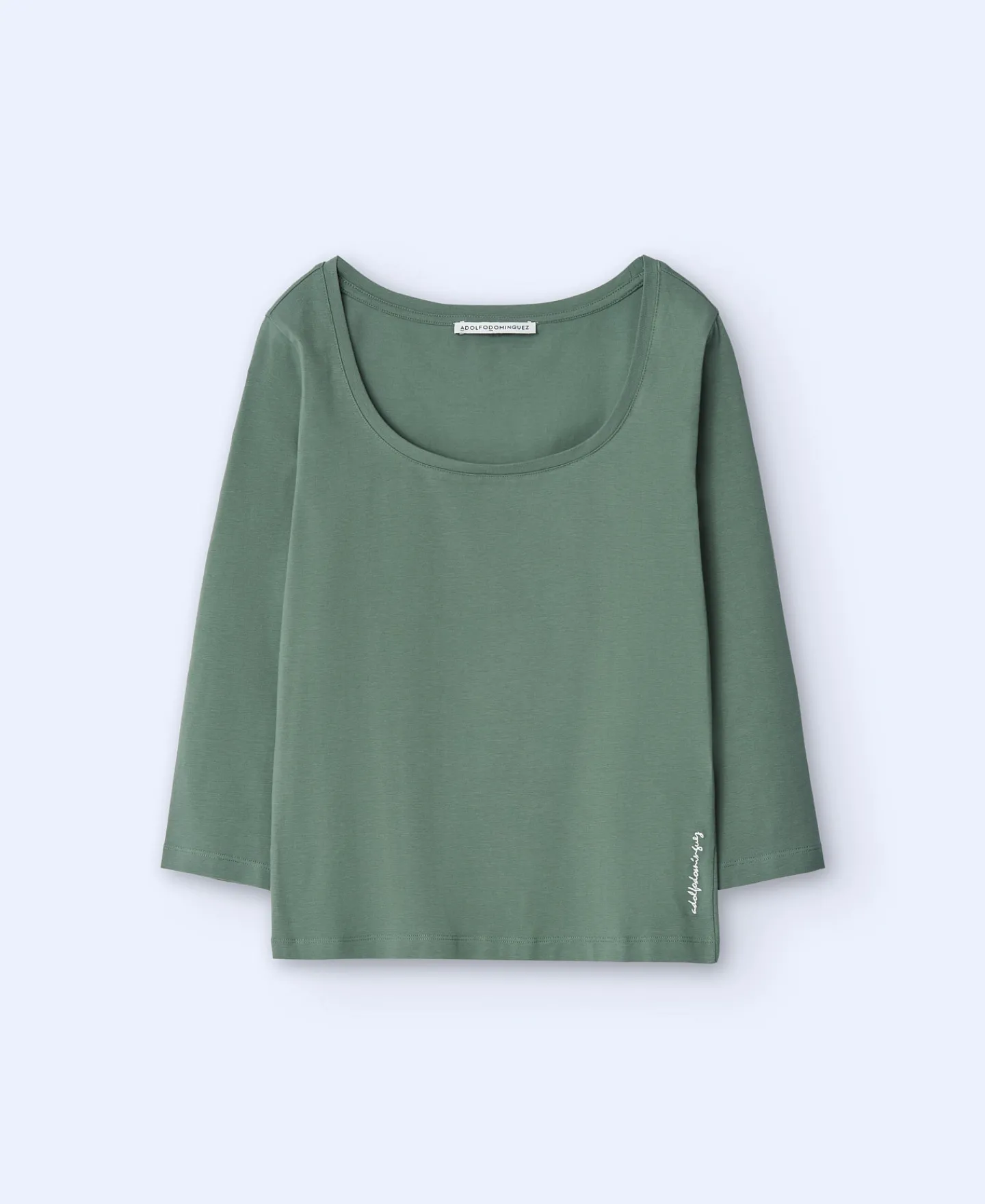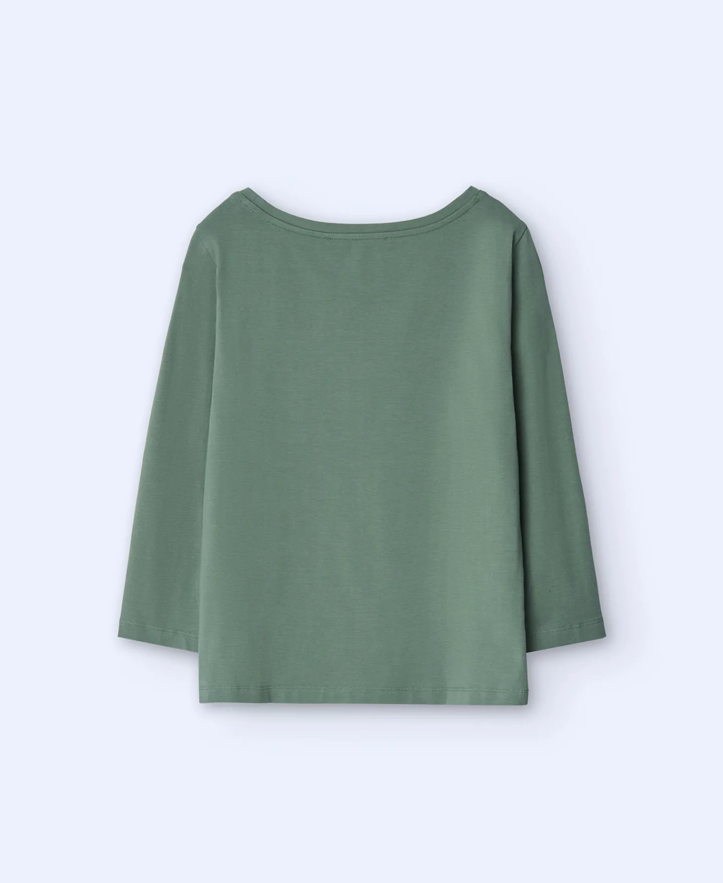 Camisola Fluida. Decote Banheira. Manga Comprida. Logotipo Bordado. Bainha Reta.