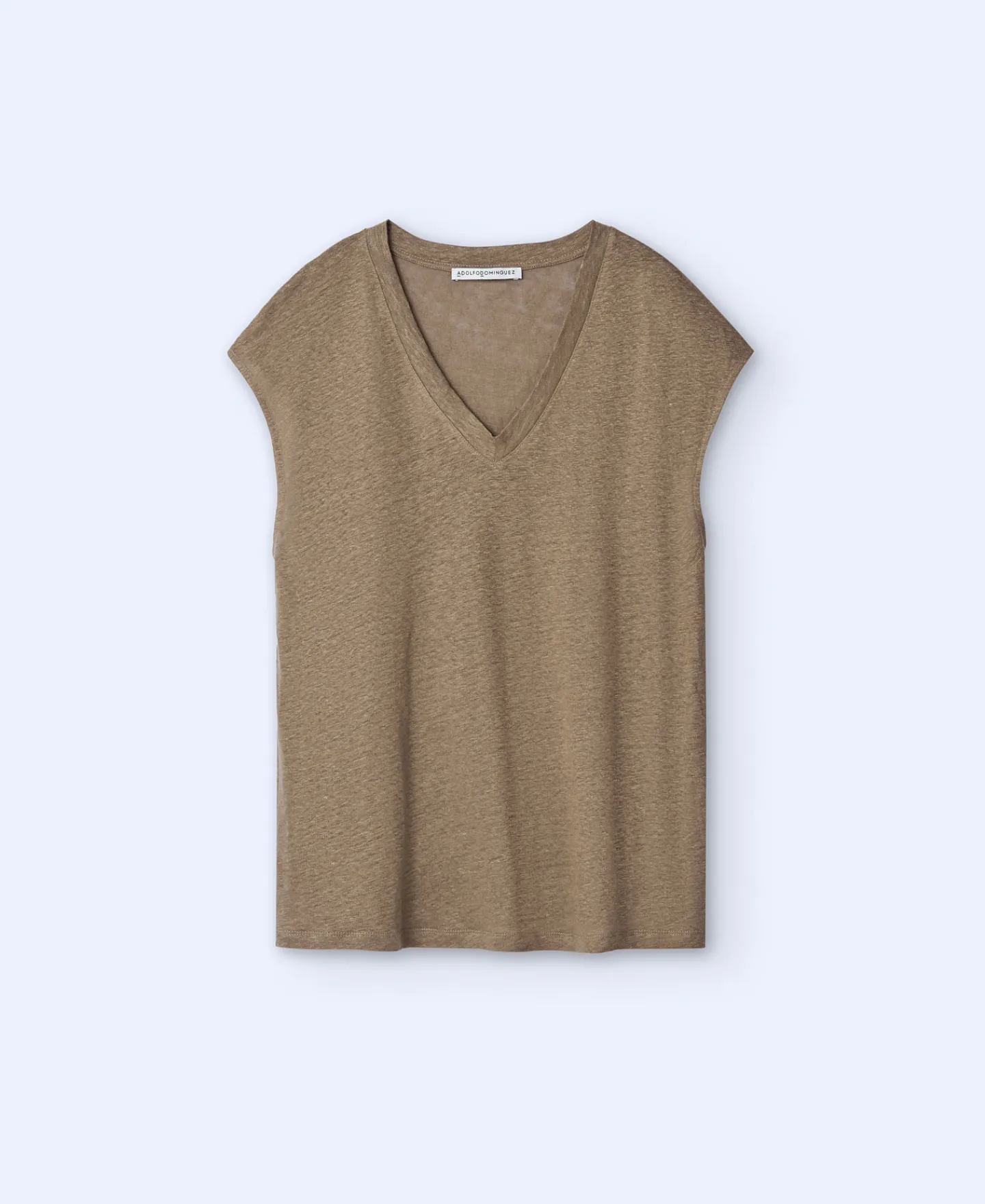 Gola Em V. Estrutura Quadrada. Bainha Reta. 100% LinhoGola Em VSem MangasBainha Reta