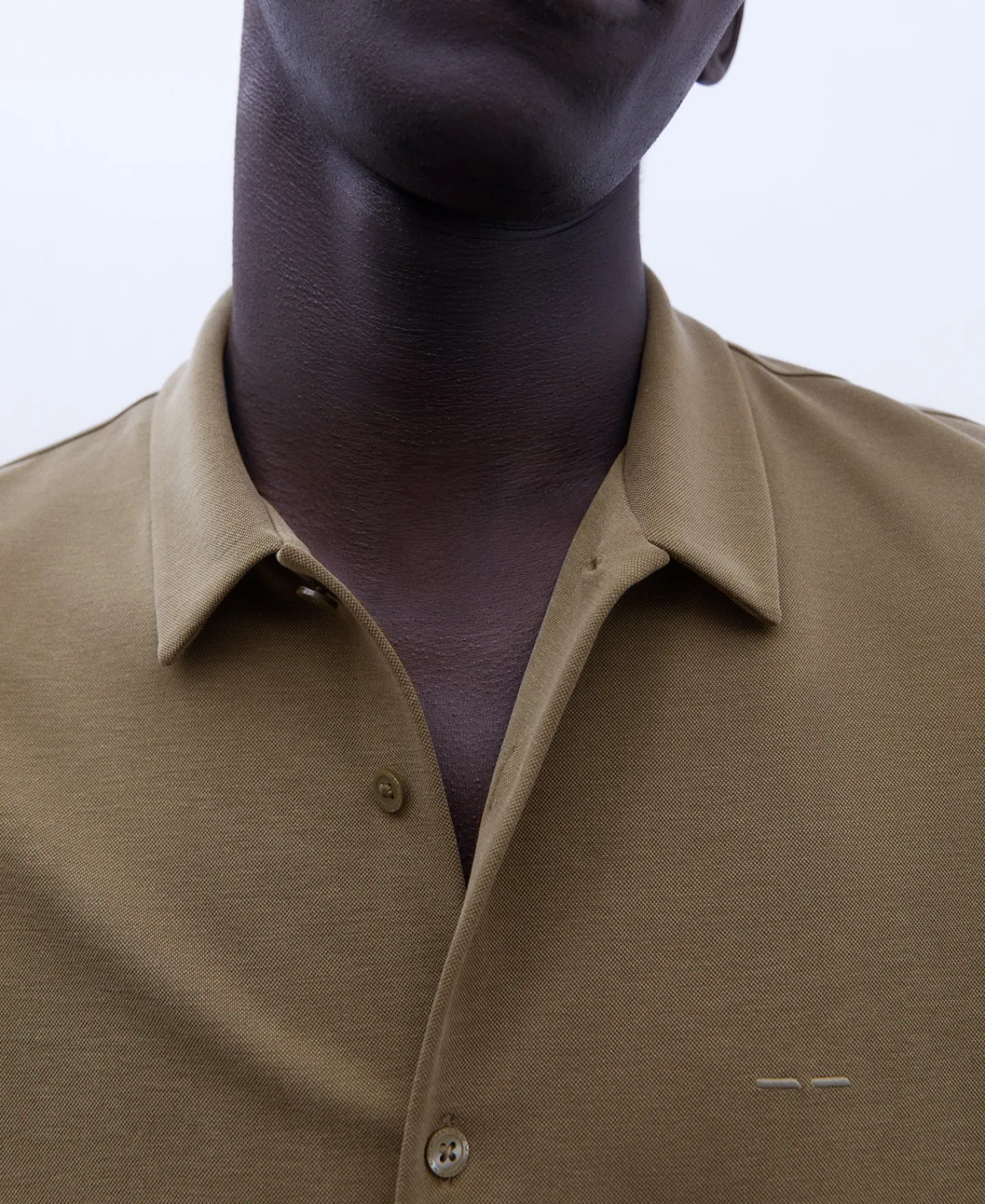 Manga Curta. Gola De Lapela. Abotoadura Central. Aberturas Laterais. Logotipo Bordado Na Bainha.72% Modal Lenzing™28% …