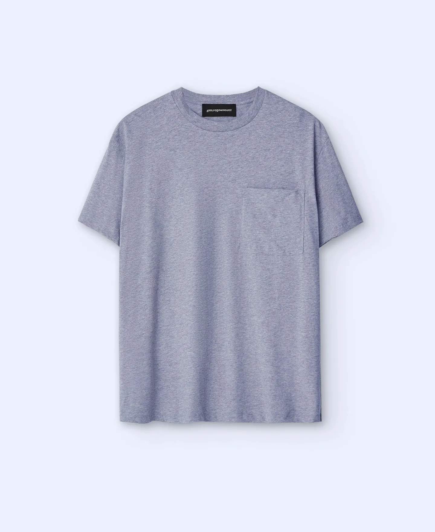 Camisola De Corte Descontraido. 100% Algodao. Gola Redonda. Bolso Plastrao Frontal. Manga Curta. Abertura Lateral. Bainha Assimetrica. Logotipo Bordado.