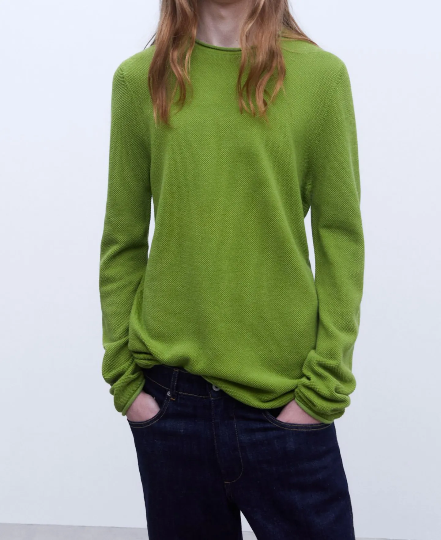 Camisola De Manga Comprida Com Gola Caixa Em Algodao E Viscose. Costuras Invisiveis. Gola, Punhos E Bainha Com Acabamento Role. Logotipo Bordado No Lado Inferior.