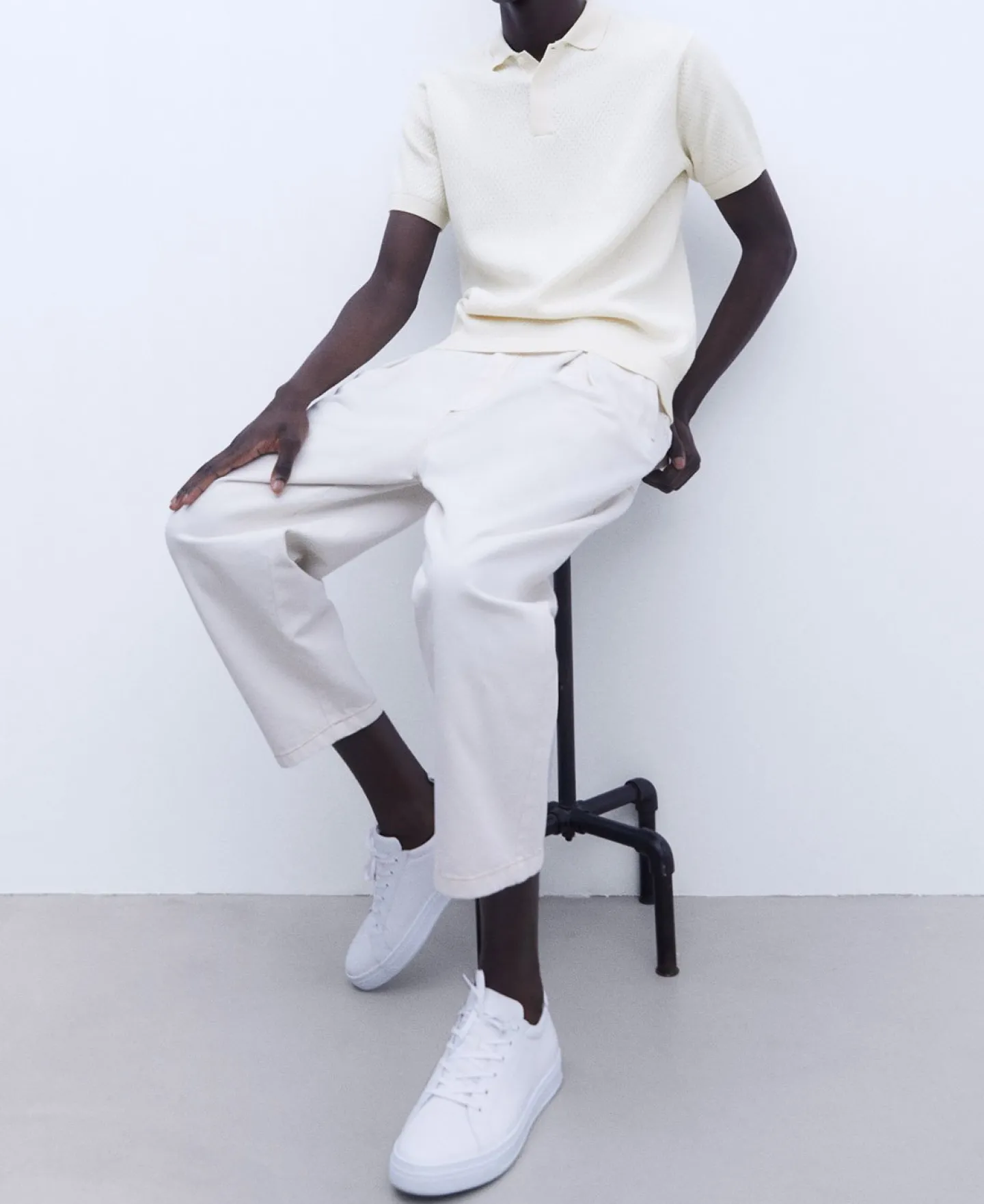 Gola Polo. Um Botao. Manga Curta. Remates Canelados.