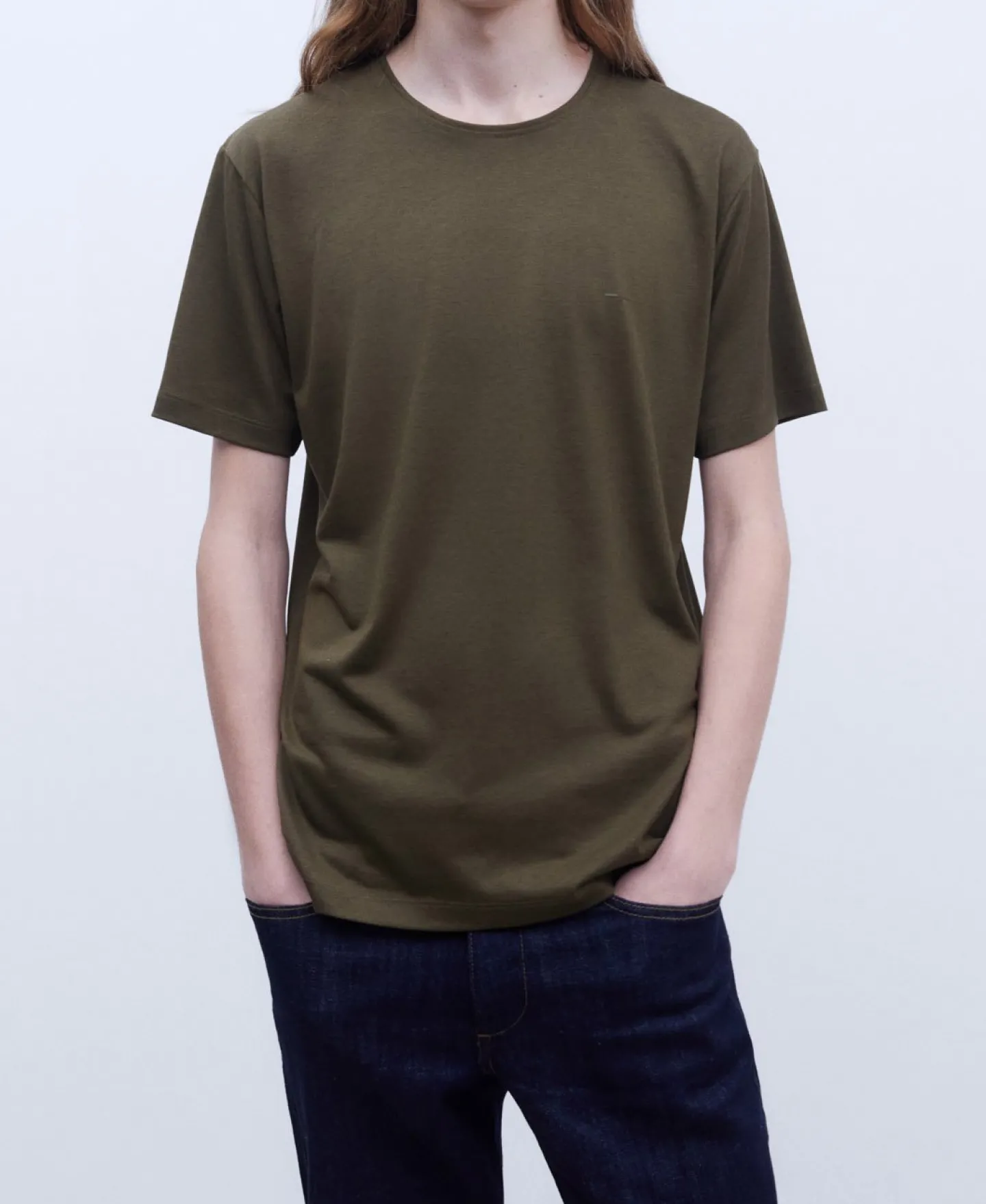 T-Shirt Em Tencel E Algodao. Gola Redonda. Manga Curta. Logotipo No Peito.