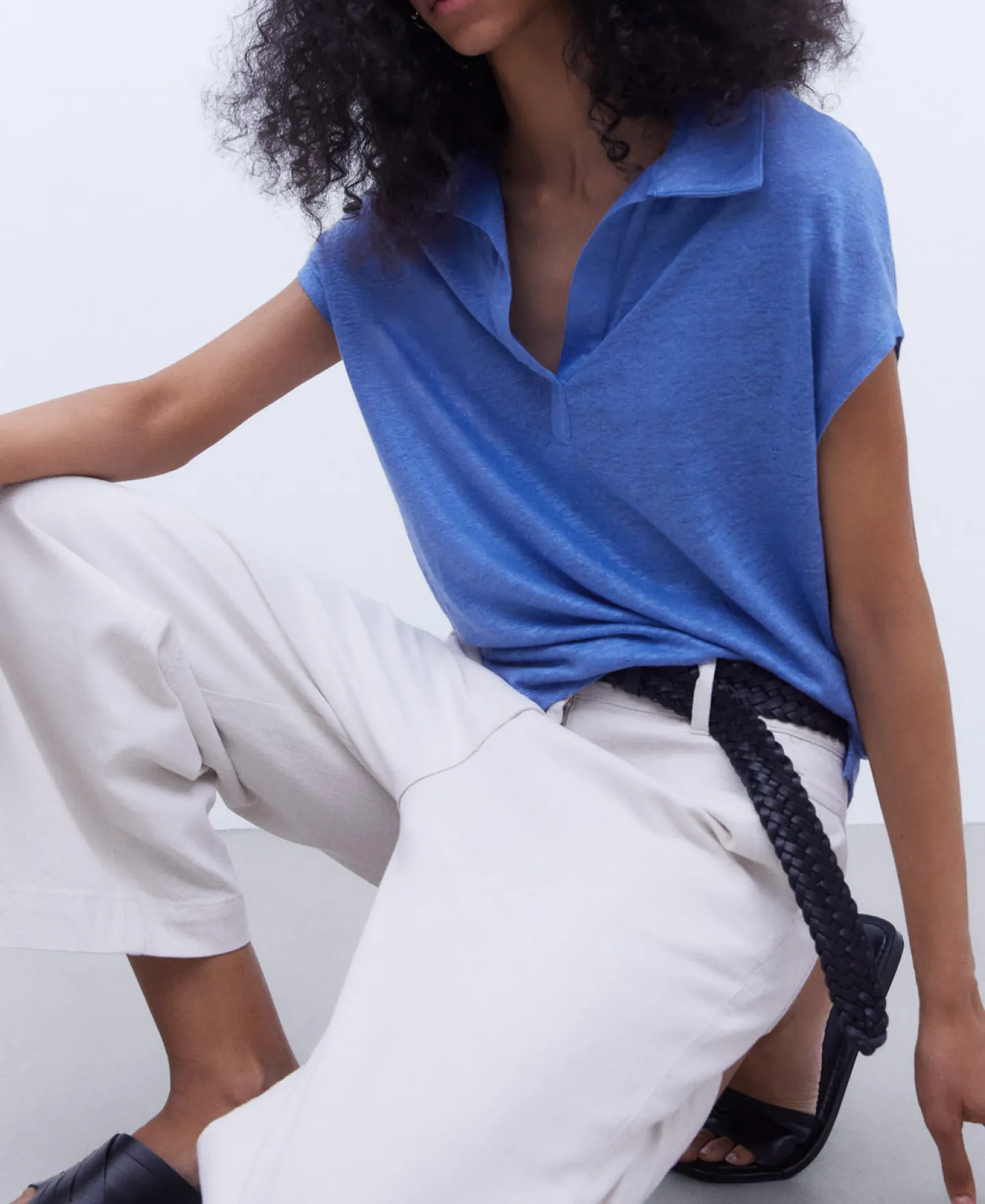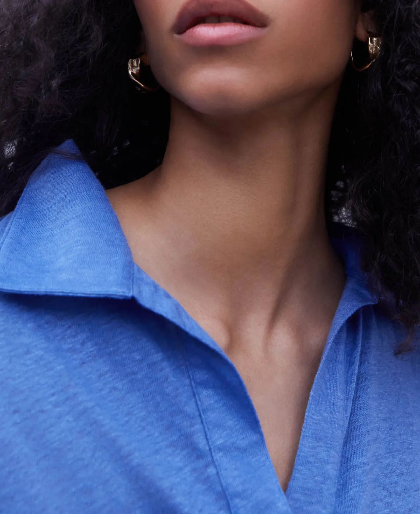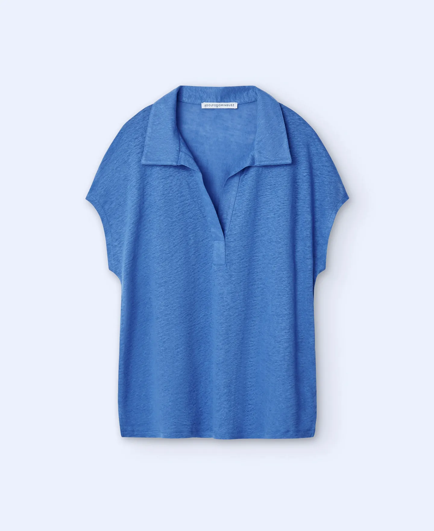 Gola Camiseiro Com Carcela. Manga Raglan Curta. Silhueta Descontraida.100% Linho EuropeuGola CamiseiroManga Curta
