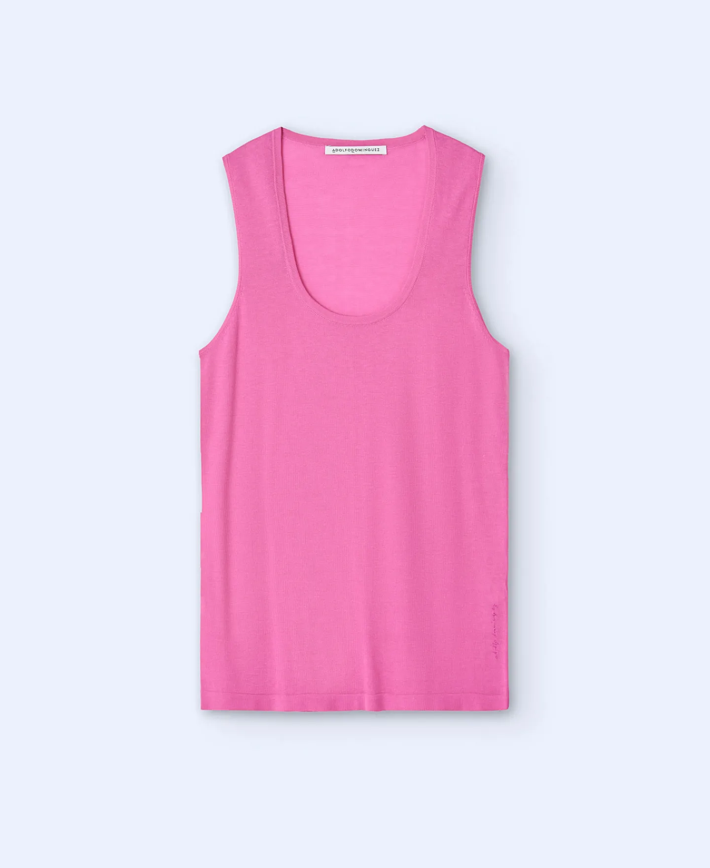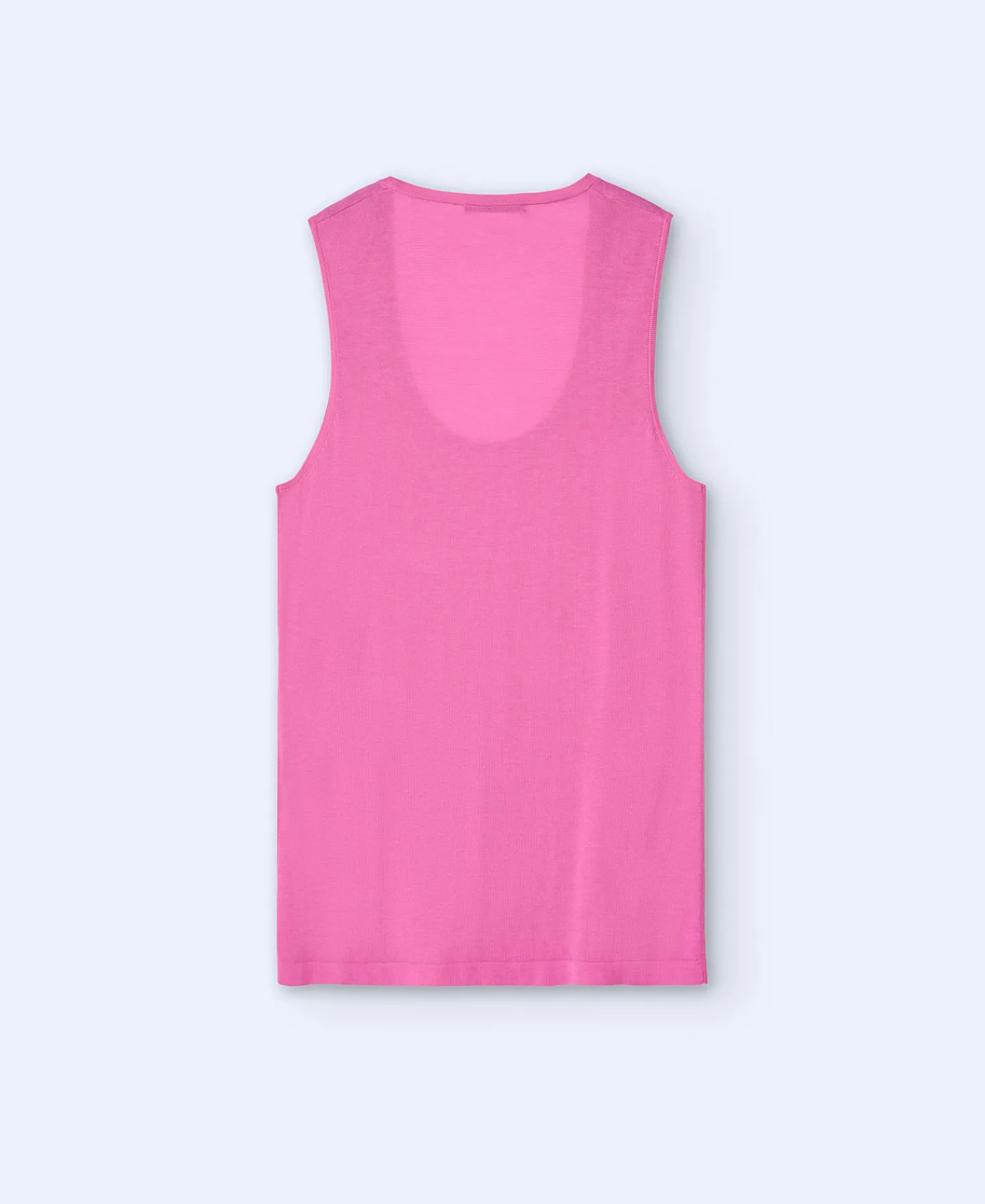 Top Em Tencel, Algodao E Seda Mulberry. Sem Mangas. Remates Em Malha Tubular. Logotipo. Bainha Reta.