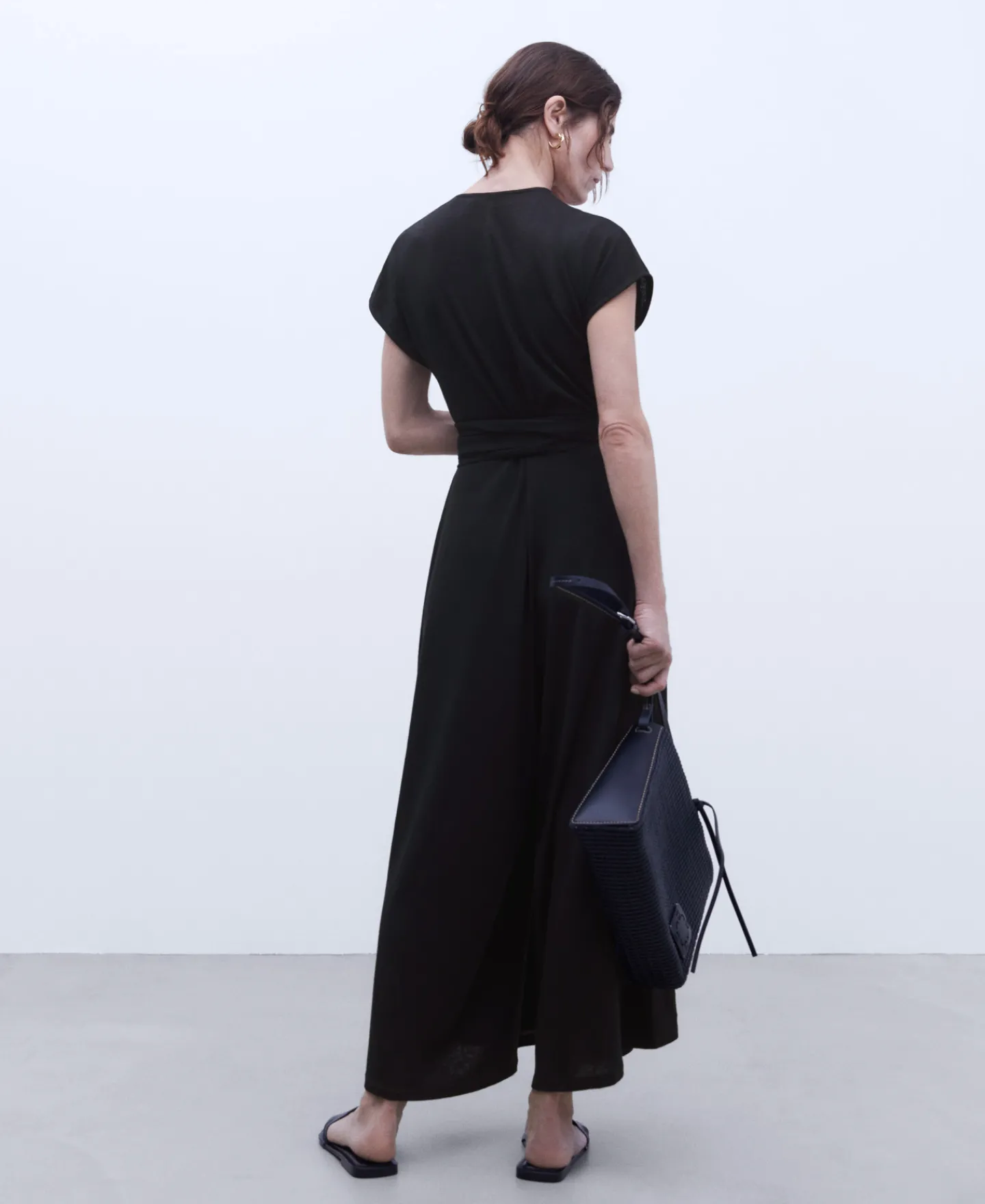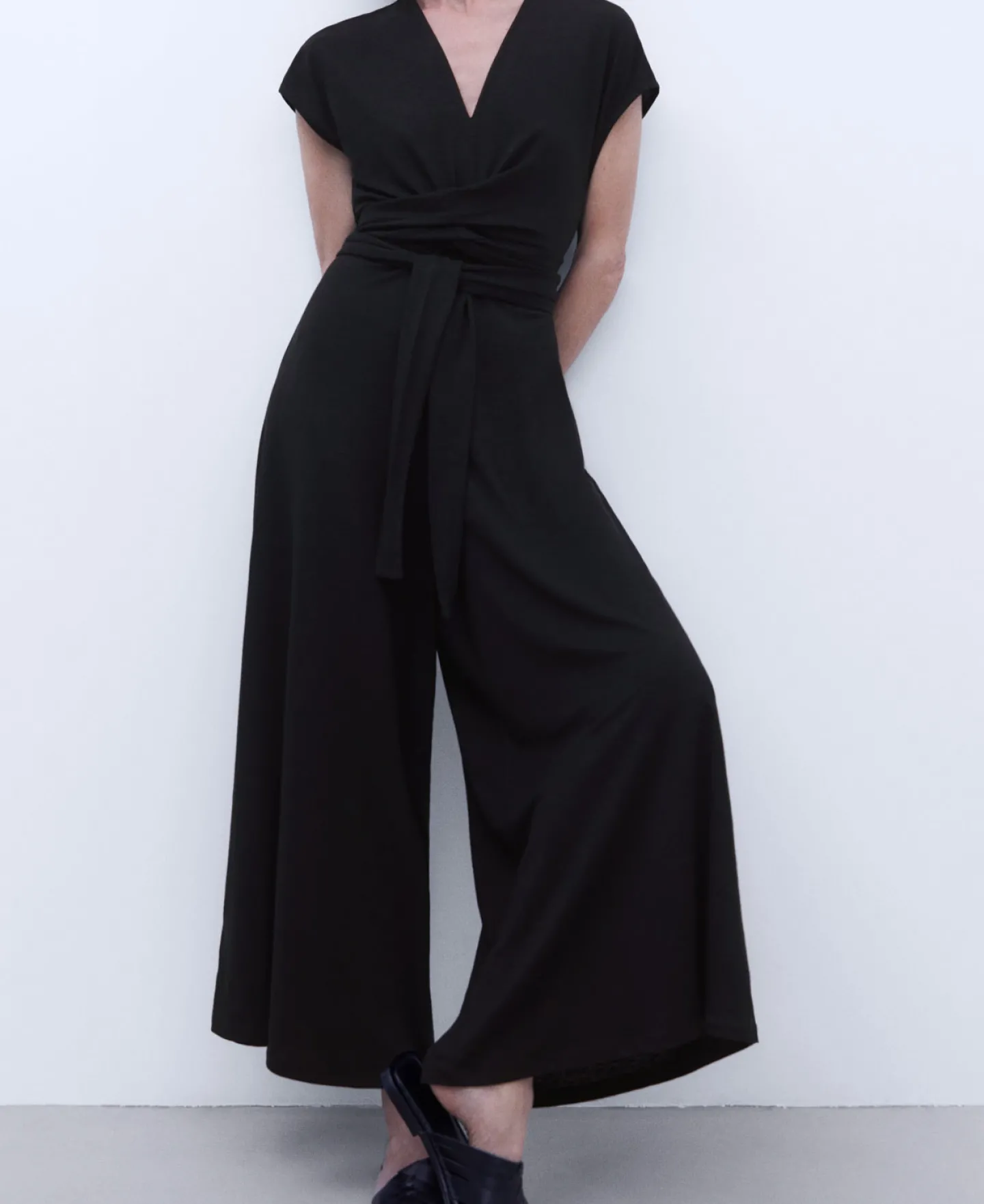 Decote Em V. Manga Caida. Cinto. Fecho De Correr Traseiro. Corte Amplo.