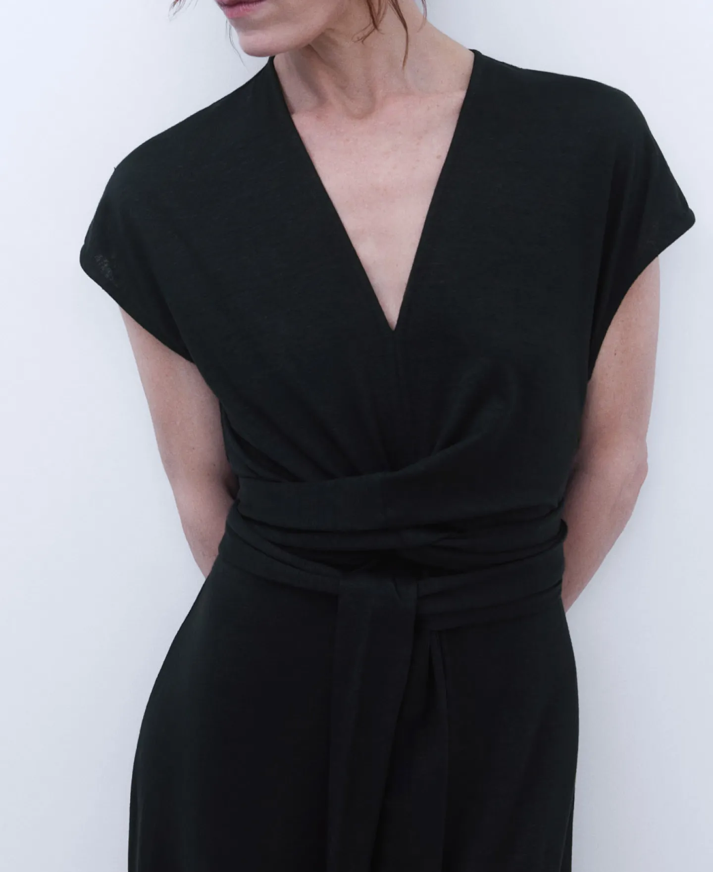 Decote Em V. Manga Caida. Cinto. Fecho De Correr Traseiro. Corte Amplo.85% Linho EuropeuDecote Em VManga Caida