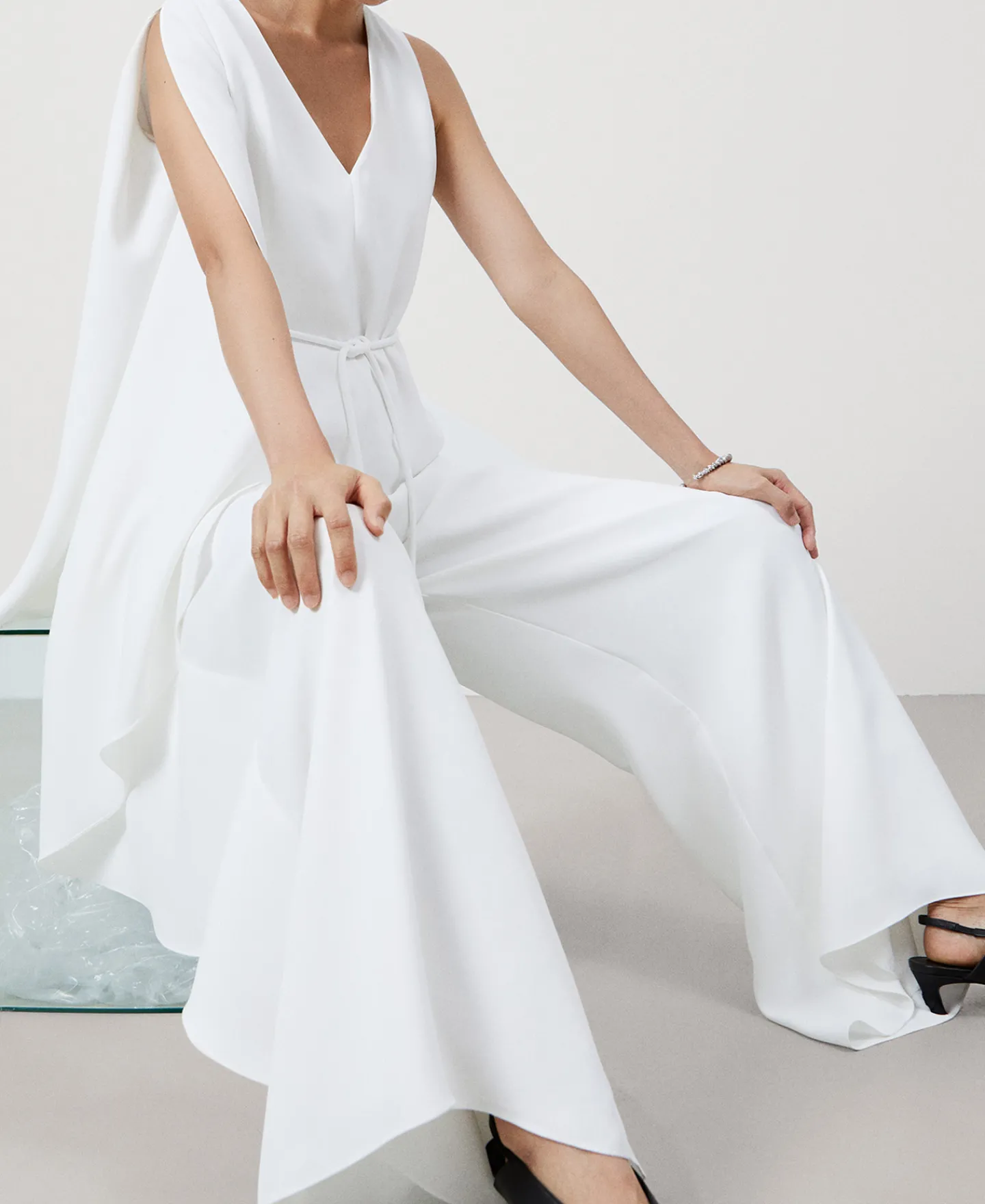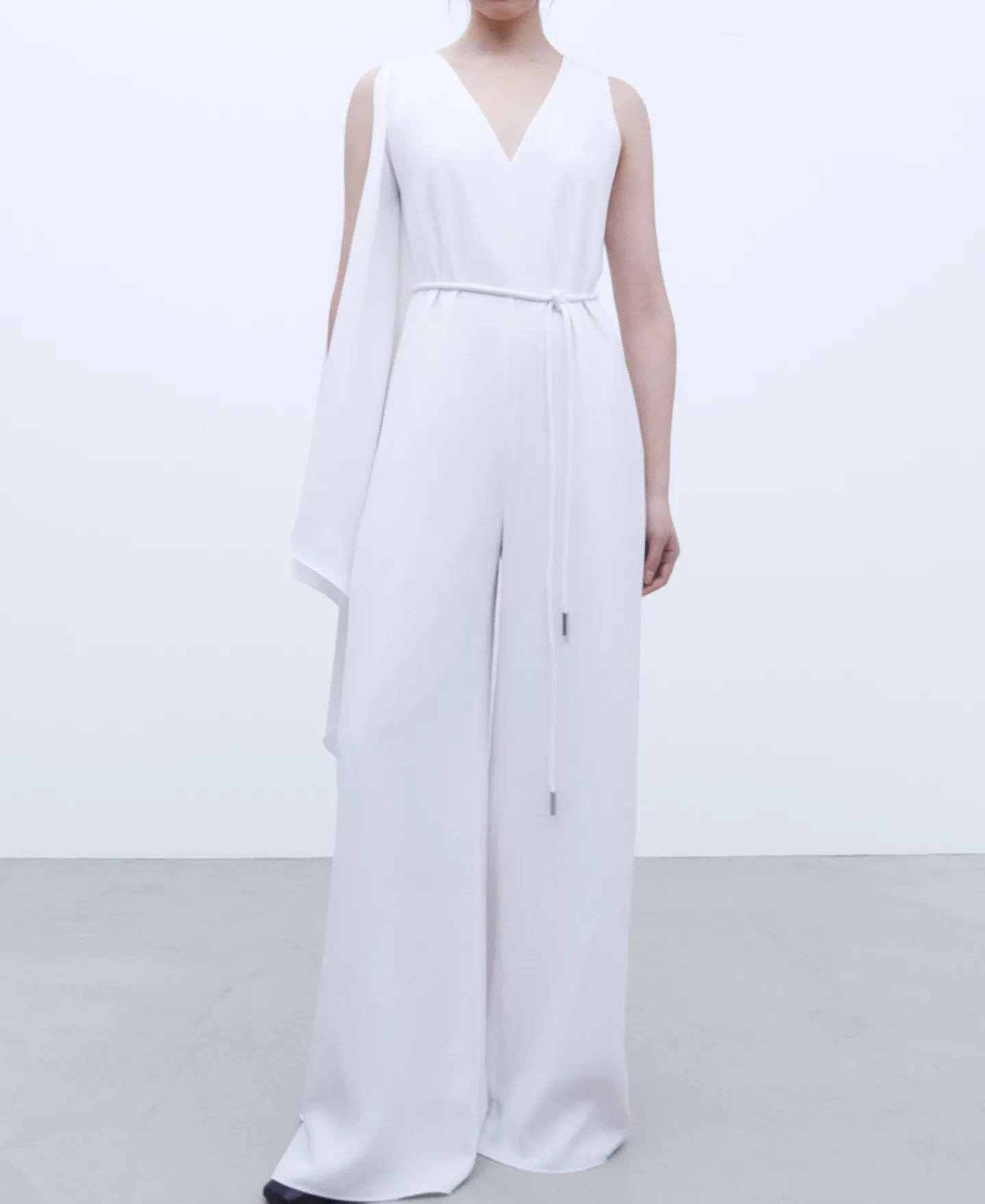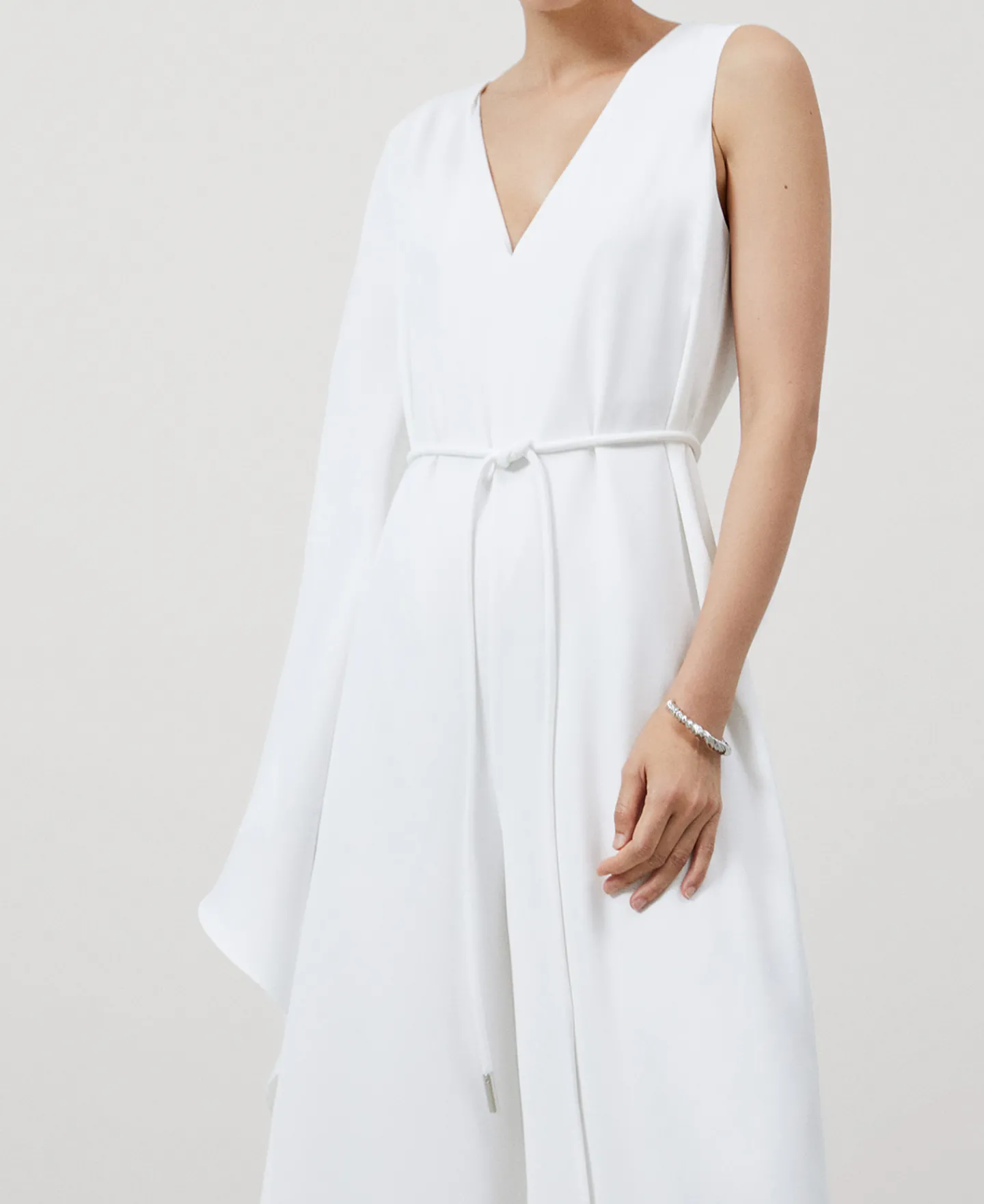 Macacao De Festa Assimetrico. Decote Em V. Corte Reto. Cinto Em Cordao.