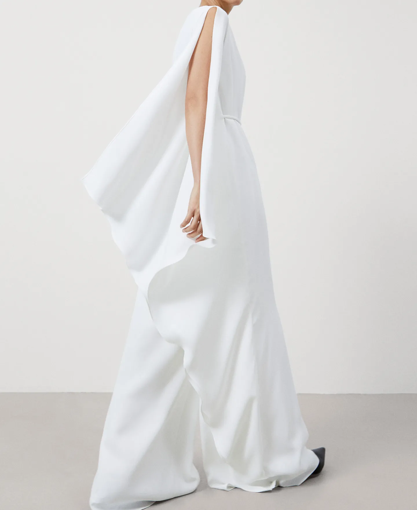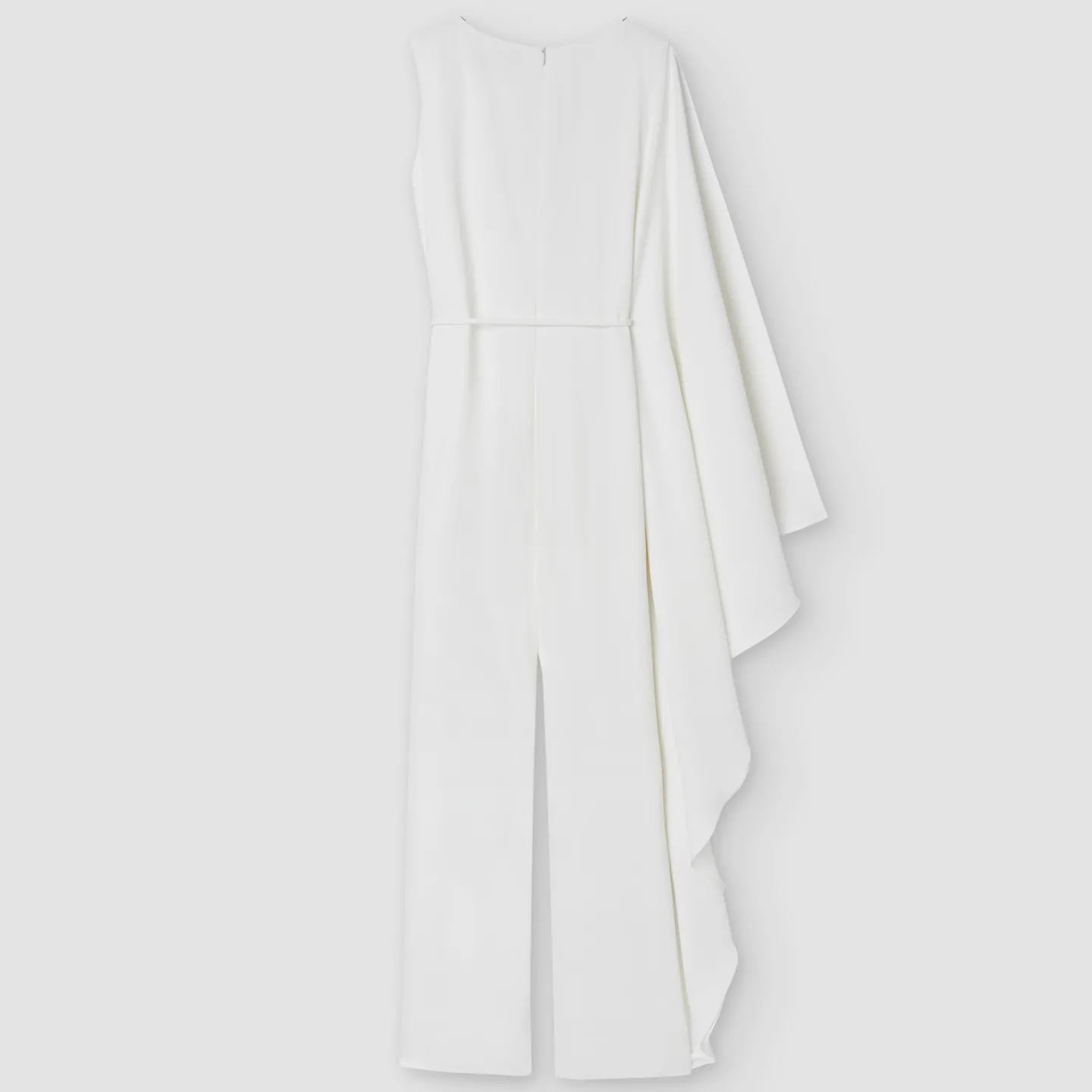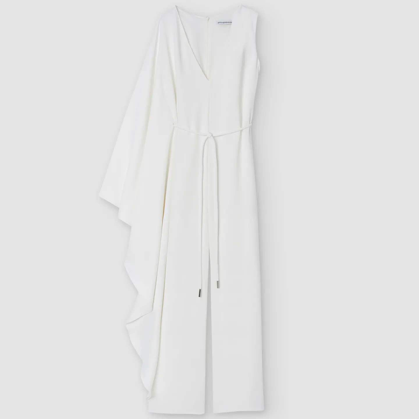 Macacao De Festa Assimetrico. Decote Em V. Corte Reto. Cinto Em Cordao.