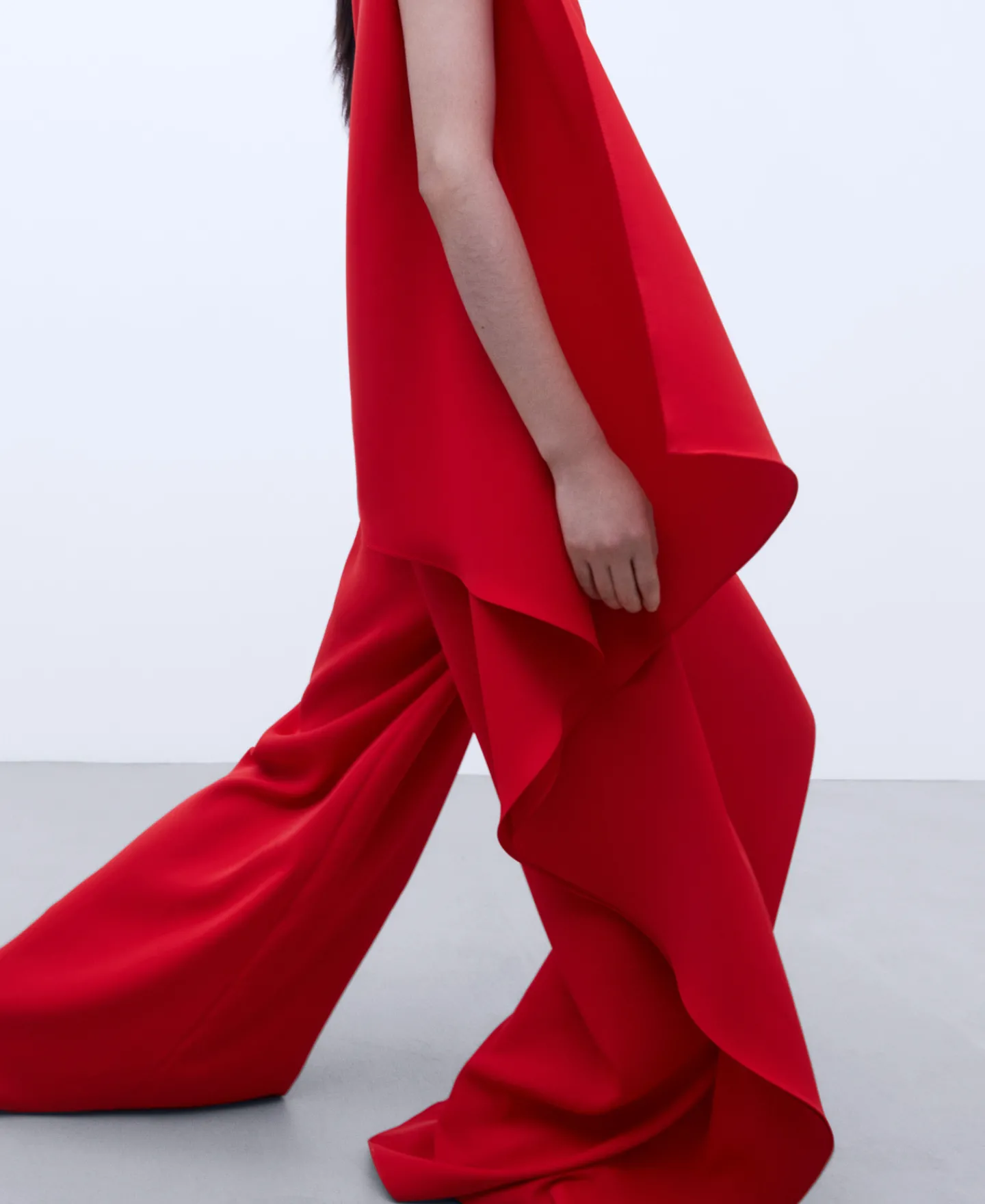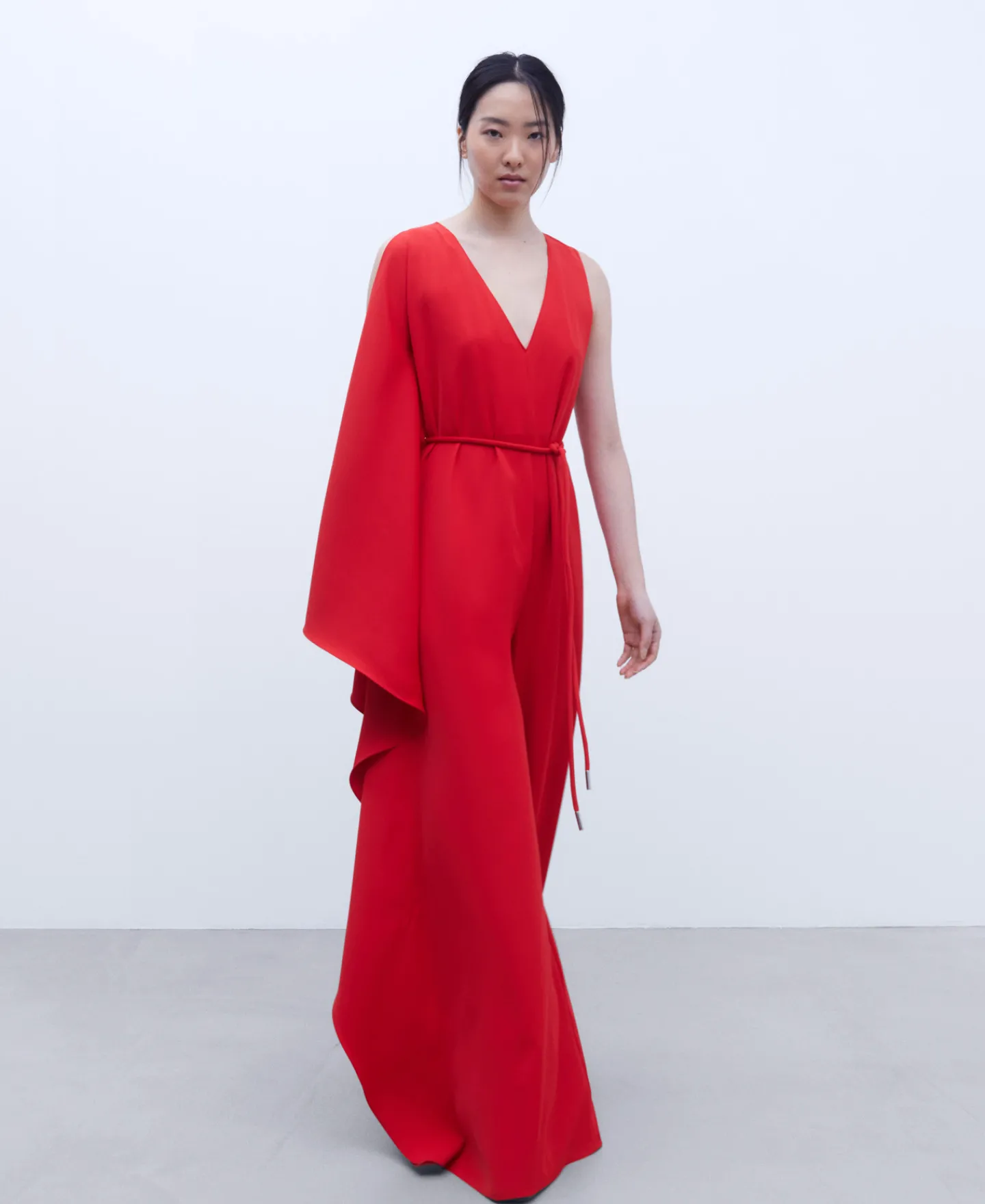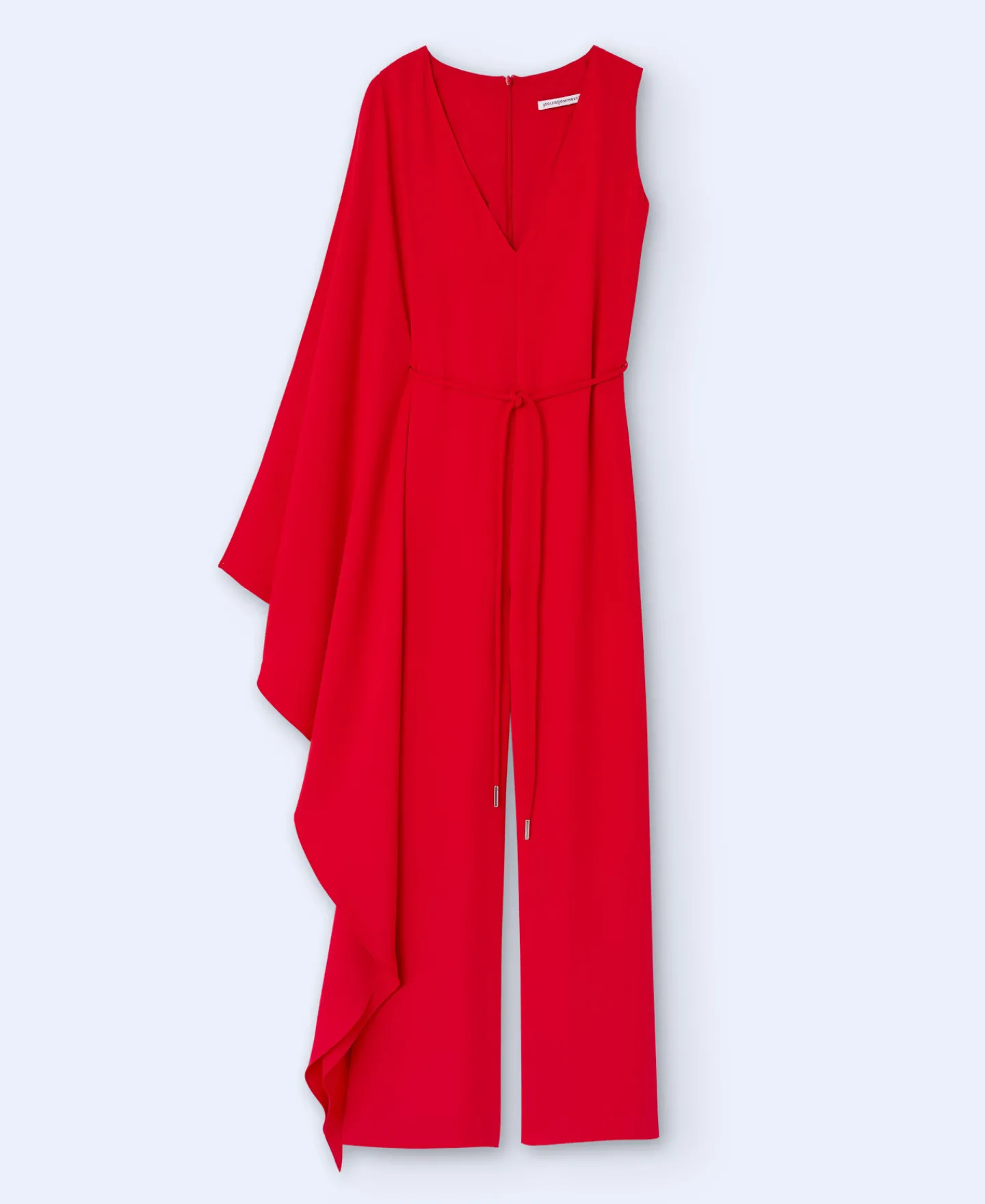 Macacao De Festa Assimetrico. Decote Em V. Corte Reto. Cinto Em Cordao.