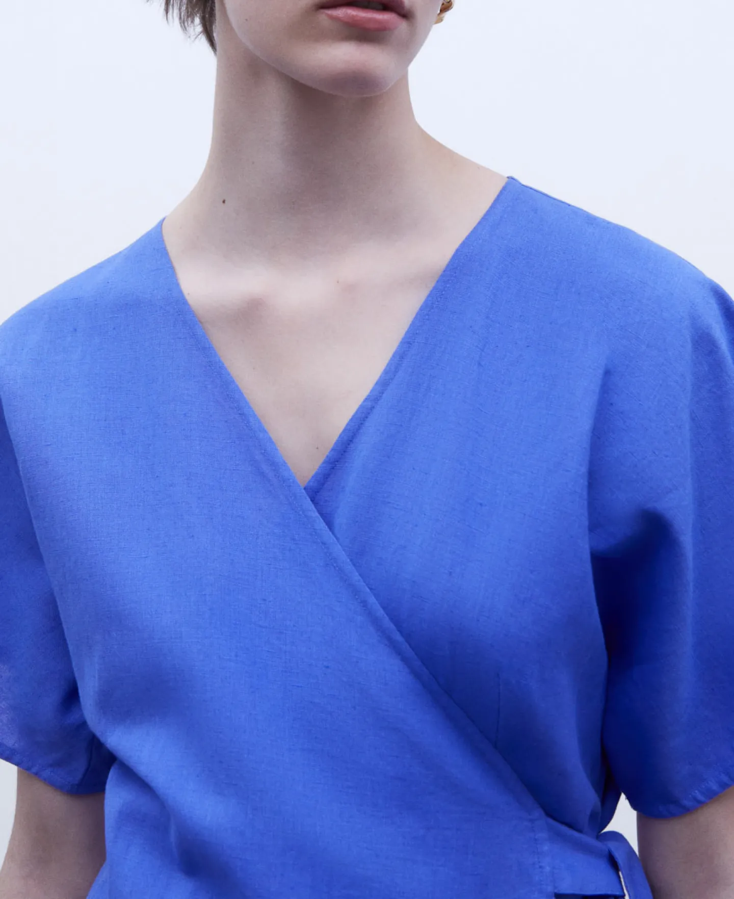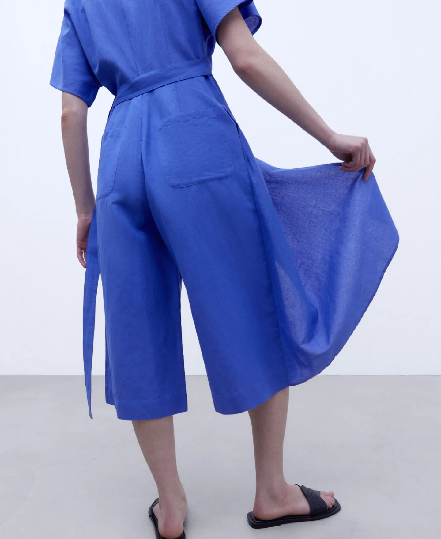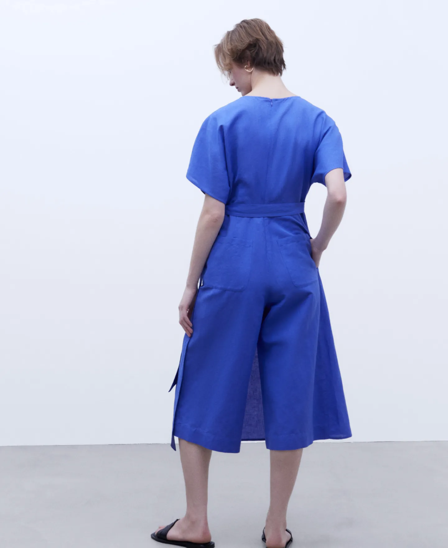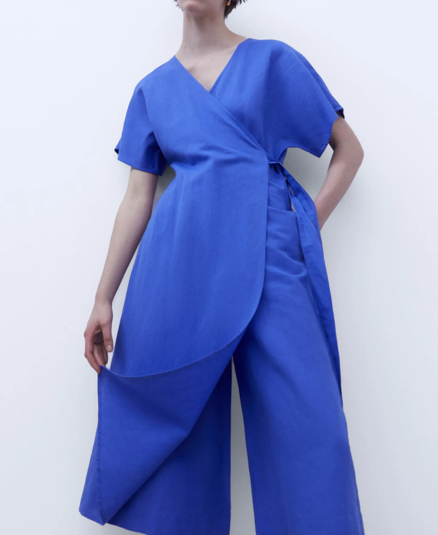 Decote Em V. Perna Ampla. Elemento Lateral Com No.55% Linho Europeu45% AlgodaoDecote Em VManga Japonesa
