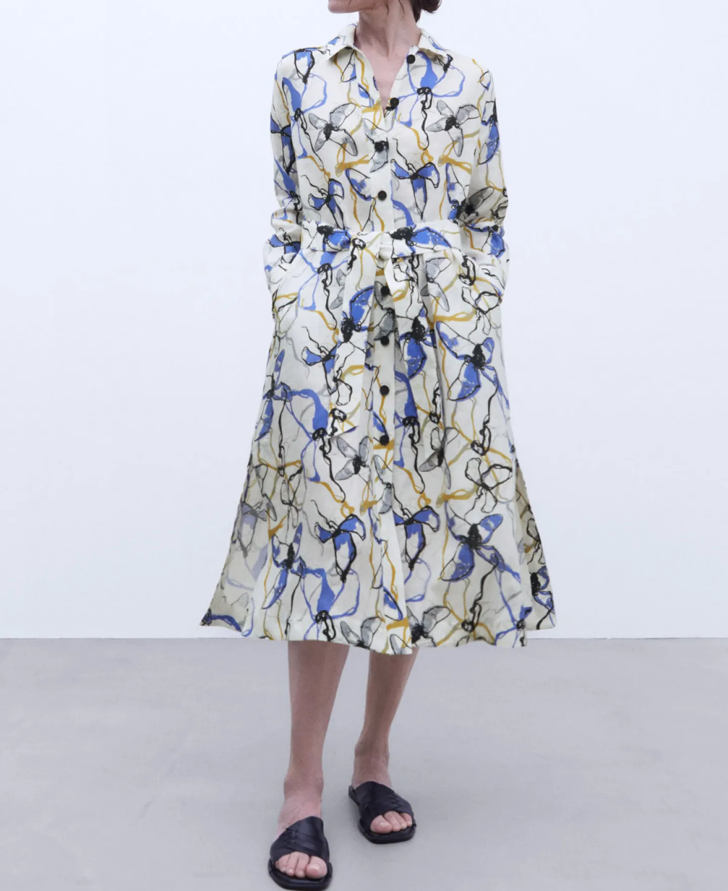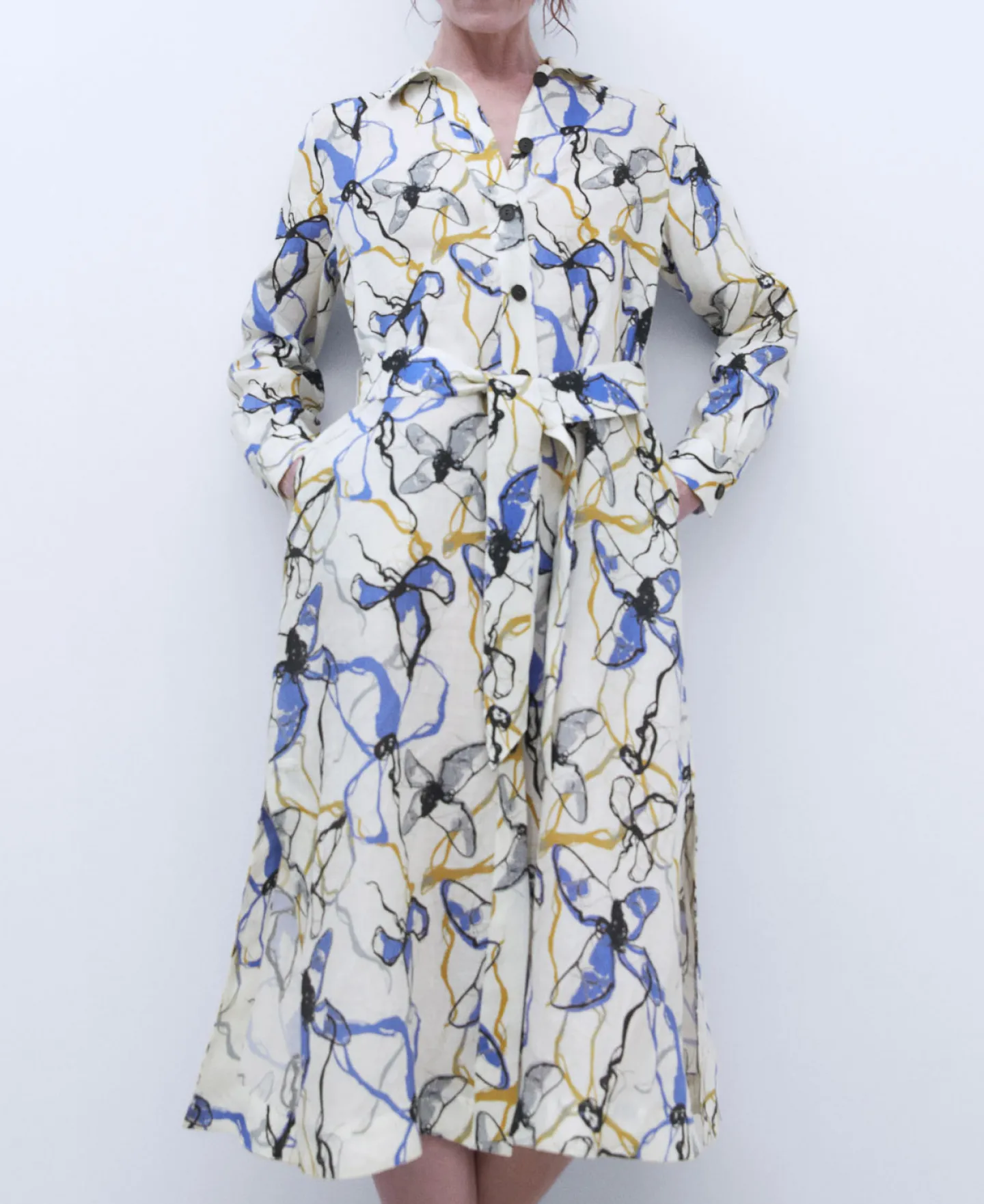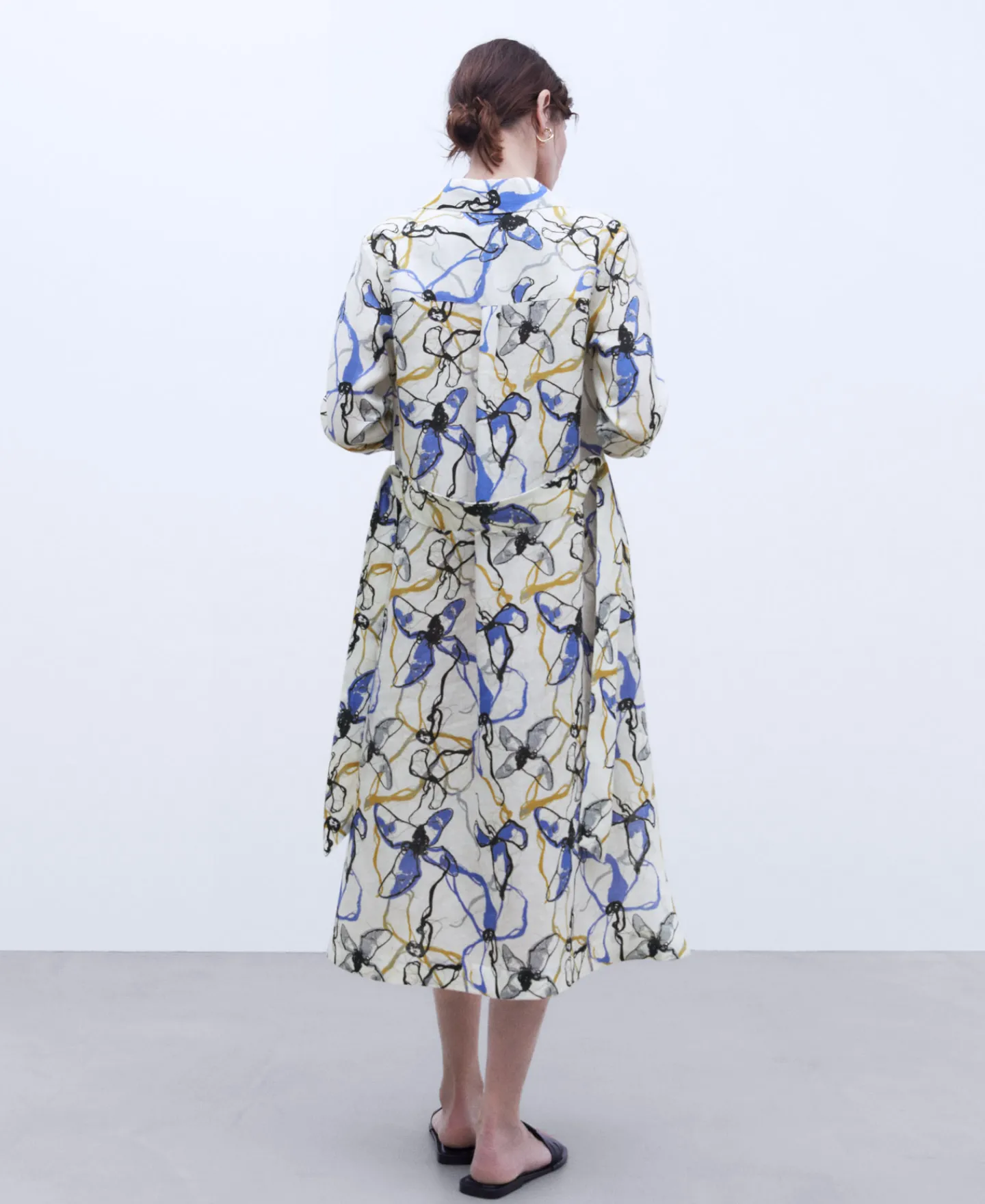 Gola Camiseiro. Abotoadura Central. Manga Comprida. Punho Abotoado. Cinto. Escapulario Nas Costas. Estampado. Corte Reto…