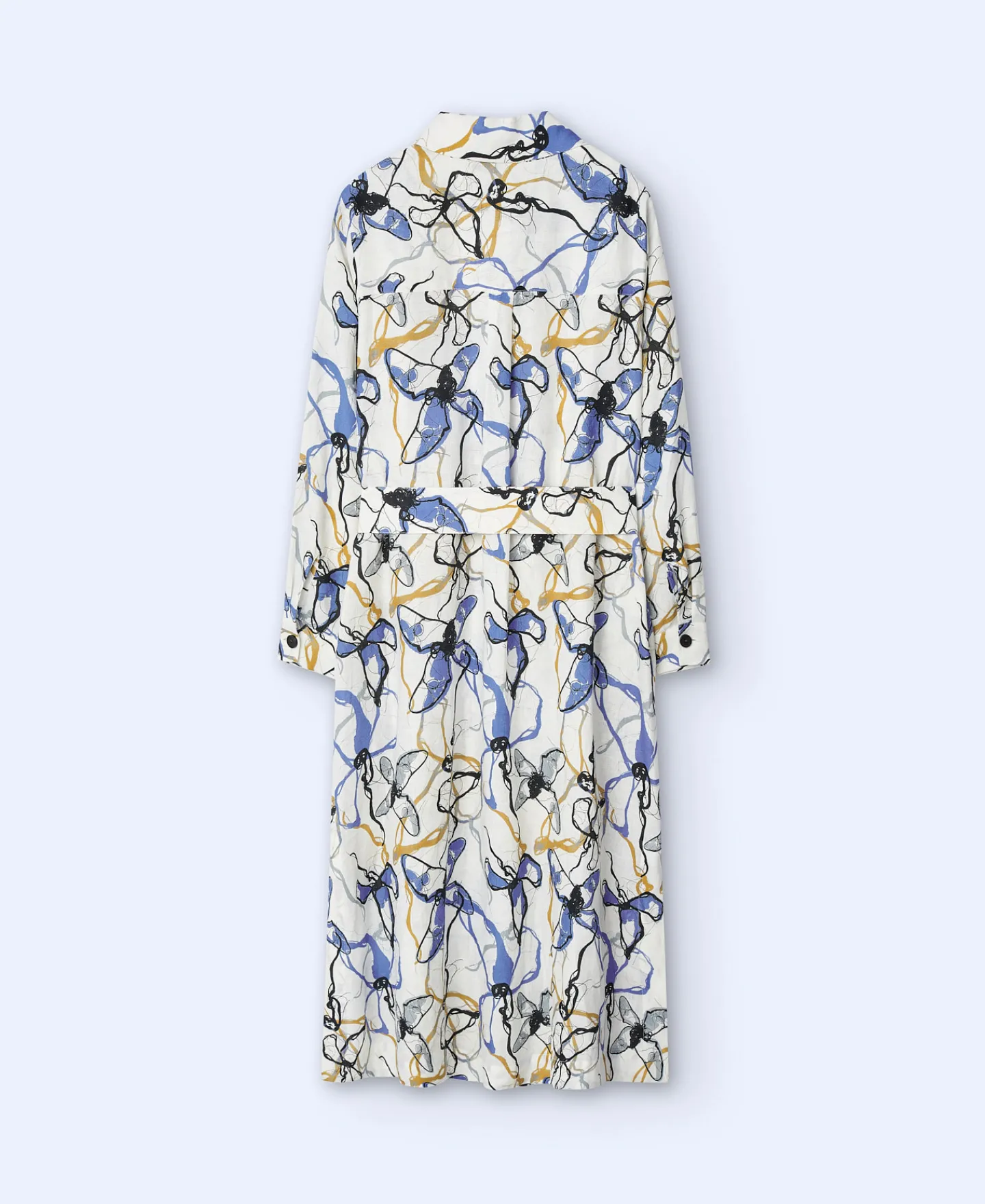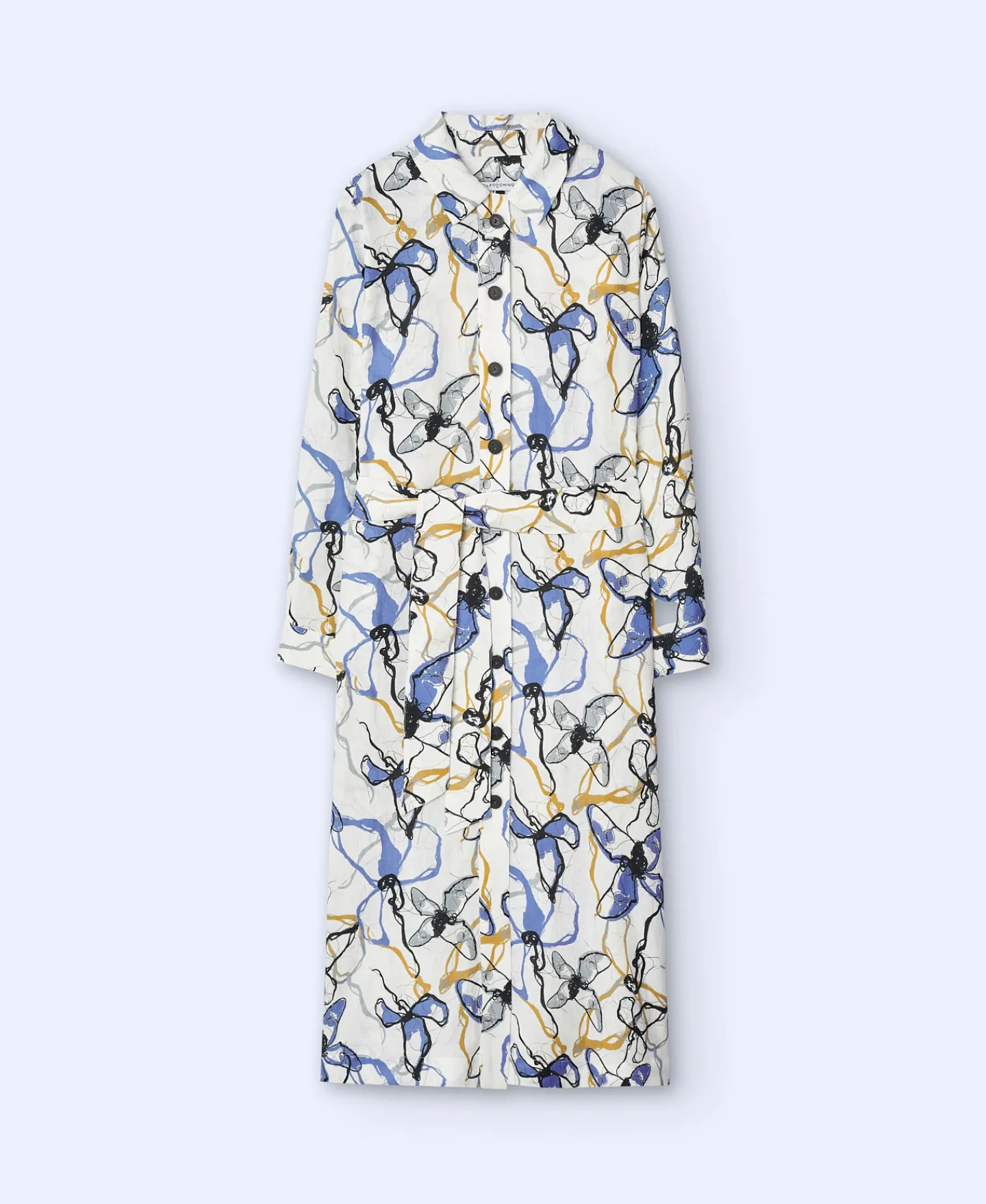 Gola Camiseiro. Abotoadura Central. Manga Comprida. Punho Abotoado. Cinto. Escapulario Nas Costas. Estampado. Corte Reto.