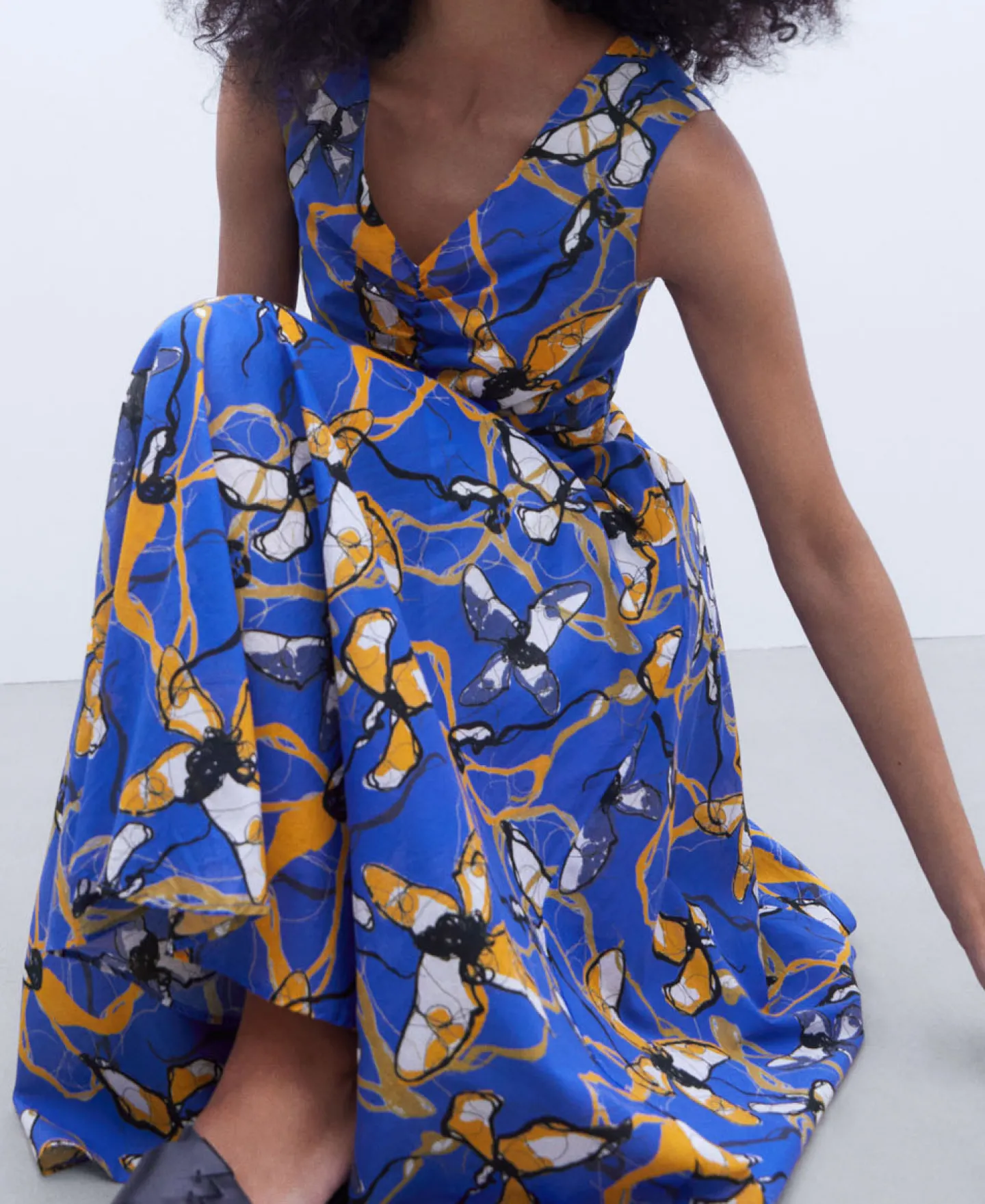 Decote Em V. Saia Capa. Estampado.100% AlgodaoLinha EvaseDecote Em VEstampado