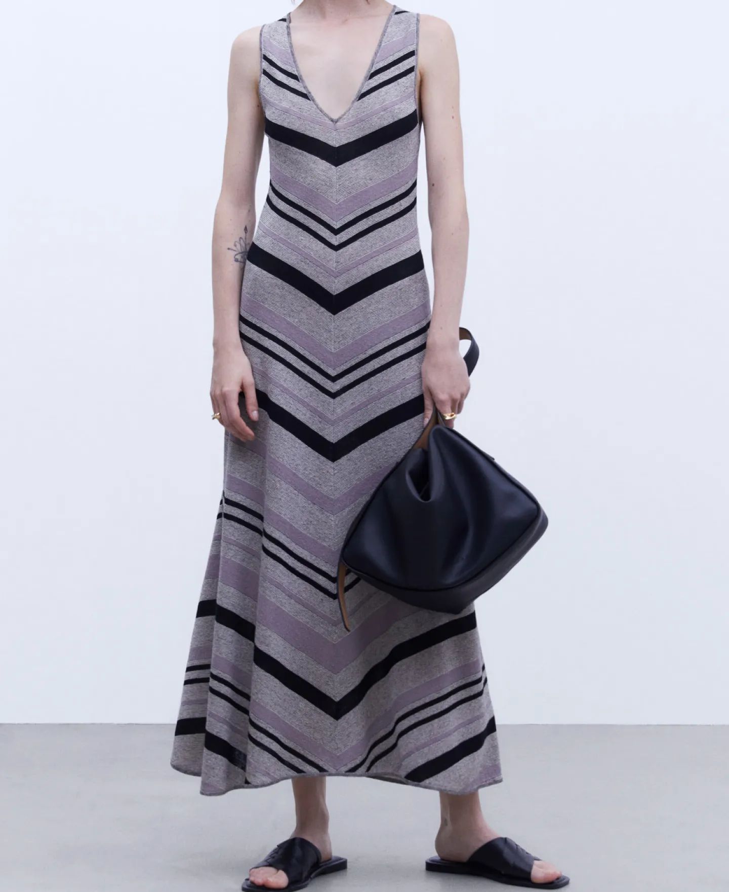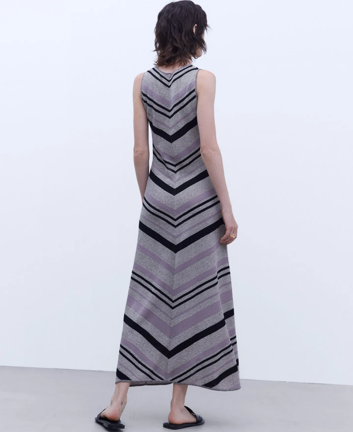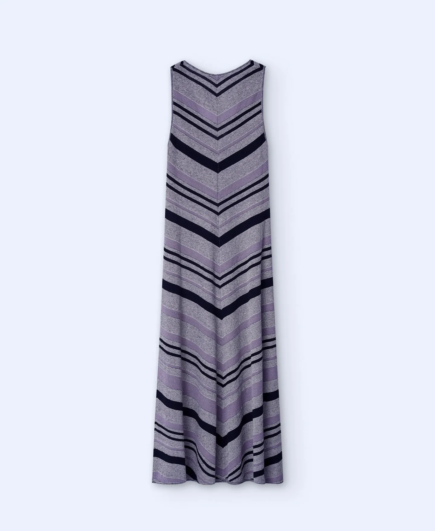 Manga Cava. Riscas Diagonais Em V. Gola Redonda.Linho E NylonEstampado RiscasComprimento