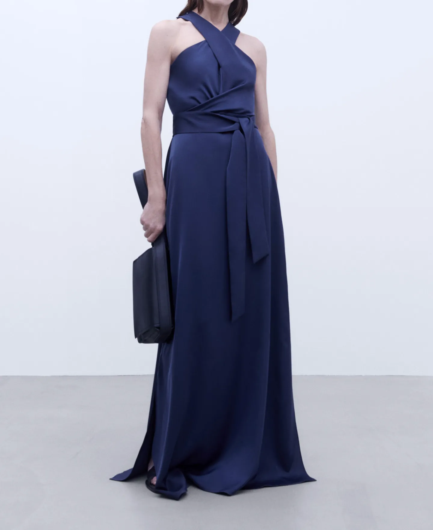 Cruzado Frontal E Posterior. Aberturas Laterais.Gola HalterCompridoAberturas LateraisForro Em 57% Poliester Reciclado