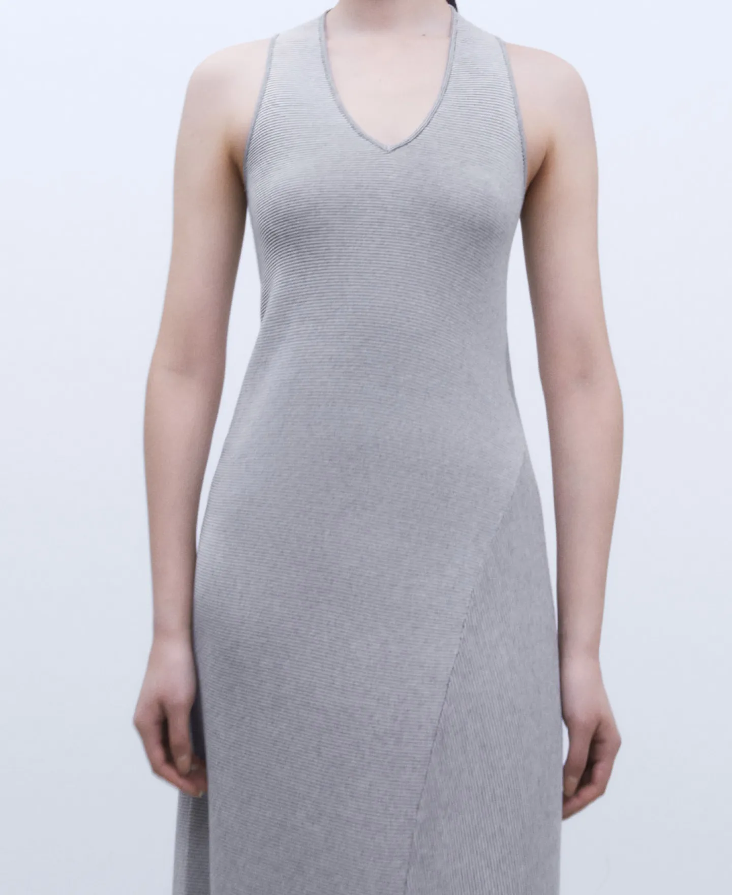 Decote Princesa. Manga Cava. Comprido. Gode Lateral. Bainha Assimetrica.