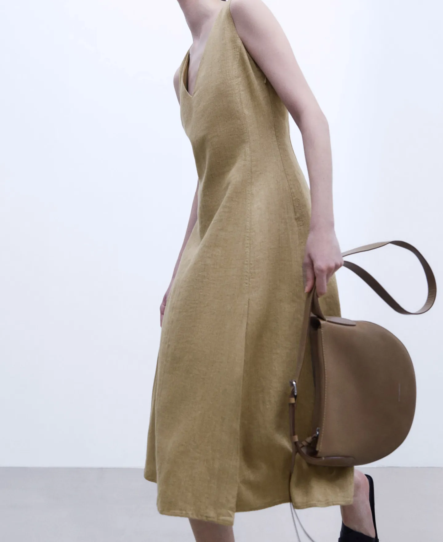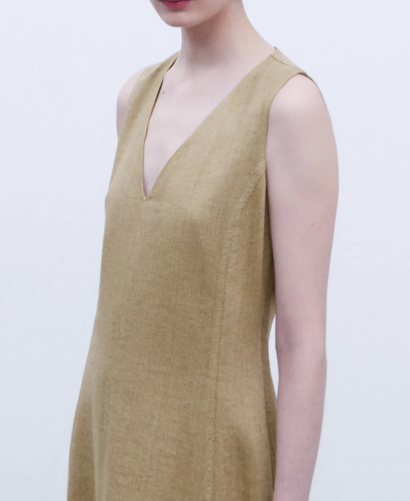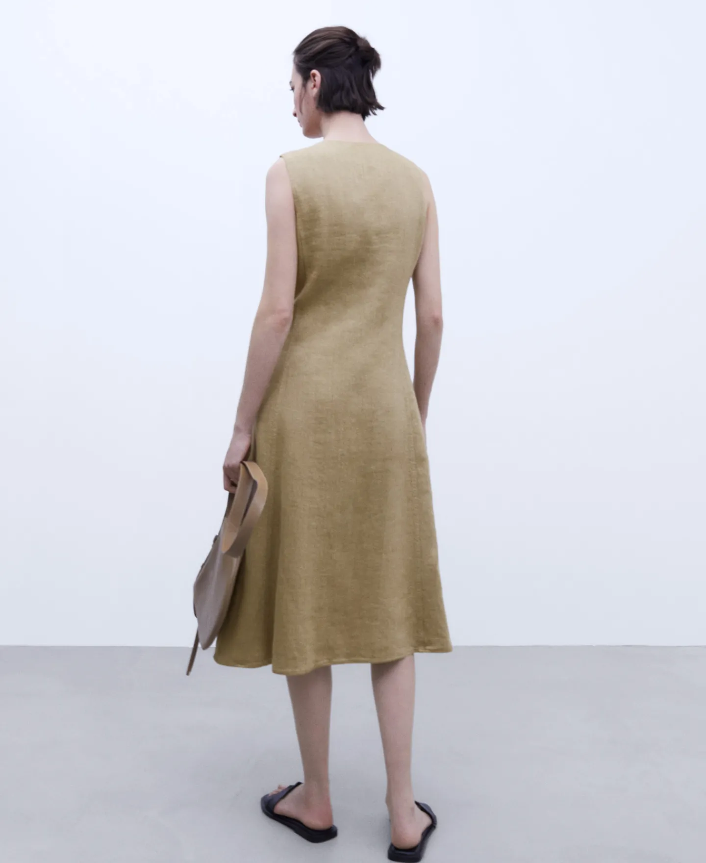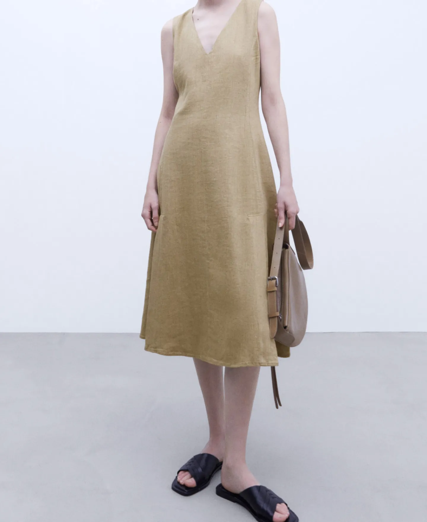 Linho. Algodao. Gola Em V. Semicintado. Bolso Lateral. Aberturas. Evase. Forro De Algodao.Linho AlgodaoGola Em VSemicint…