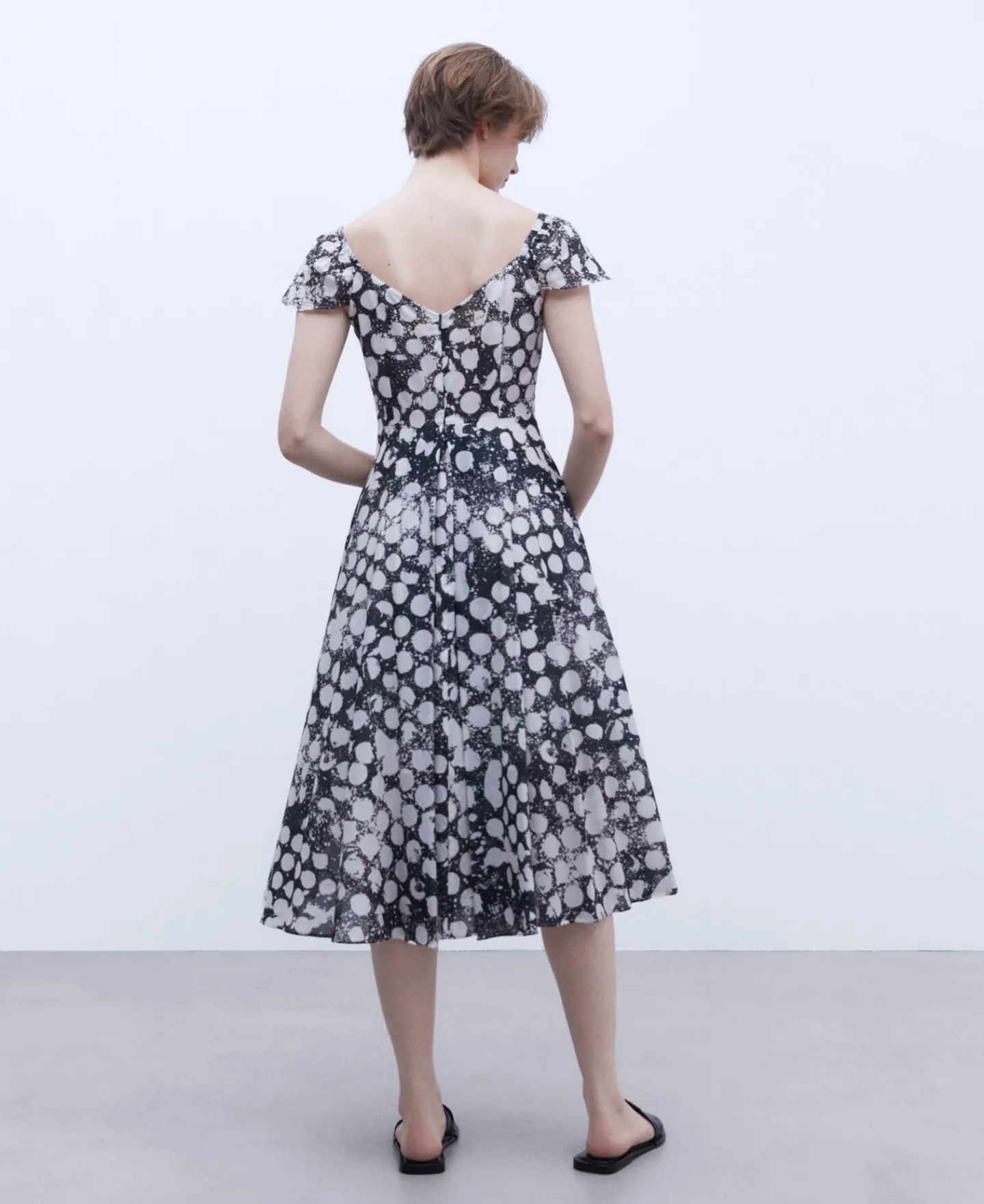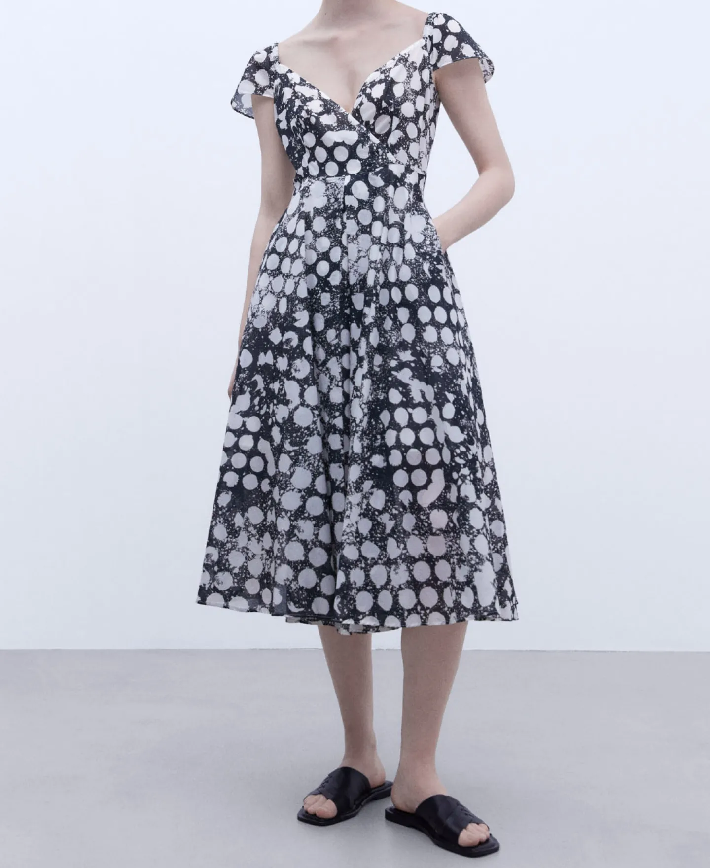 Saia Com Corte Na Anca. Efeito Balao. Bolsos Laterais. Comprimento Panturrilha.