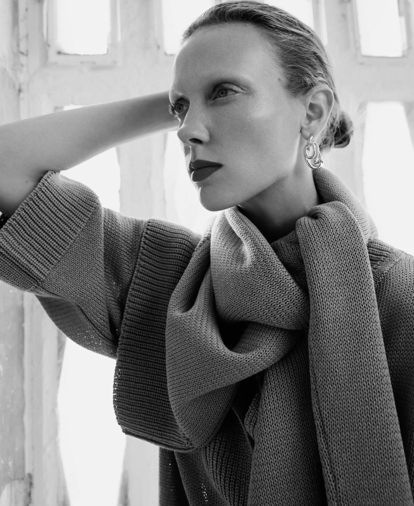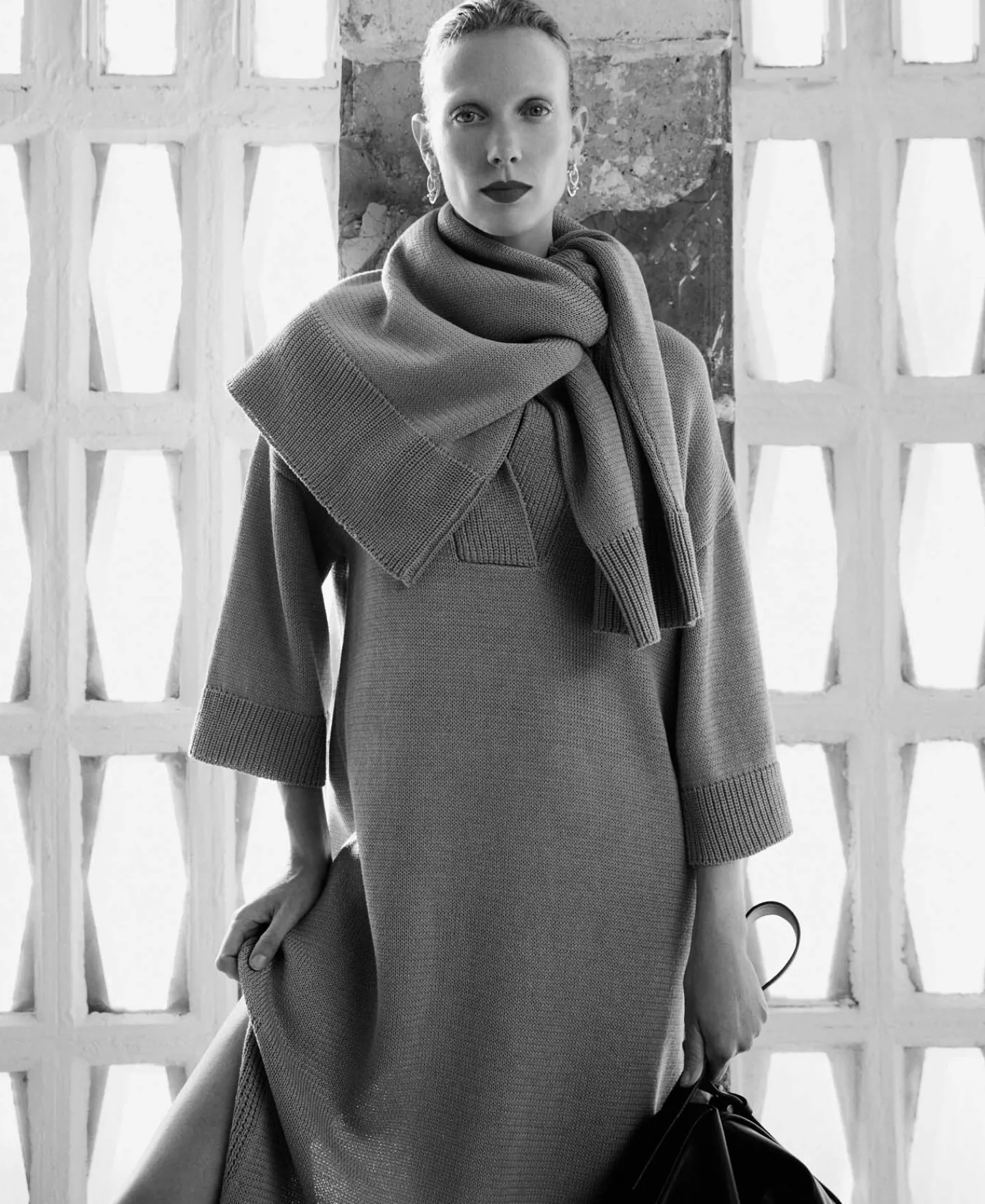 Vestido Midi. Gola Perkins. Fecho De Botao. Manga Tres Quartos Caida. Remates Canelados. Bainha Reta.