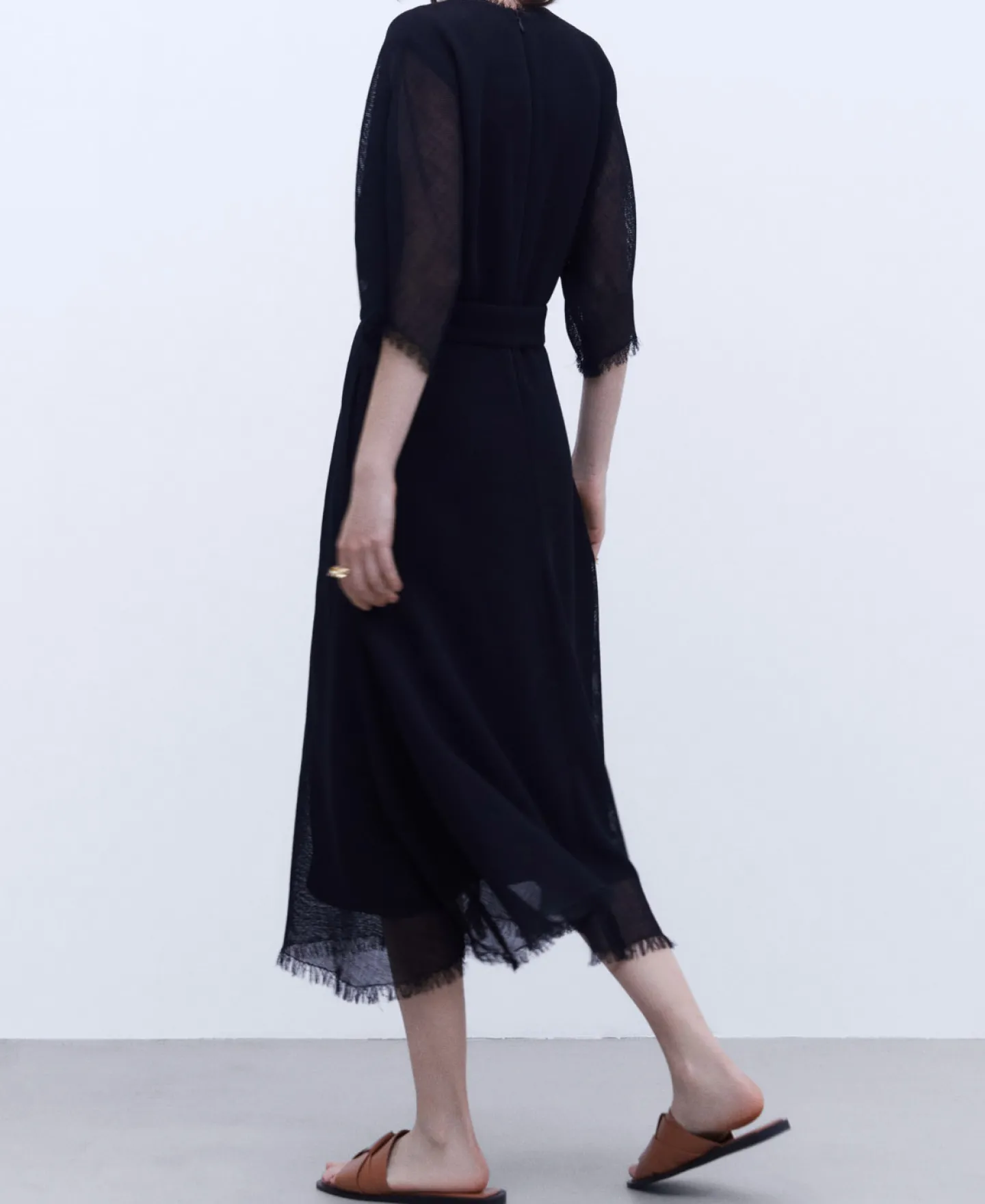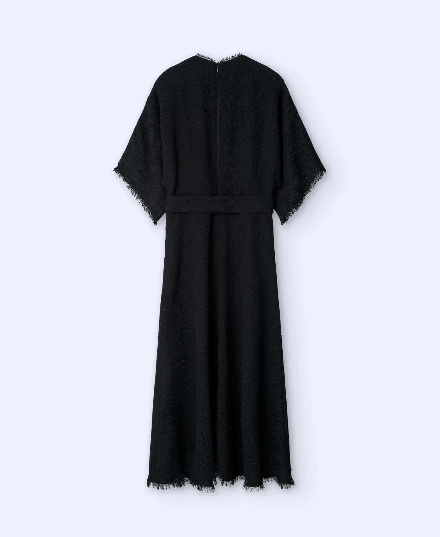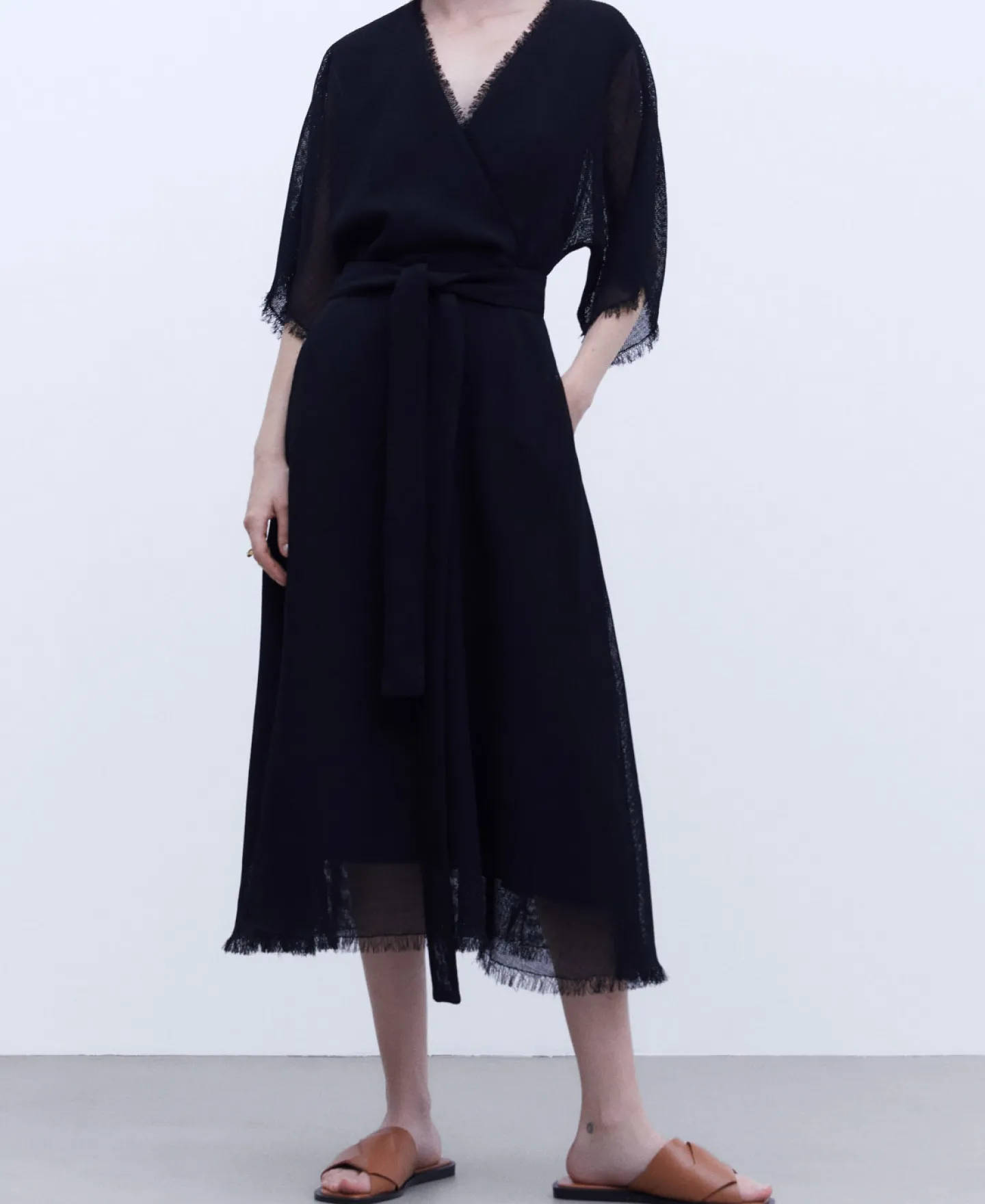Midi. Manga Japonesa. Frontal Com Cruzado Em V. Desfiados Na Bainha, Mangas E Decote.